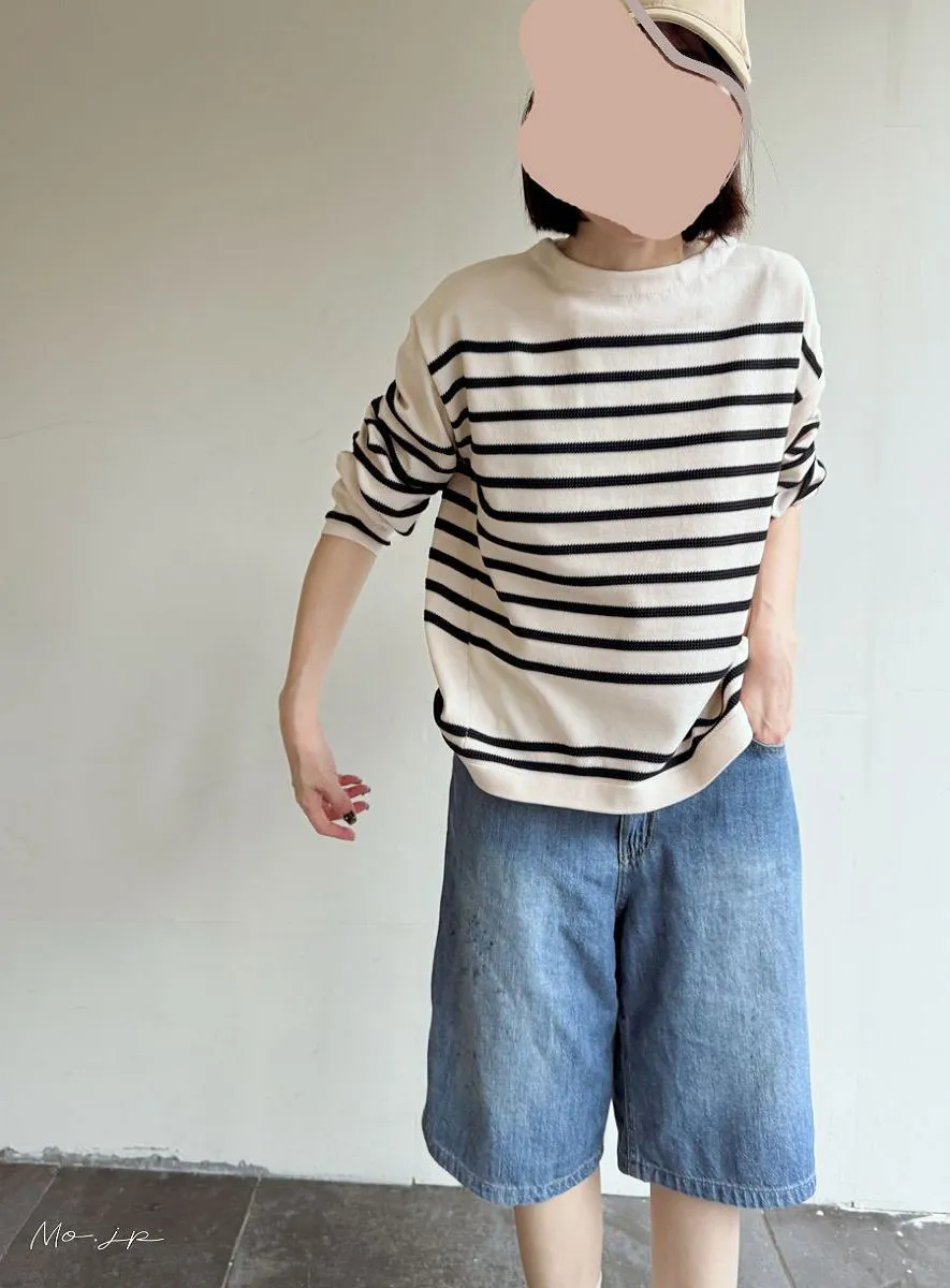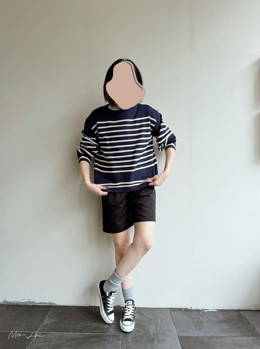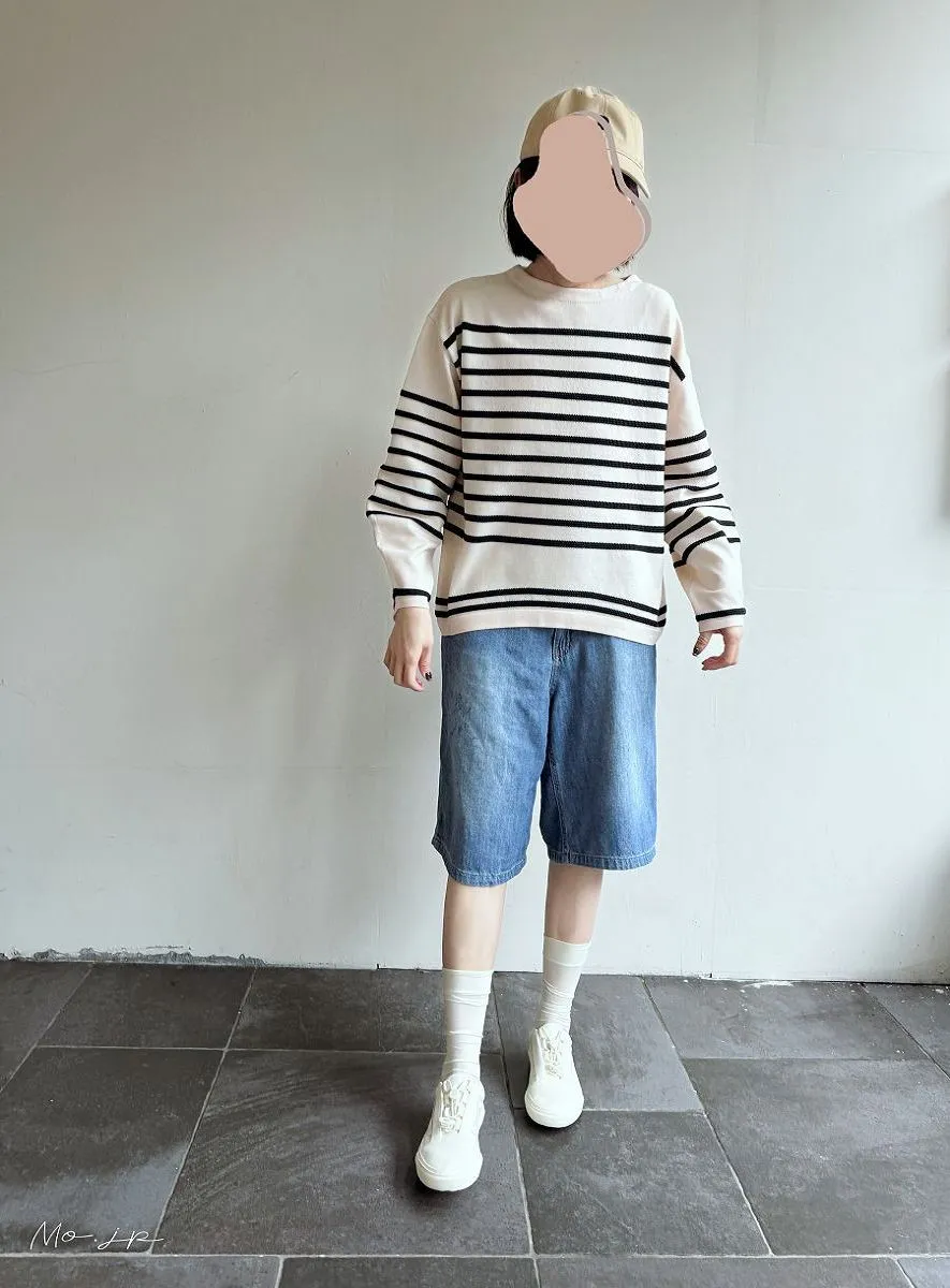 搭配前色牛仔褲或款褲,清爽日常休閒穿搭造型