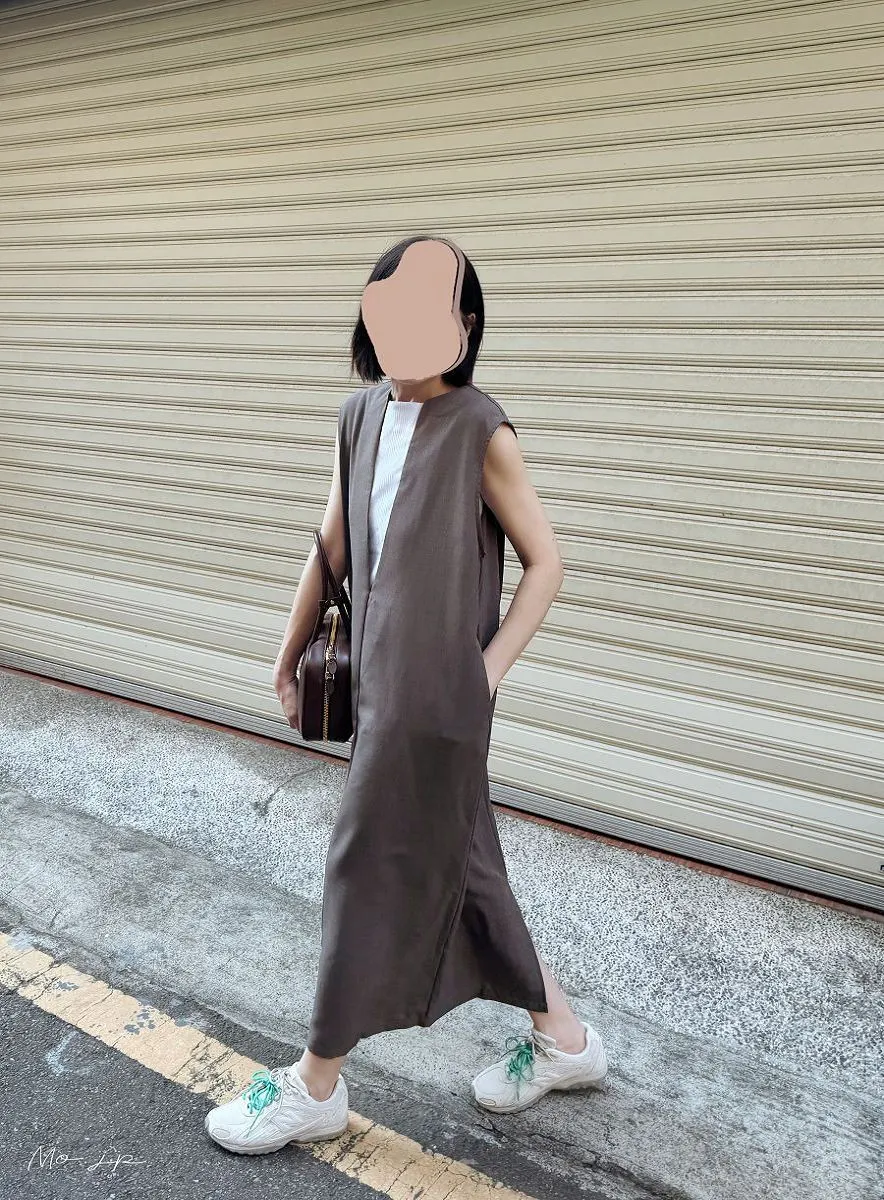 這款有口袋~這件棒的一點~微微有寬度的直版~穿起來有一種顯高感覺喔