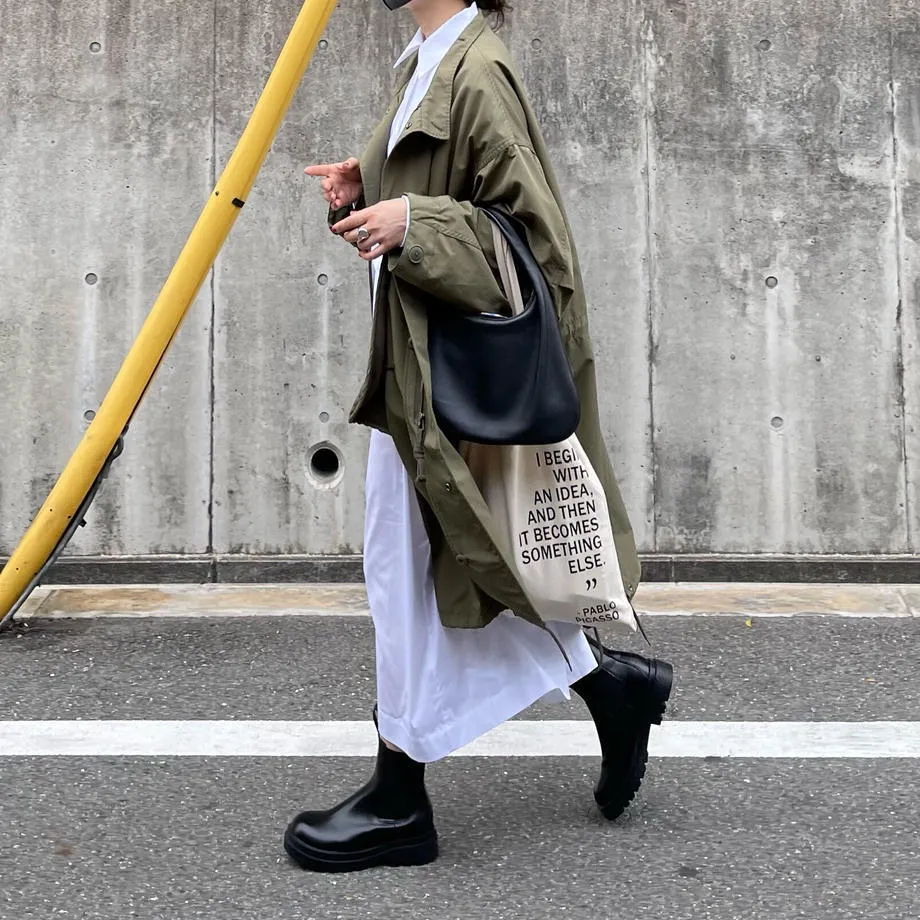袖子收起,打造立體廓形,穿著時看起來俐落平衡。
