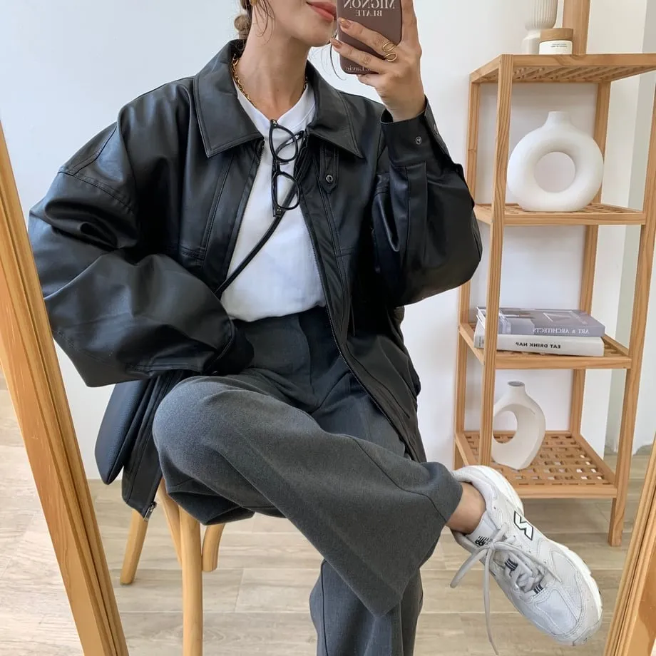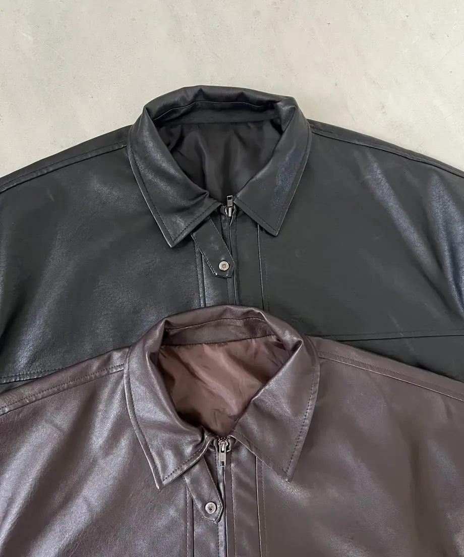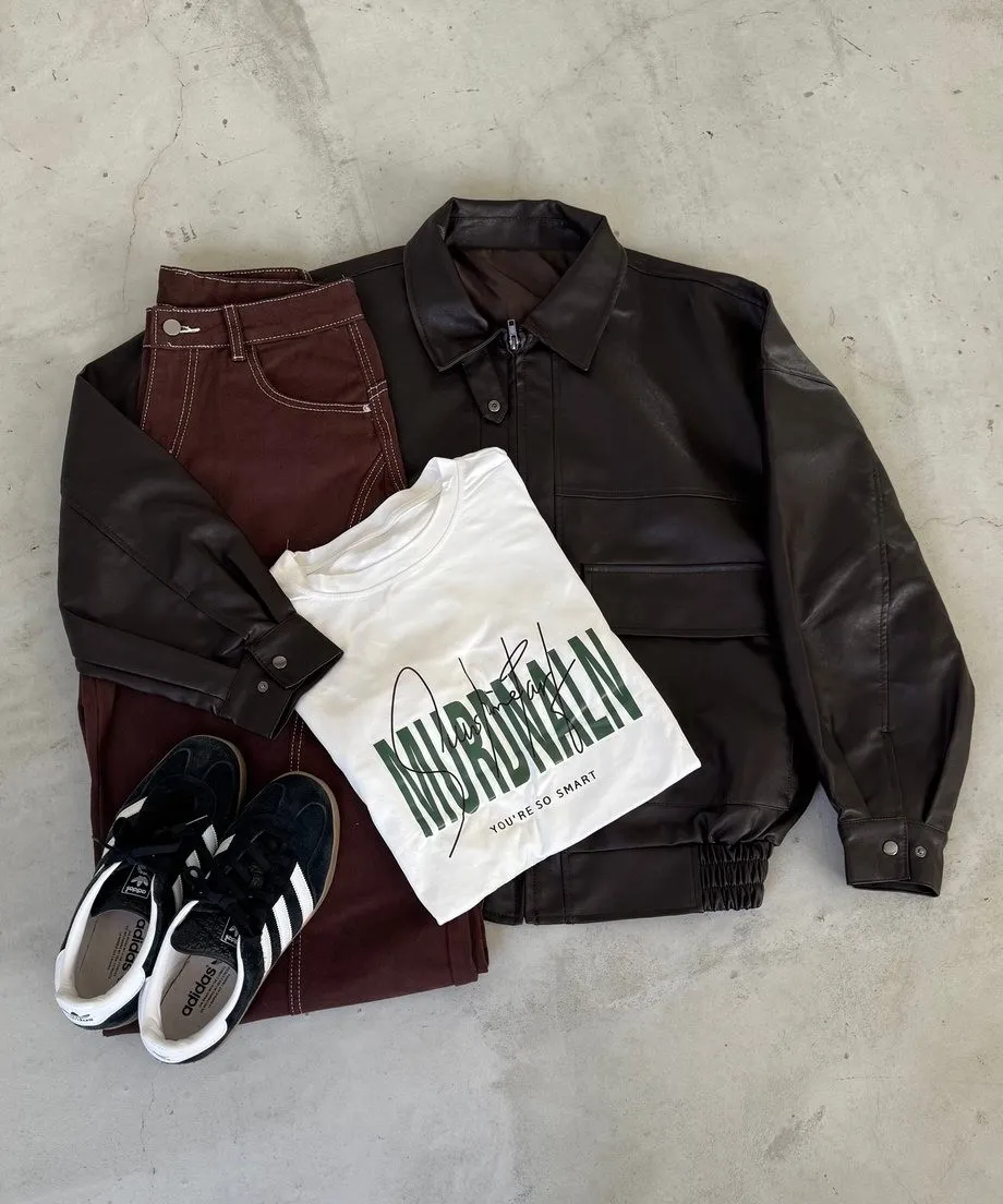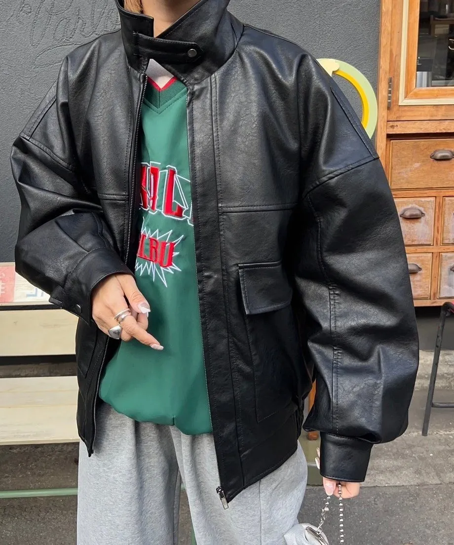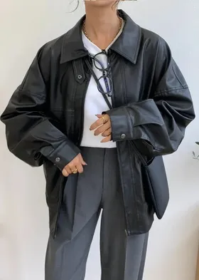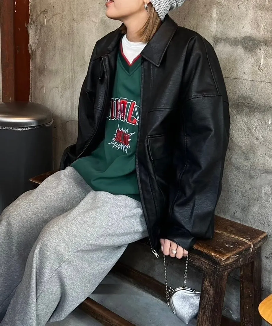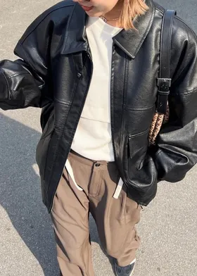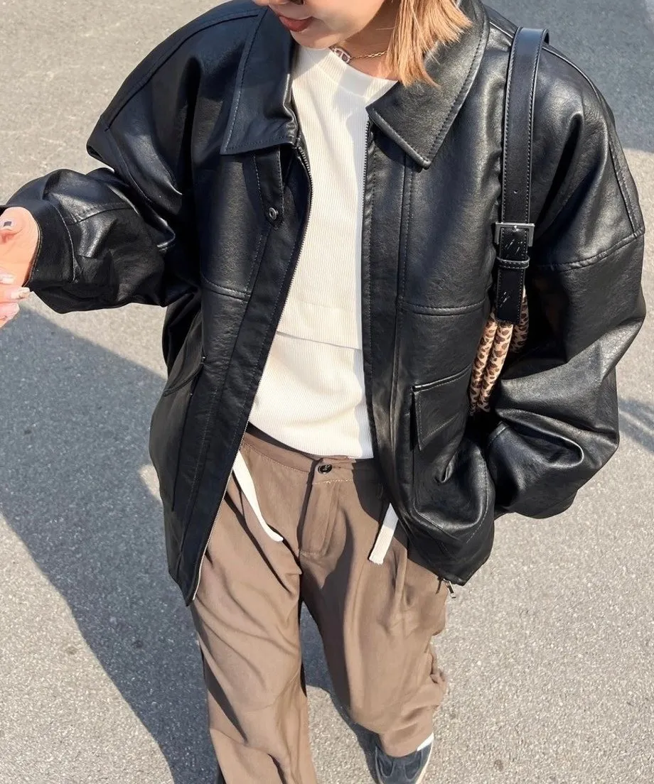 兩穿式仿皮夾克非常適合打造精緻休閒造型。