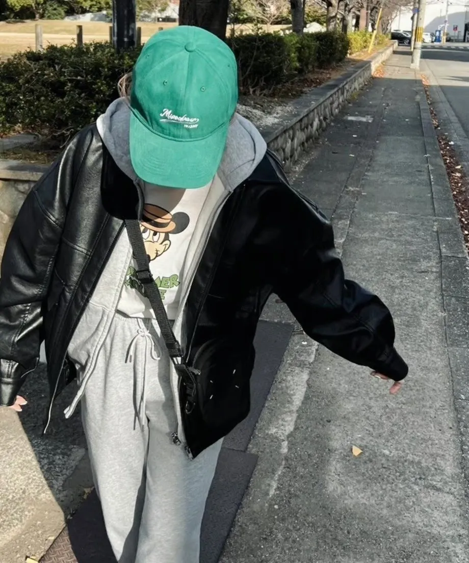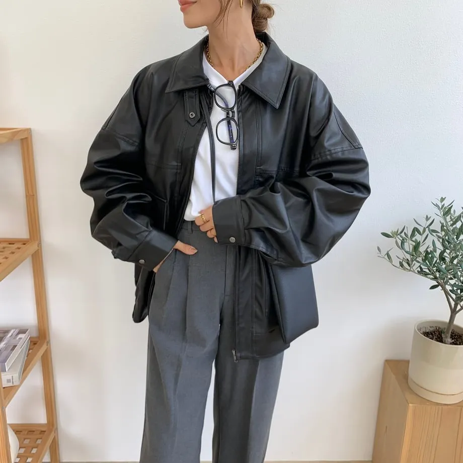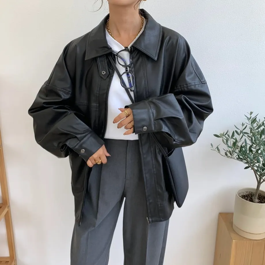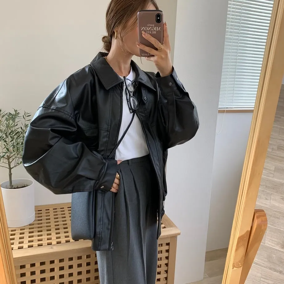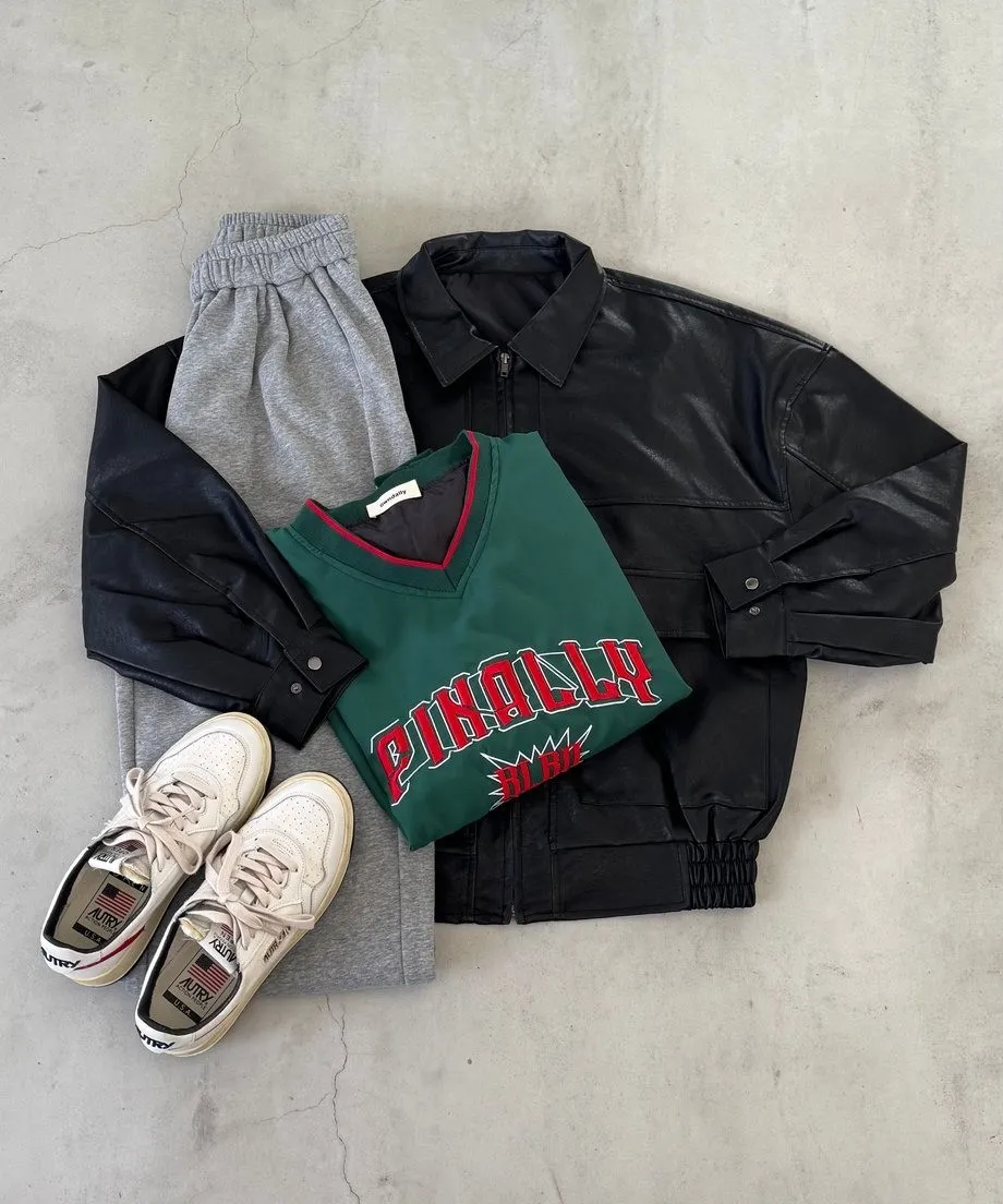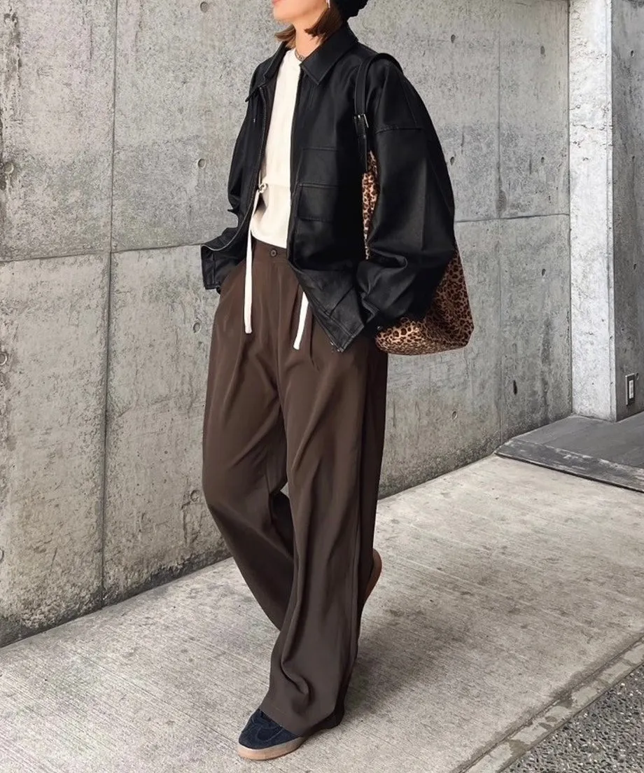 兩穿式仿皮夾克非常適合打造精緻休閒造型。