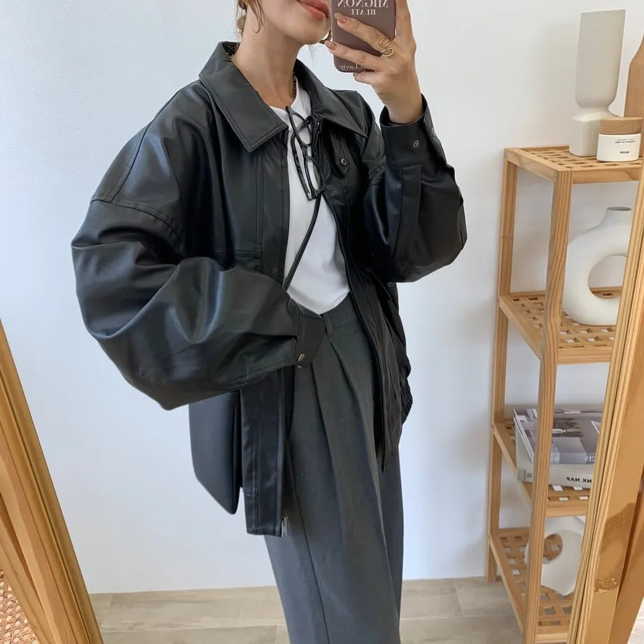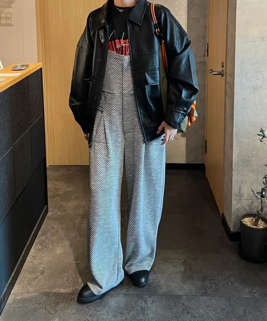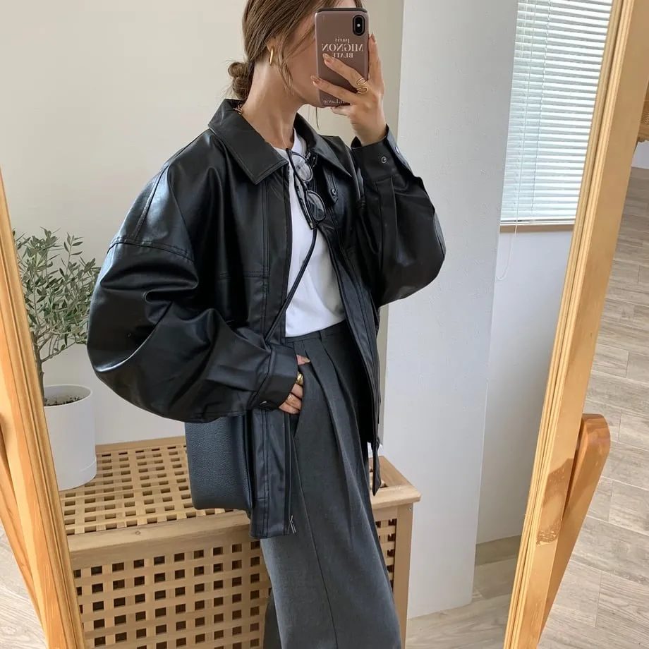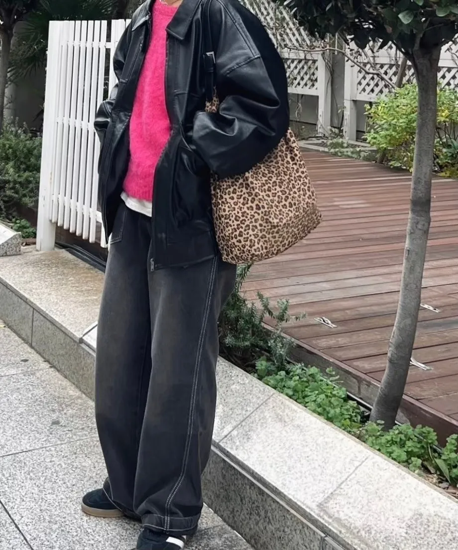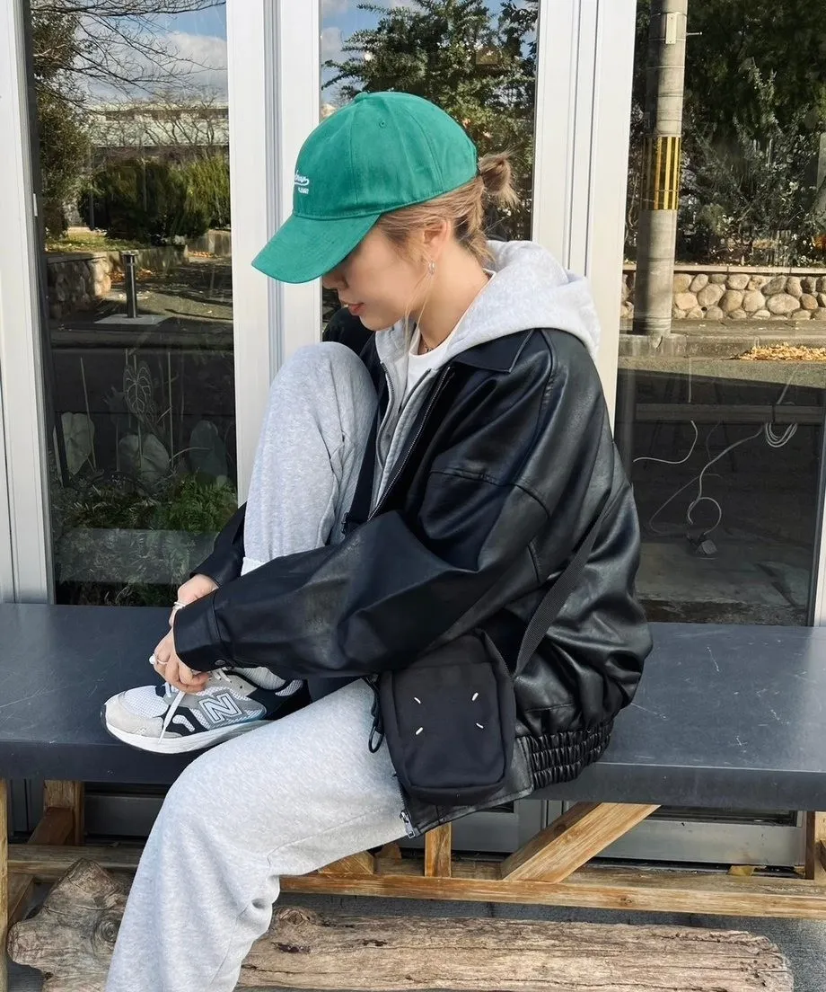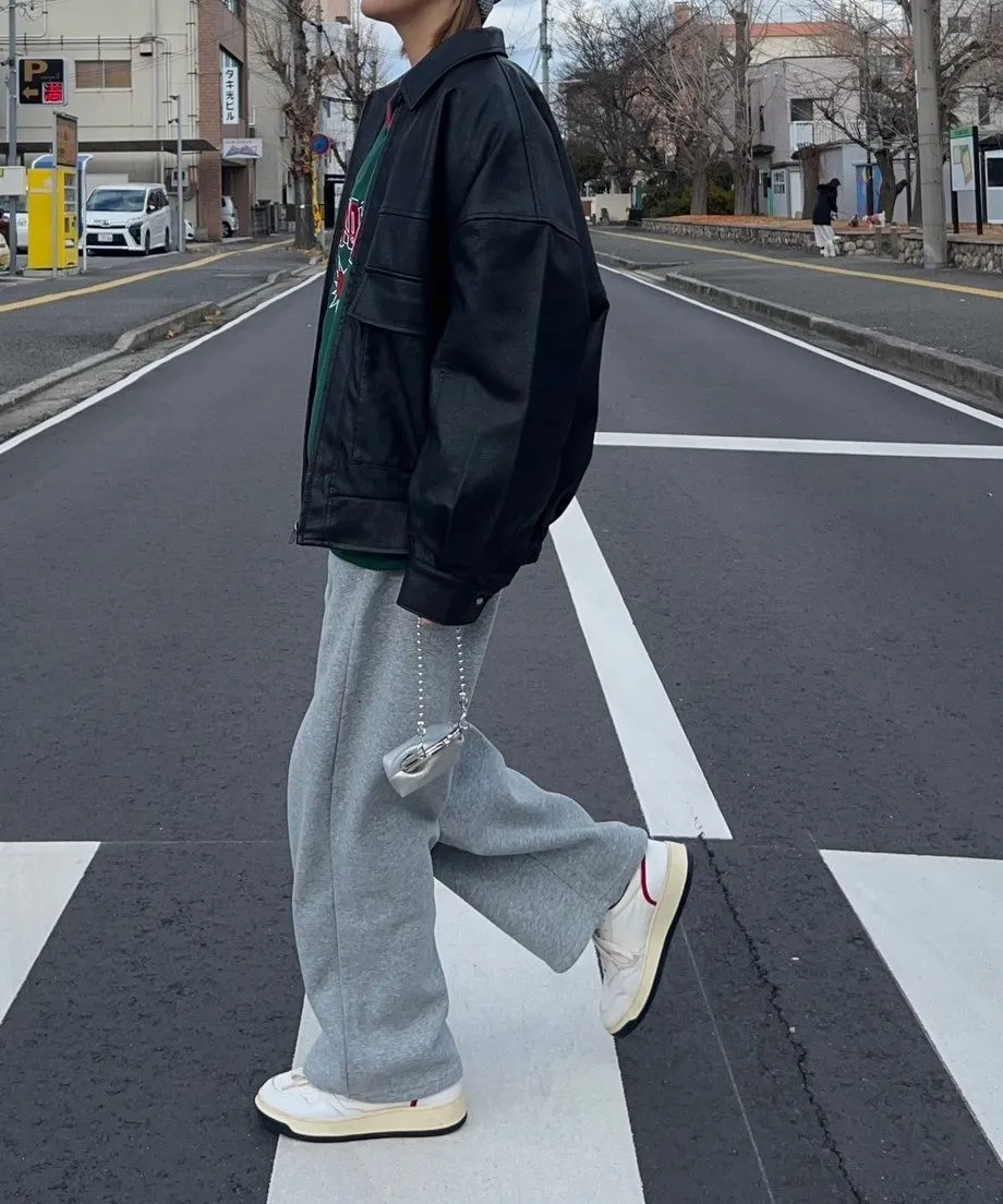 兩穿式仿皮夾克非常適合打造精緻休閒造型。