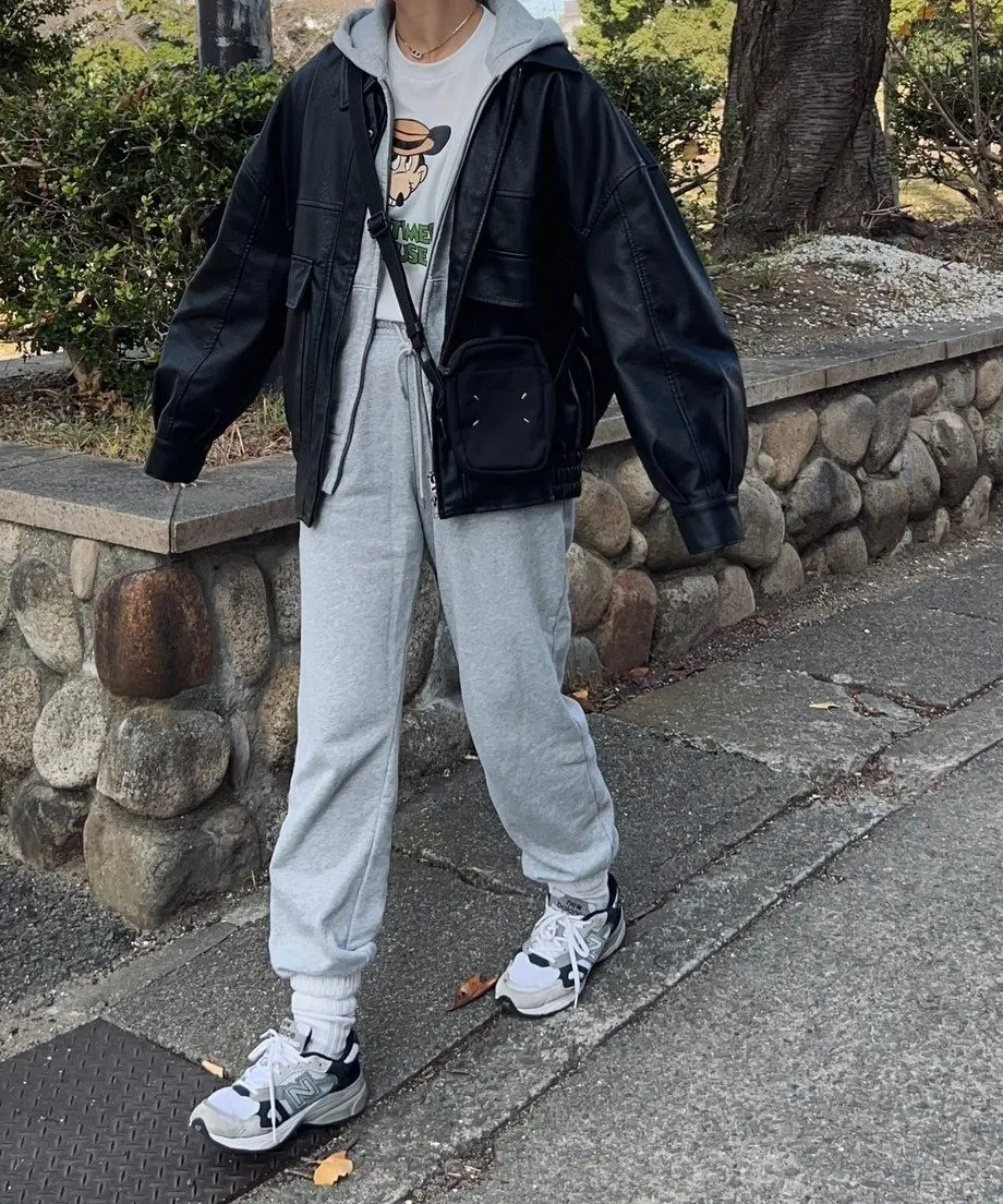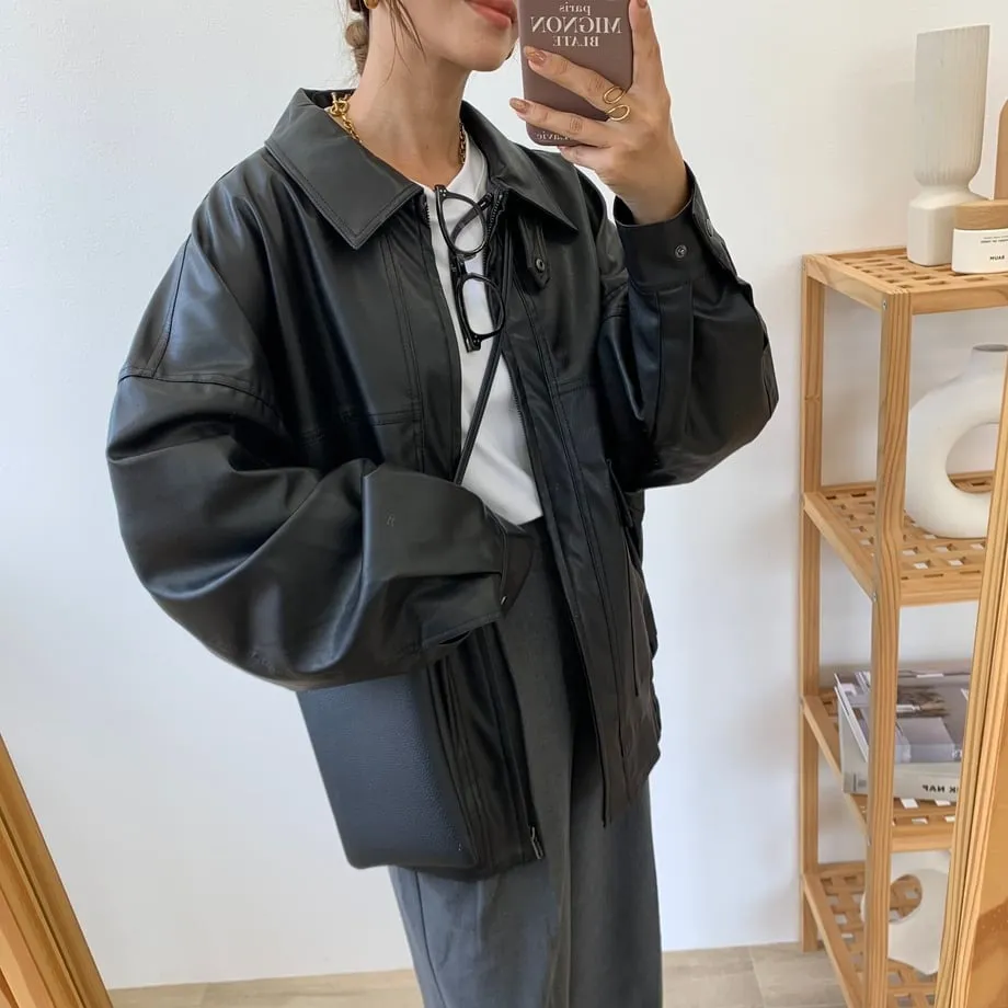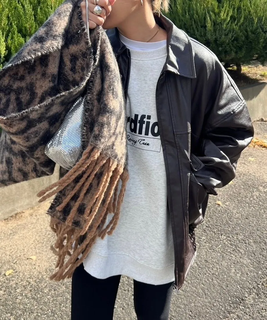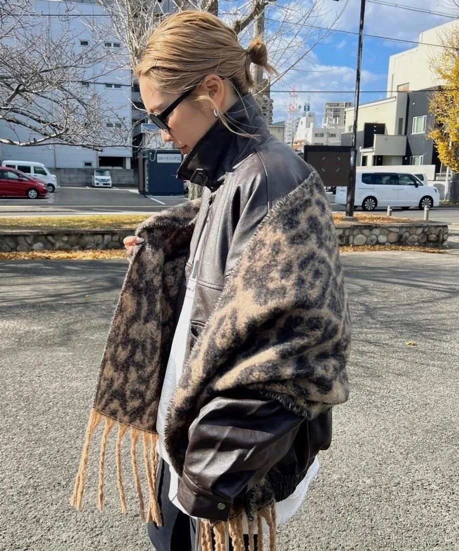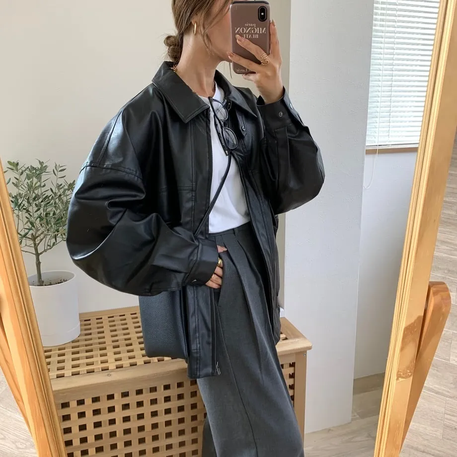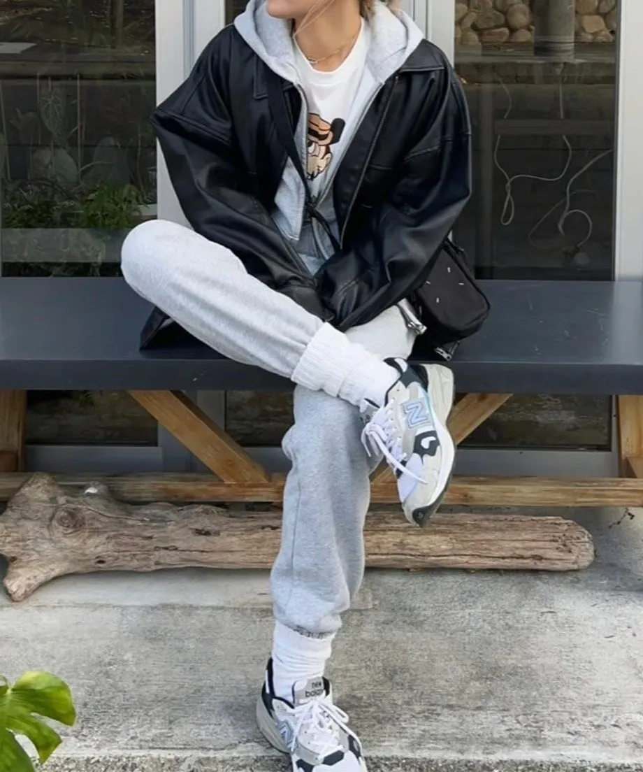 兩穿式仿皮夾克非常適合打造精緻休閒造型。