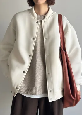 超級可惜^^專櫃斷貨了.本來想要好好推薦大家小幫自留一件.非常好穿特別是台灣的天氣.秋轉冬非常適合整件是偏極簡俐落版型.沒有多的裝飾.版型也剛剛好不會過大.搭配秋冬的休閒TEE很OK喔簡約落肩版型.棒球外套率性版型.下擺收小營造運動空氣感領口下擺拼接彈性針織細節.好穿舒適很可惜預購後就斷貨了數量限定推薦價格也回饋.可愛奶油色實品再更奶油一點點.不是白色喔<非常有質感喔>