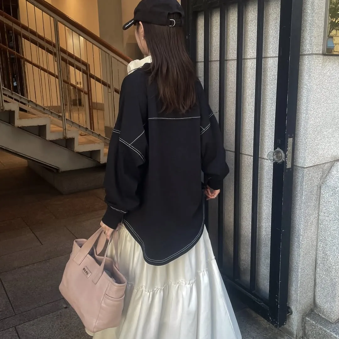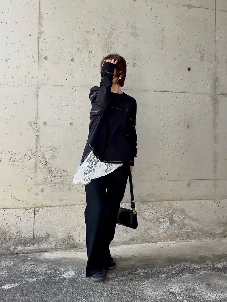 圓弧形的下襬~單穿就很好看~隨意搭個外套也很OK