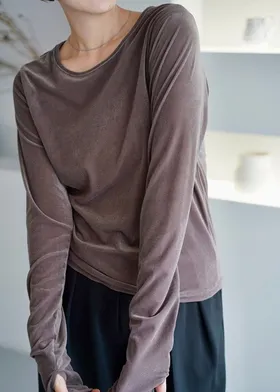 上品光澤質感的天鵝絨材質長袖圓領上衣