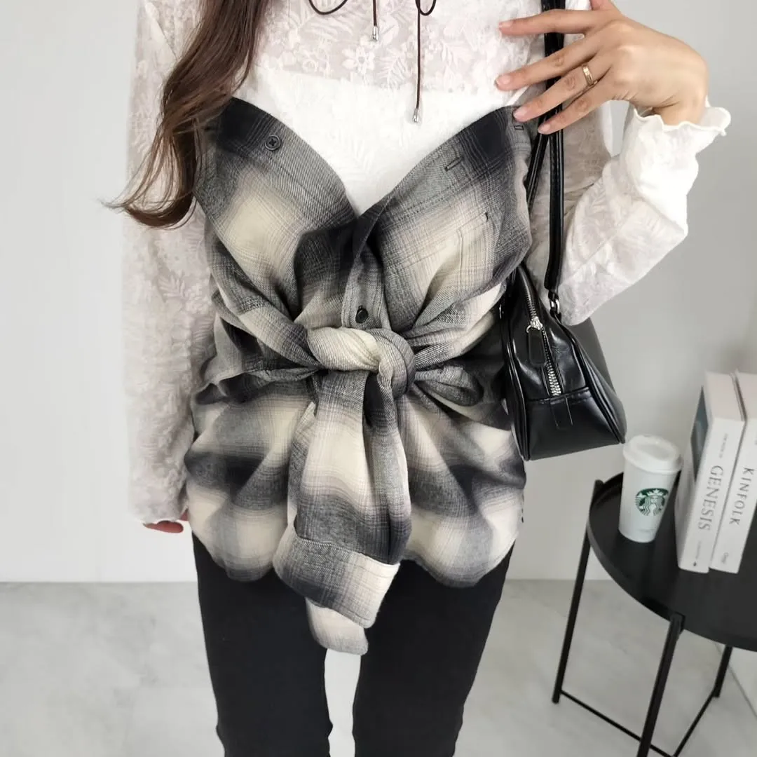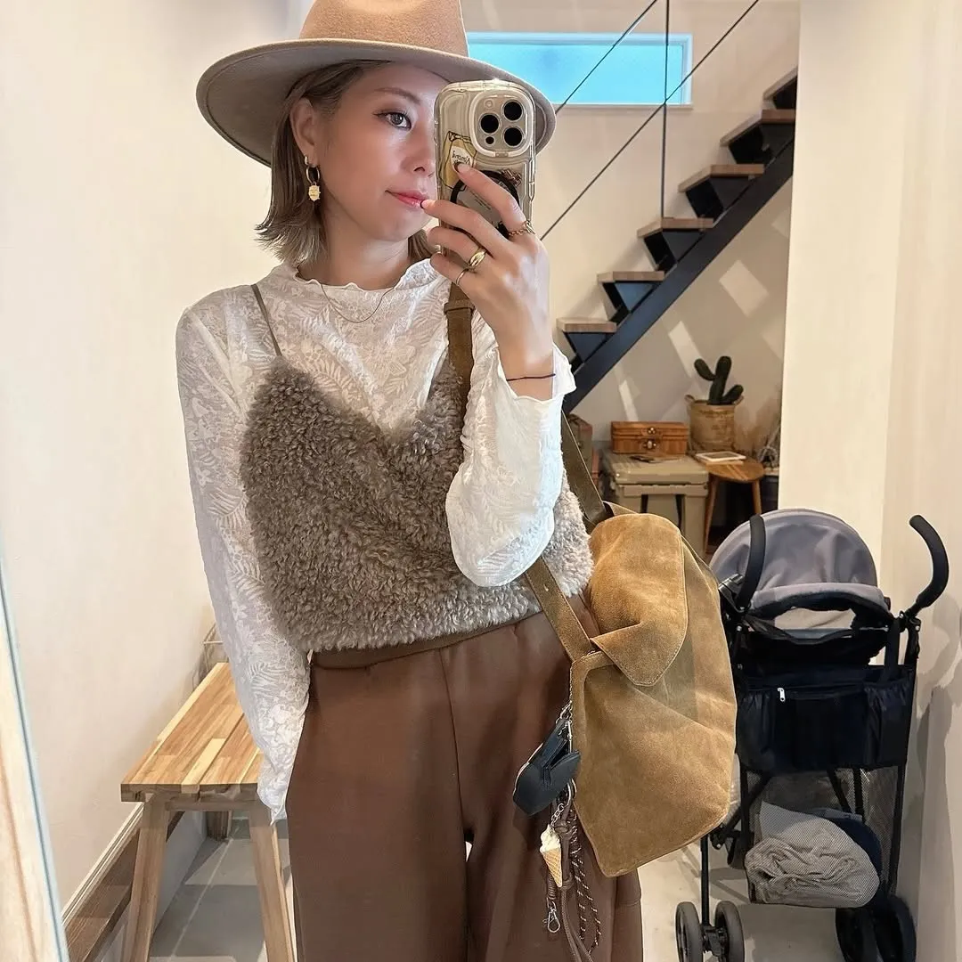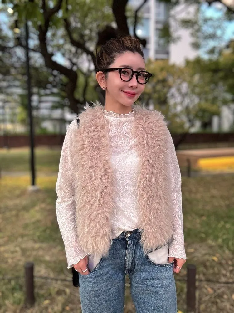 或者搭個刷毛TEE露一點點蕾絲花瓣領-精緻女孩