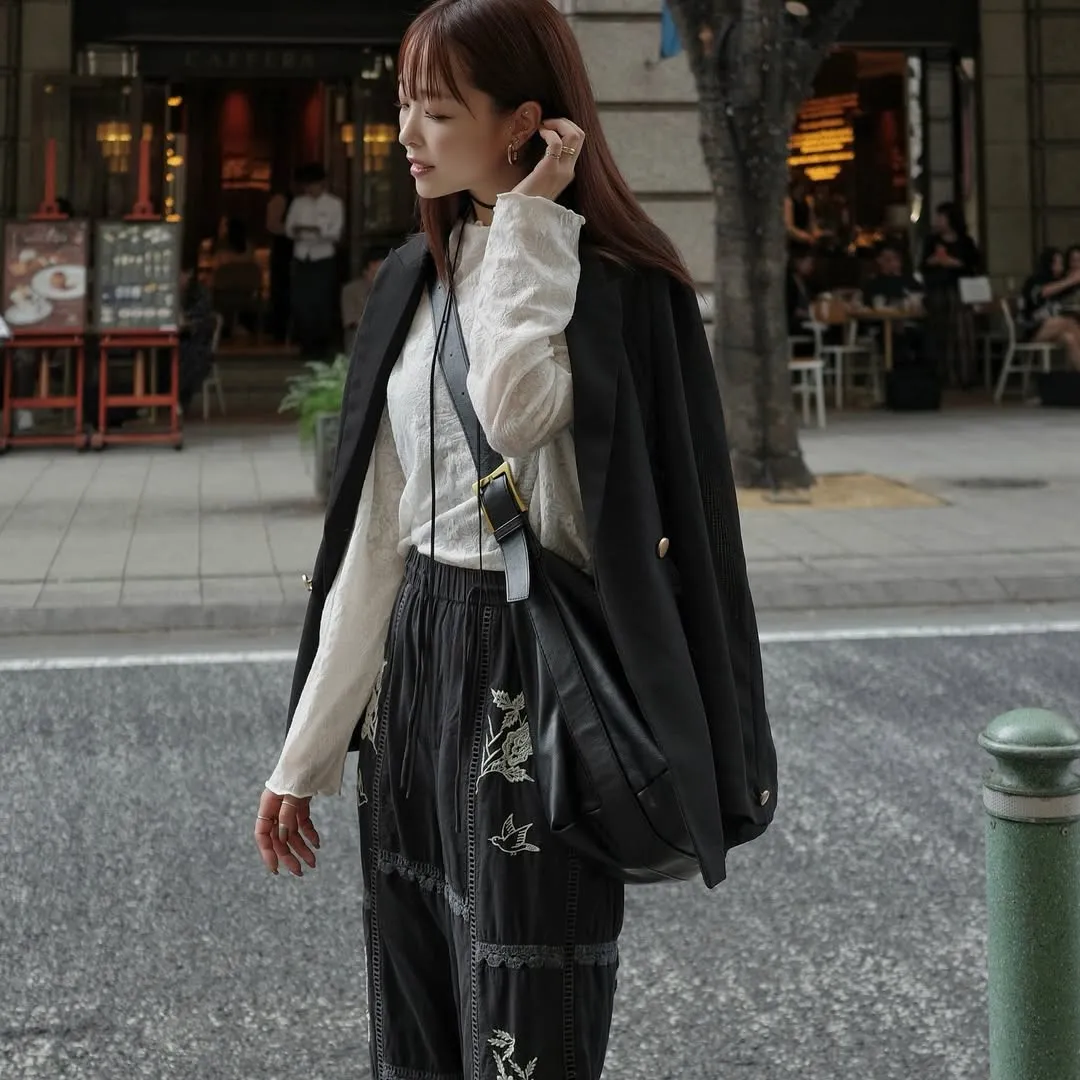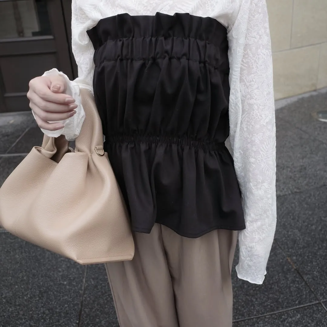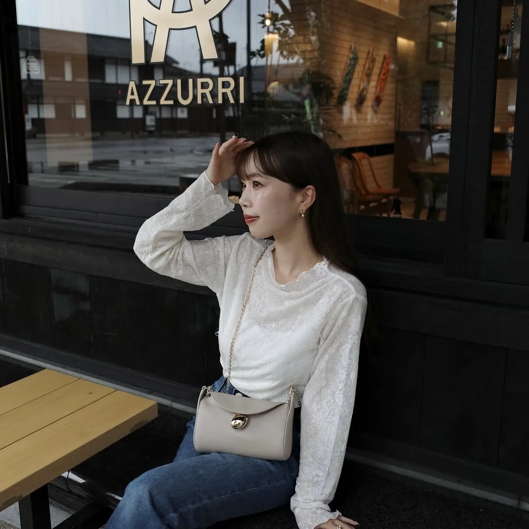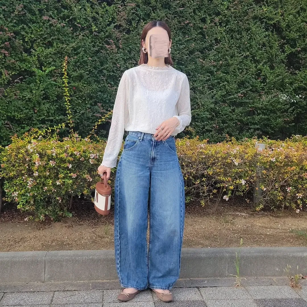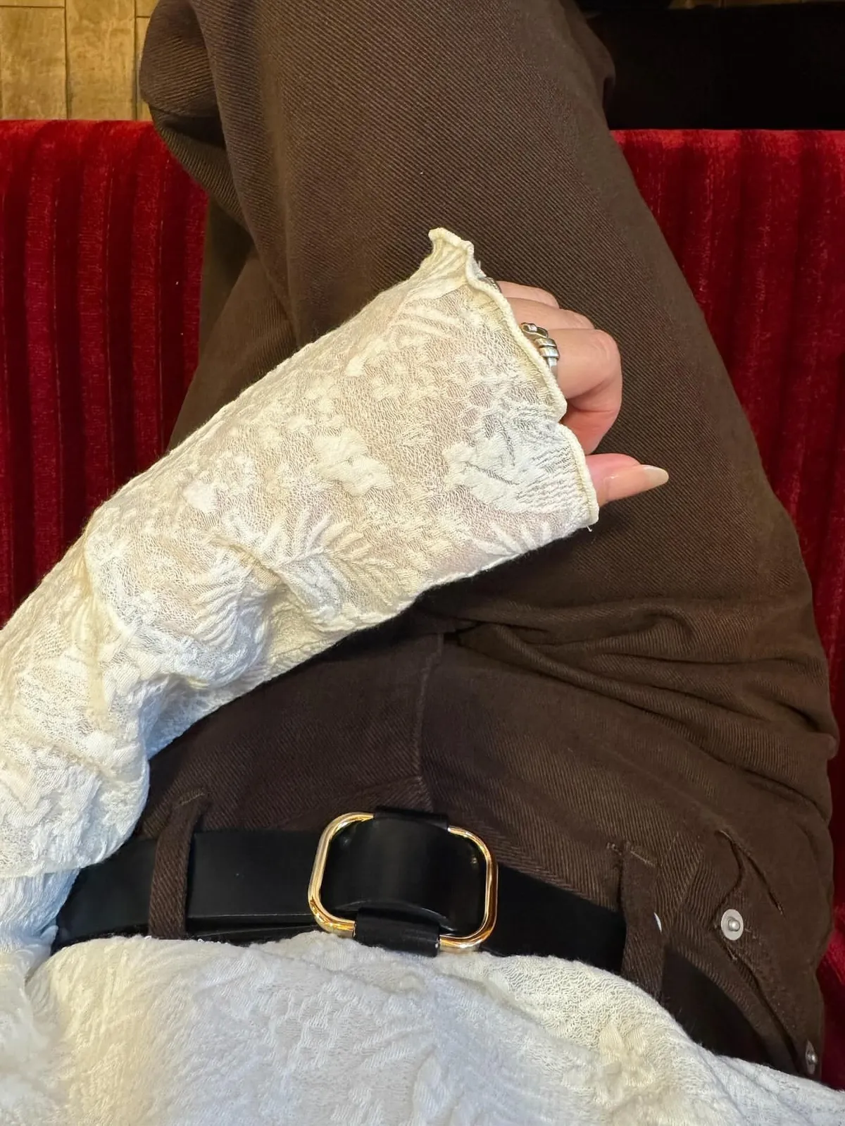 精緻感透膚蕾絲壓紋花瓣領口上衣