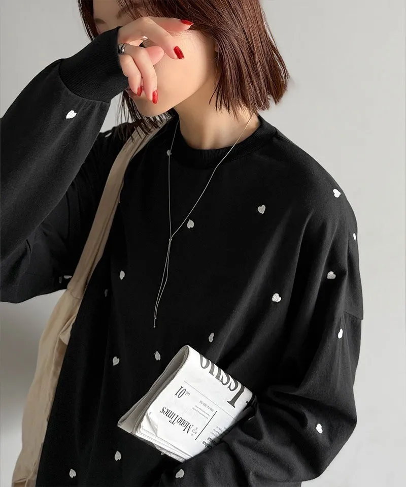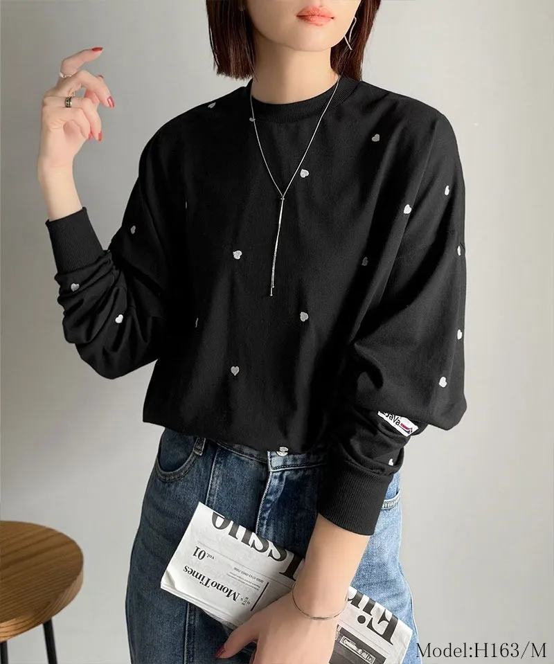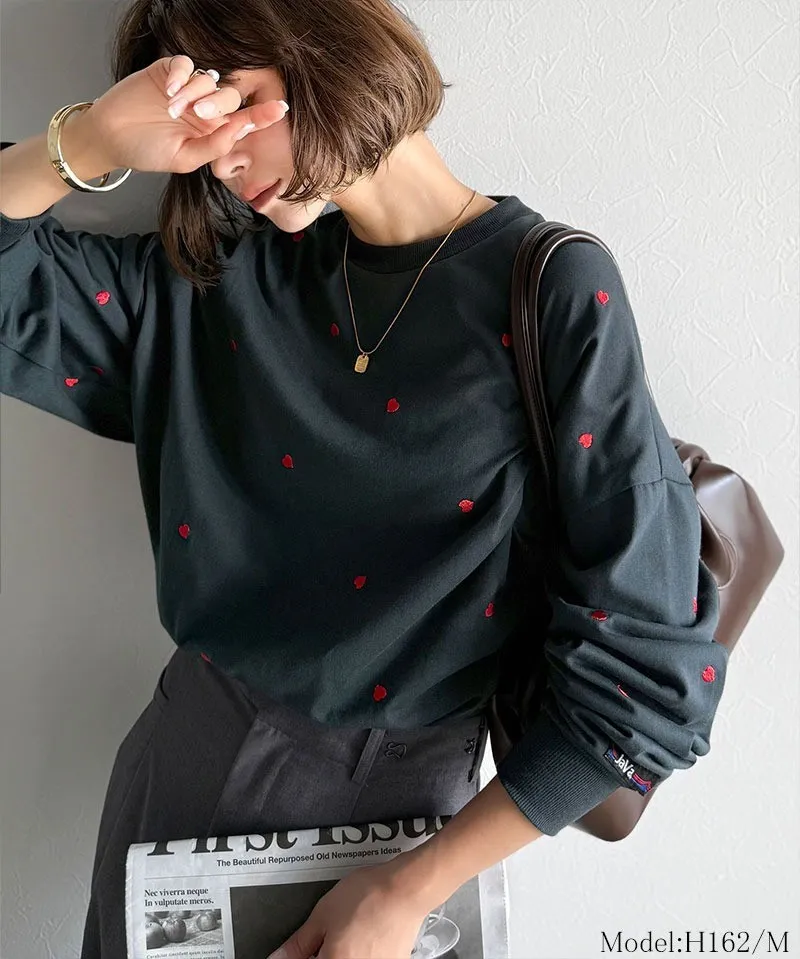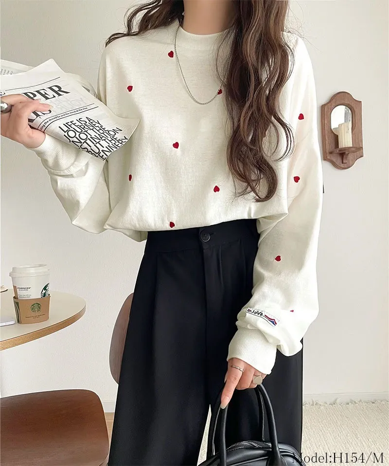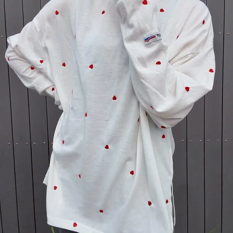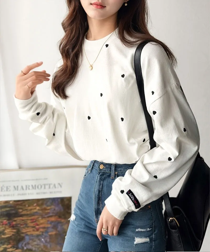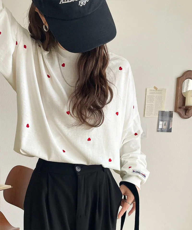 專櫃火紅~可愛精緻立體愛心刺繡長袖T恤