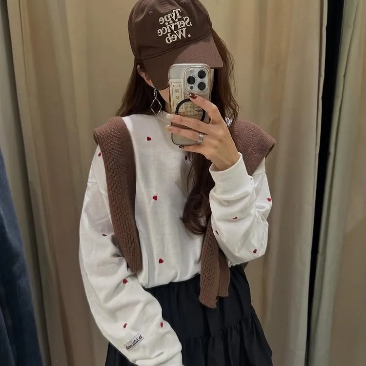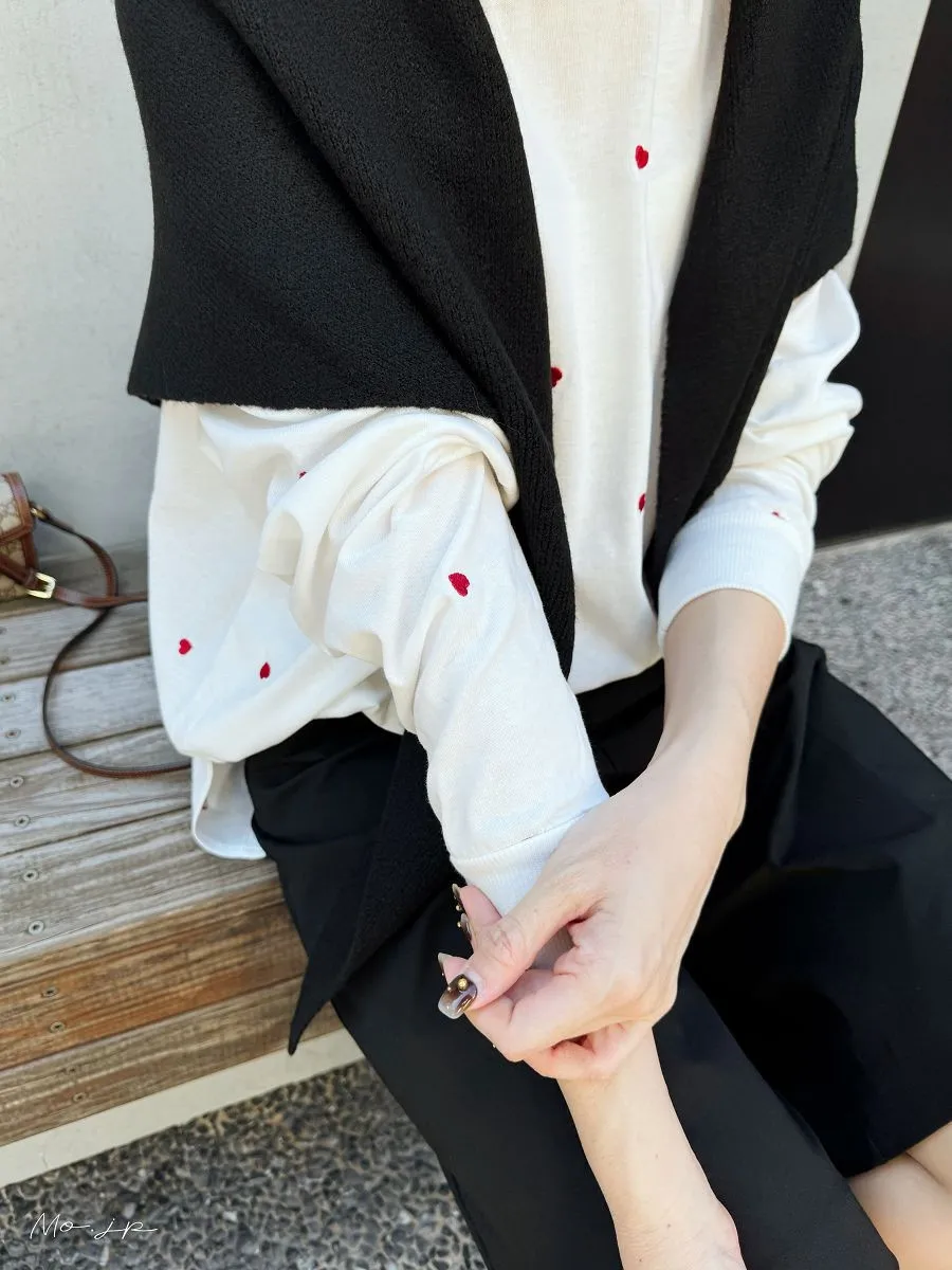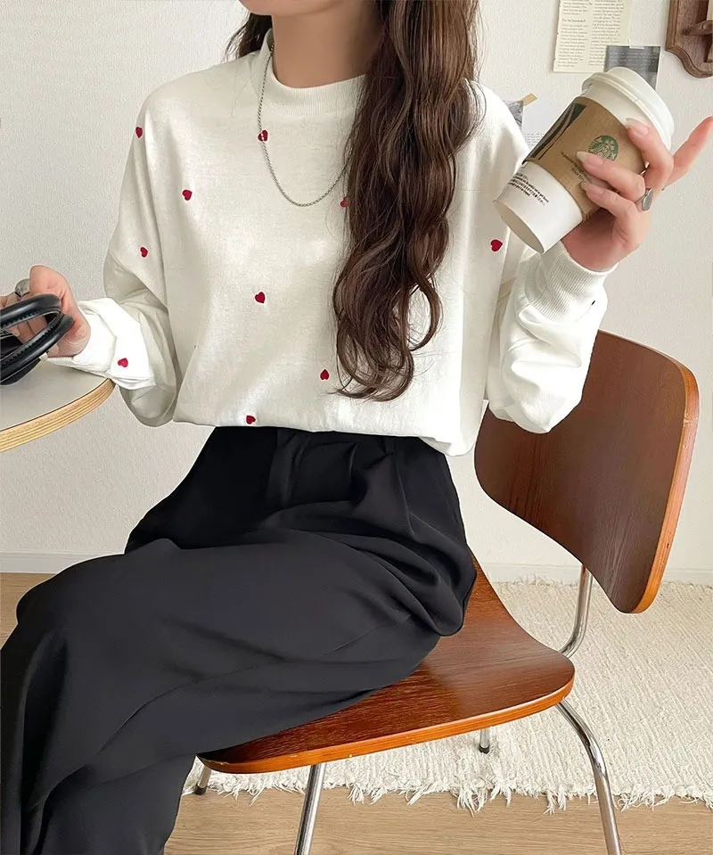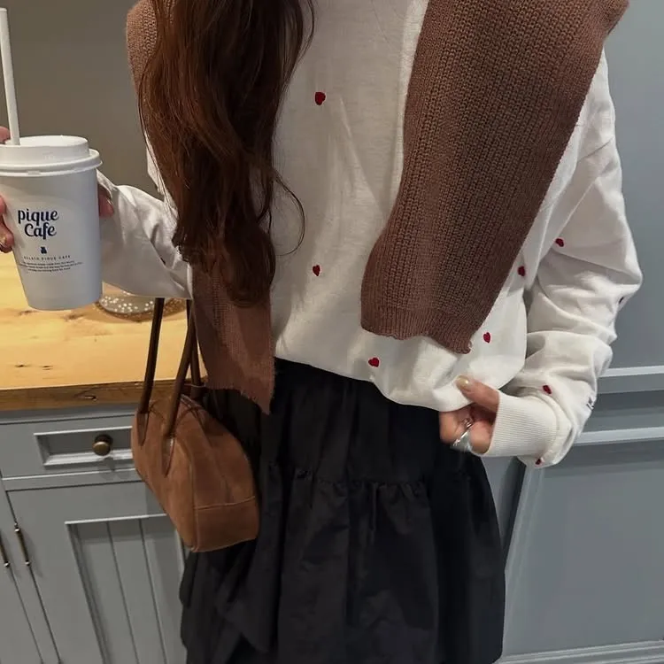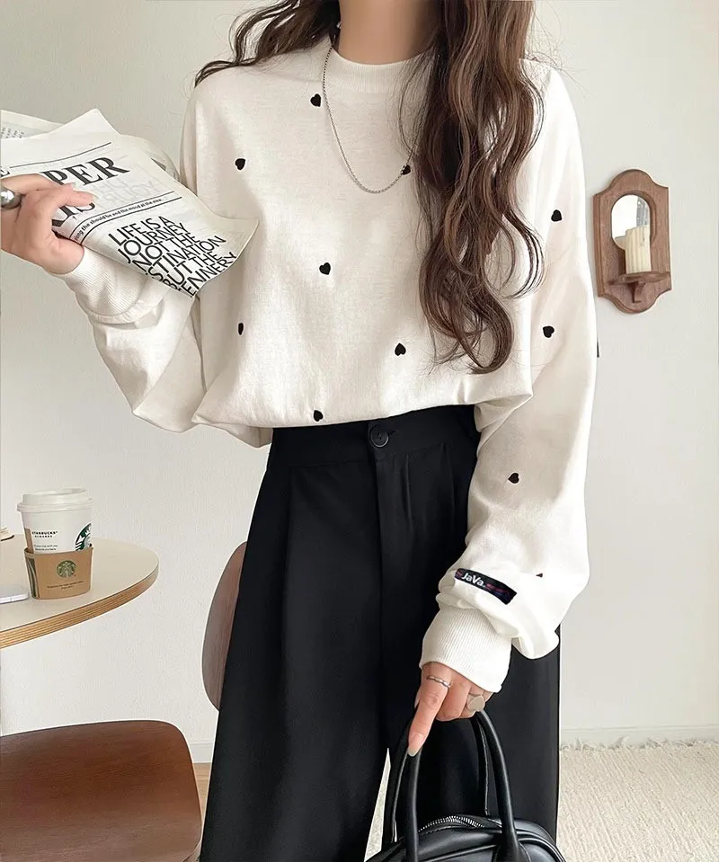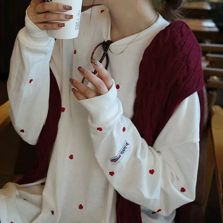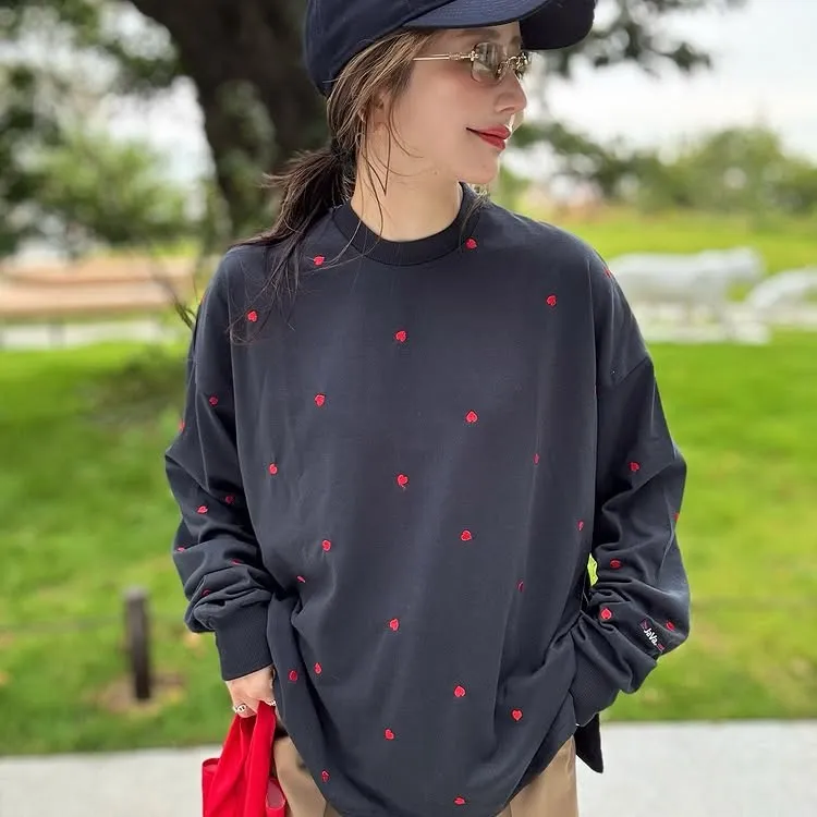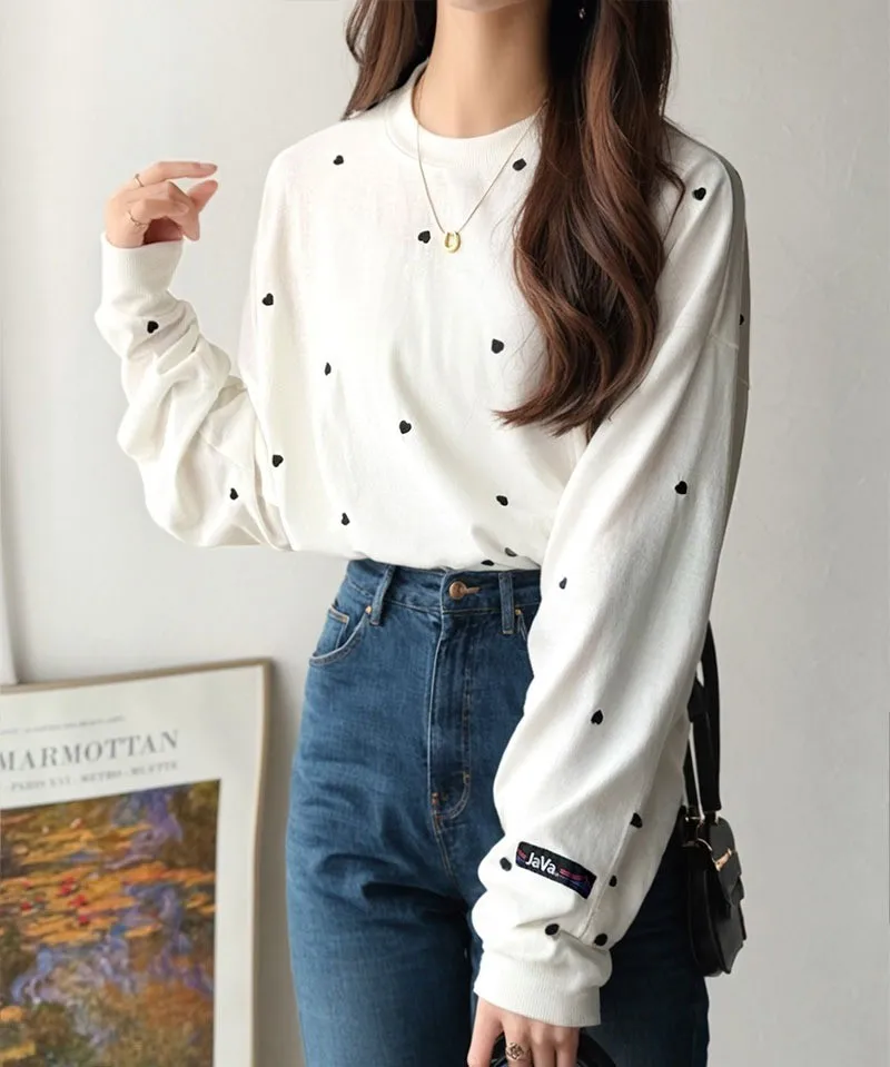 專櫃火紅~可愛精緻立體愛心刺繡長袖T恤