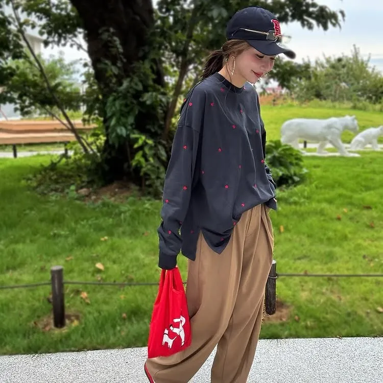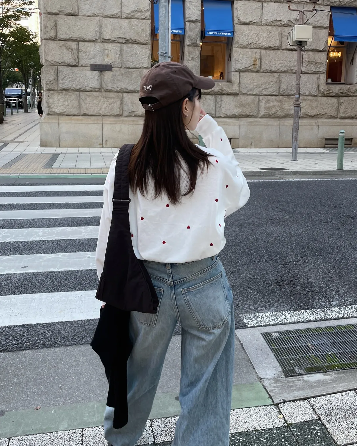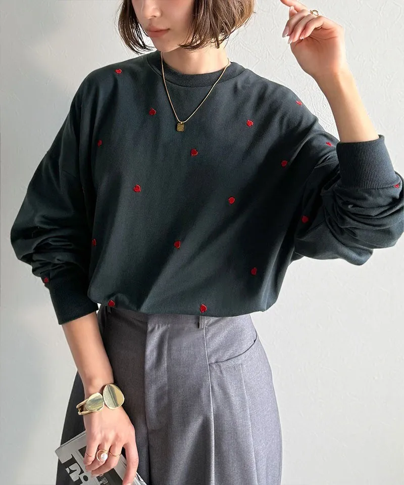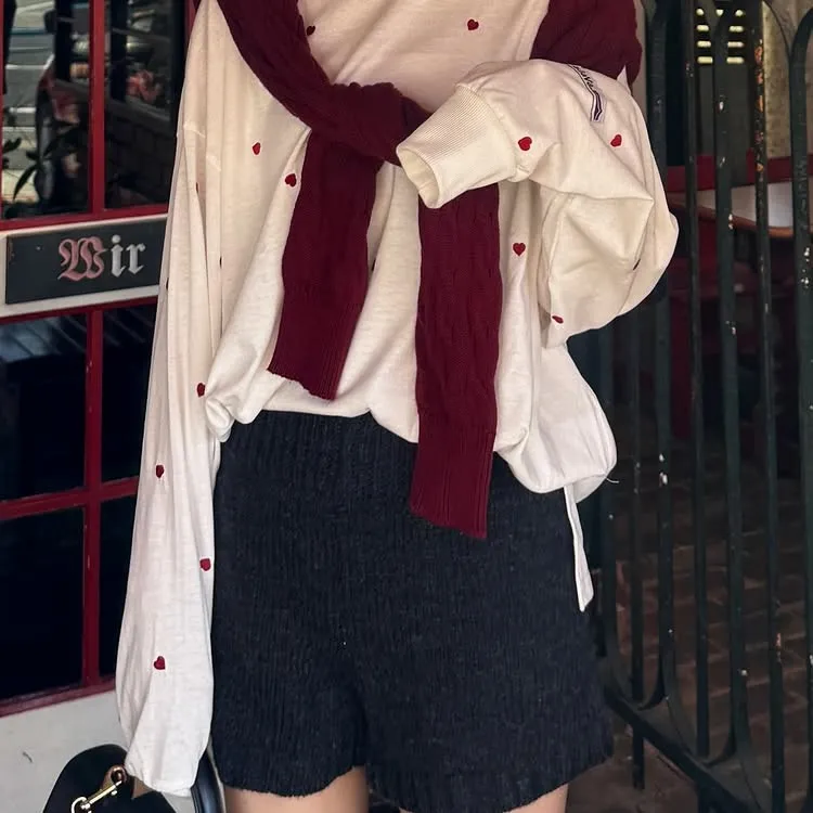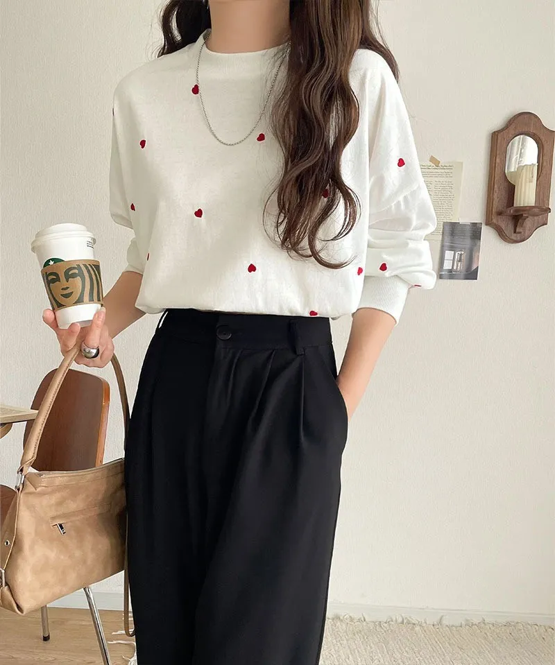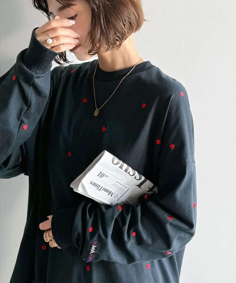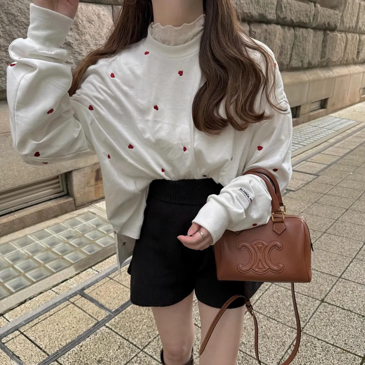 專櫃火紅~可愛精緻立體愛心刺繡長袖T恤