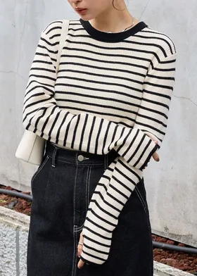 簡單基本款 袖口配色小亮點的螺紋針織衫