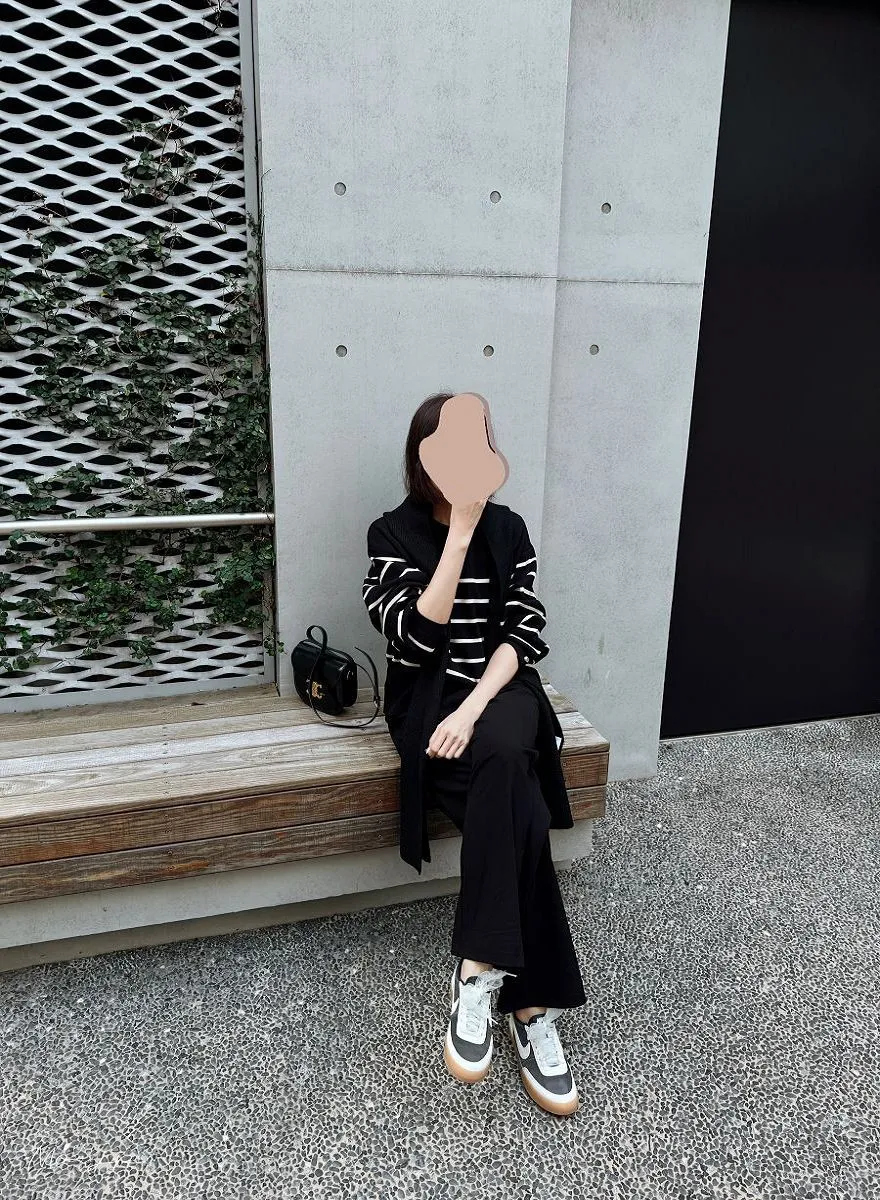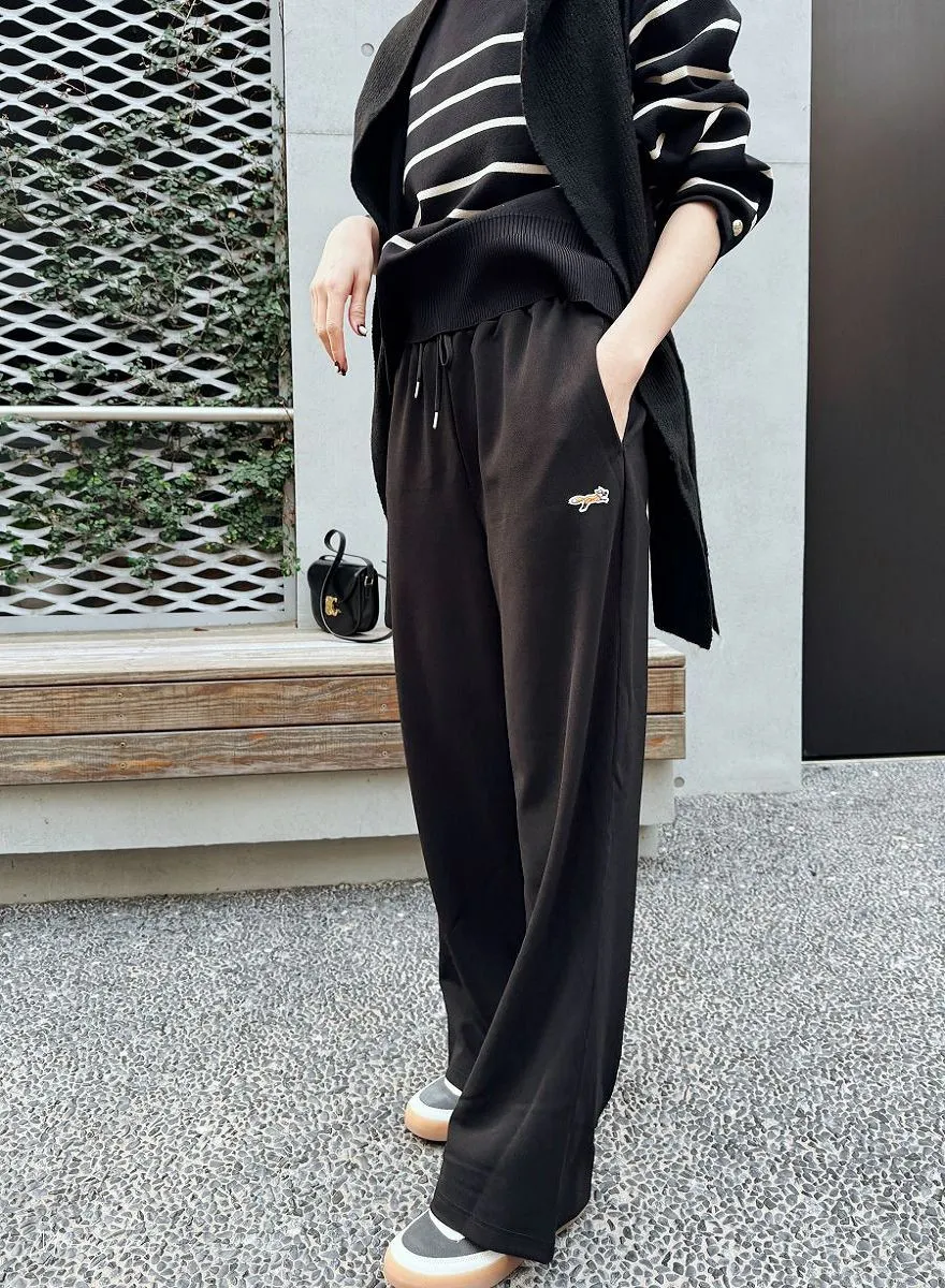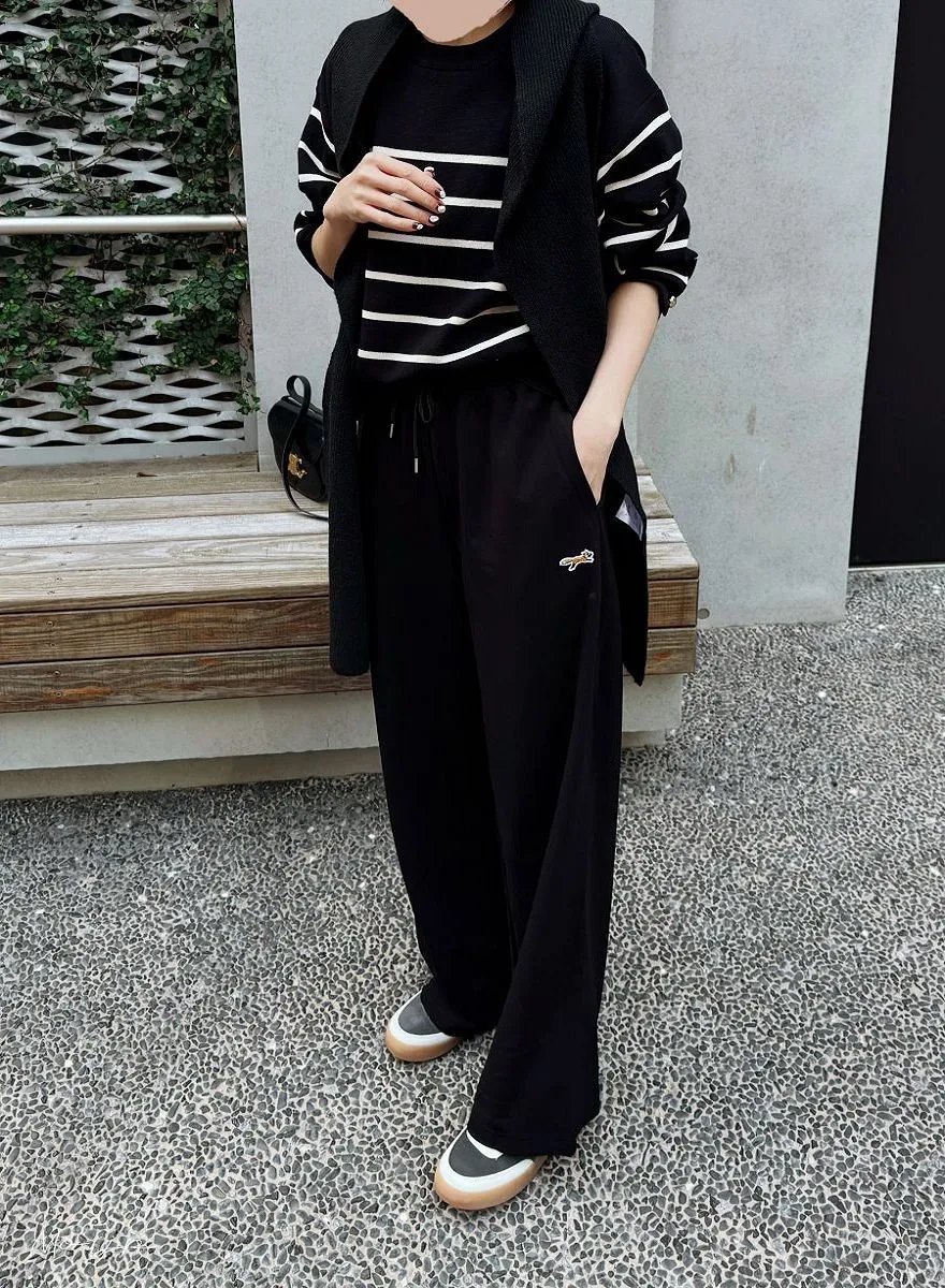 落地絲緞寬褲增加了一點休閒感的氛圍