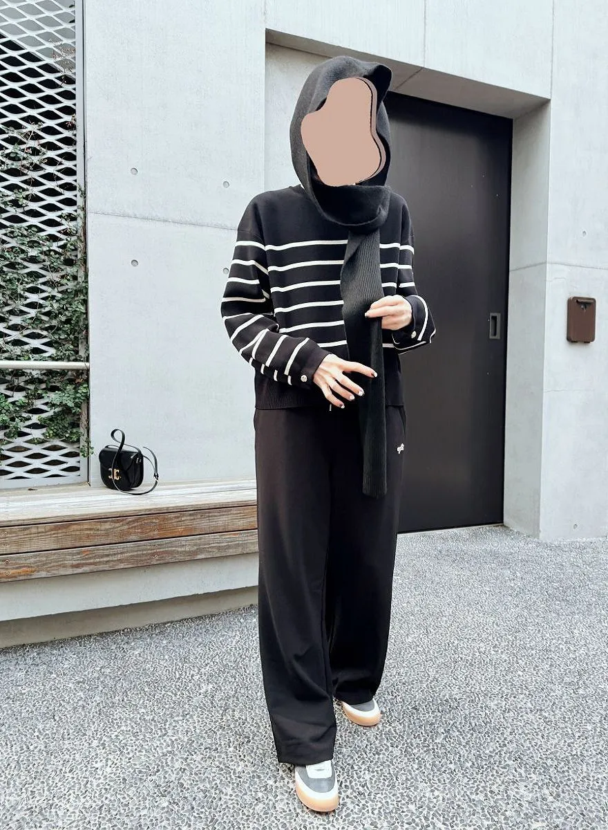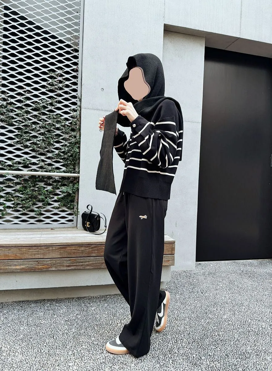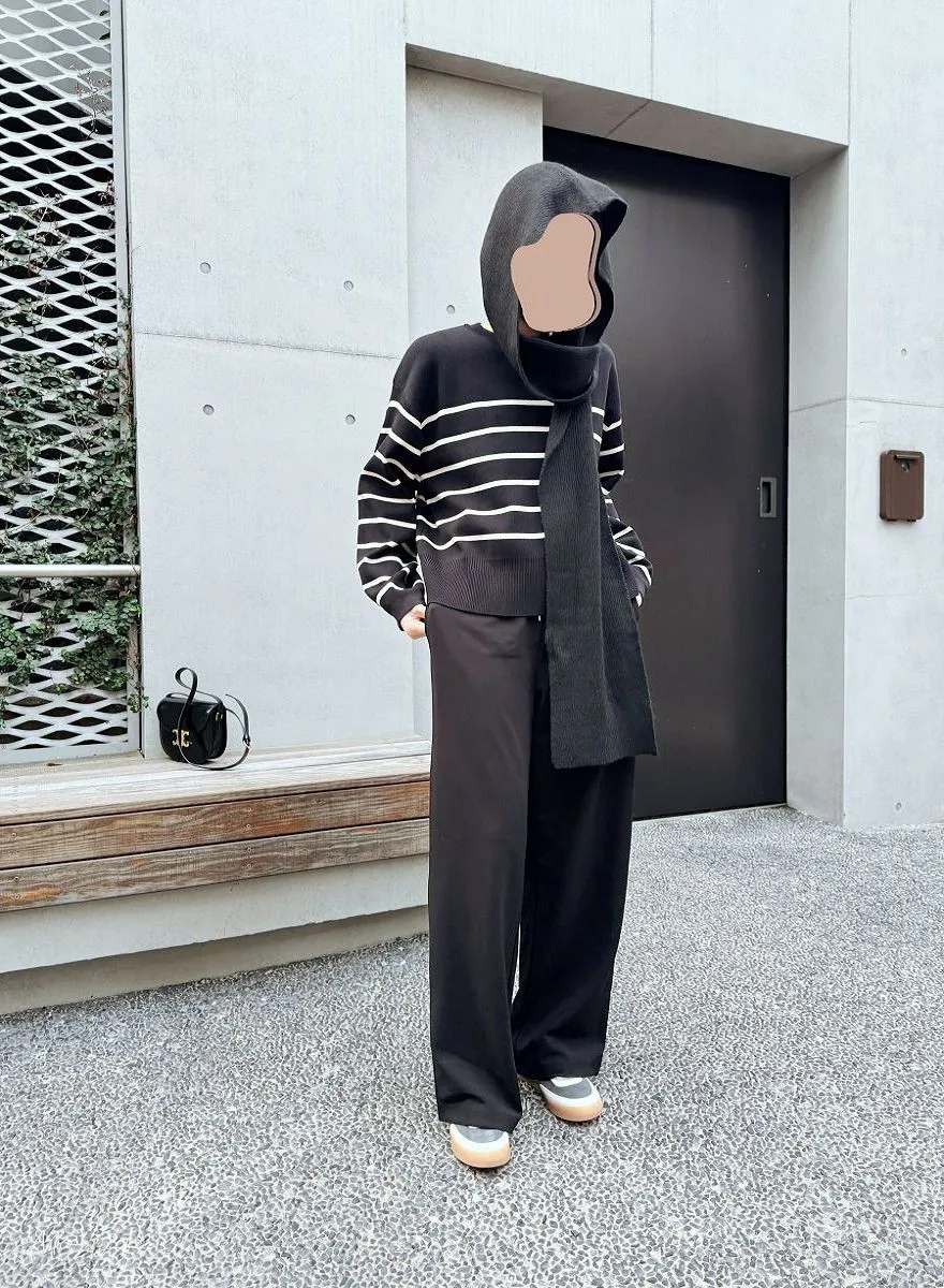 落地絲緞寬褲增加了一點休閒感的氛圍