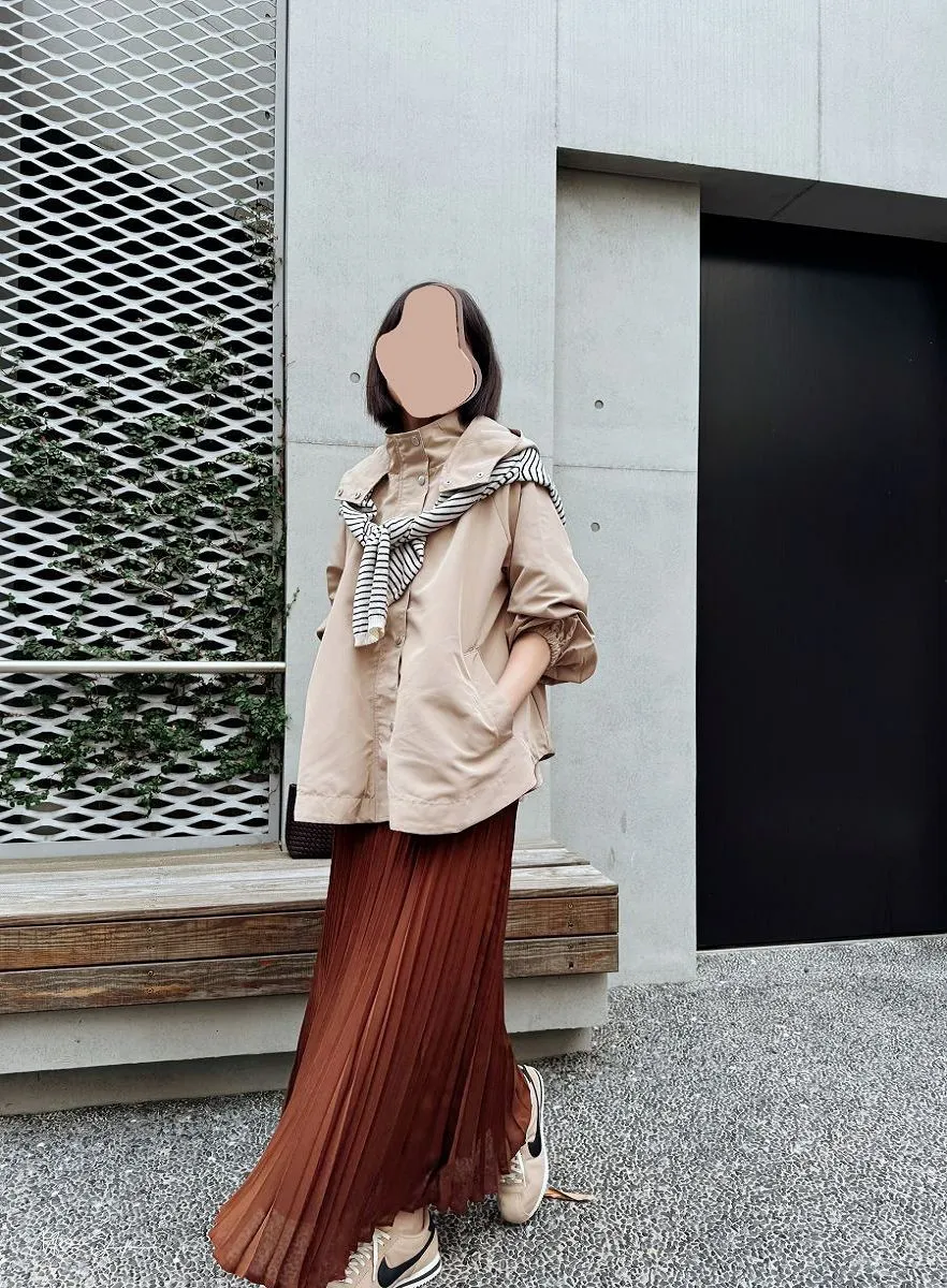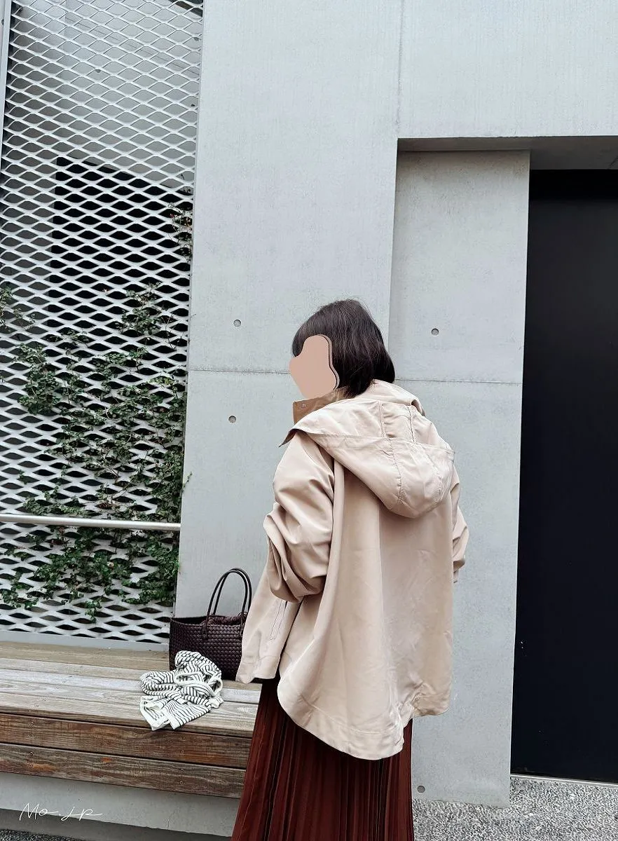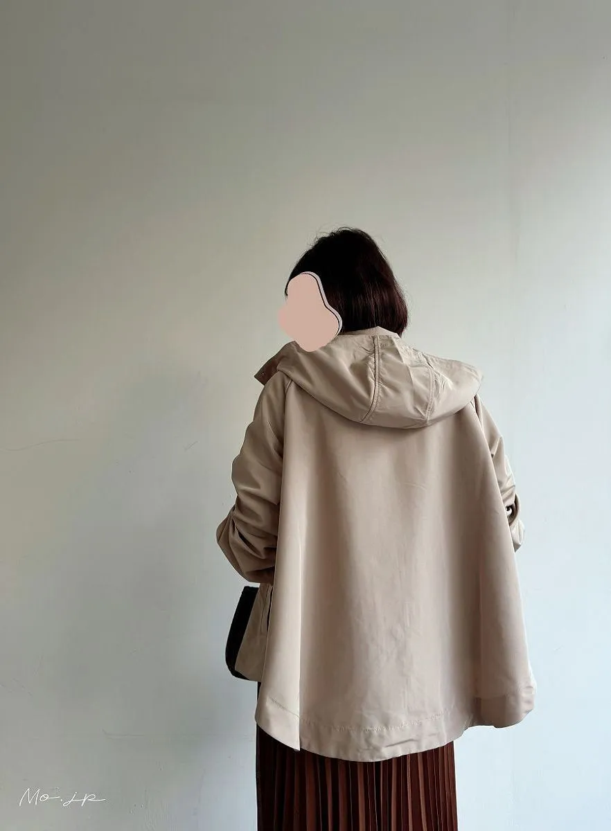 整件下擺弧度超級美~面料有挺度~連帽子自然垂墜也好看