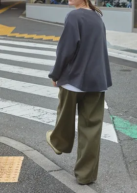 ワッフル素材とオーバーサイズシルエットで抜け感たっぷりに仕上げた1着。