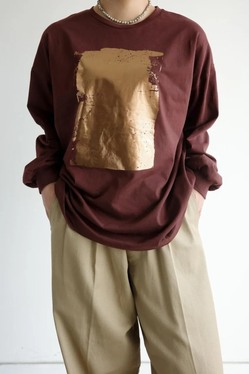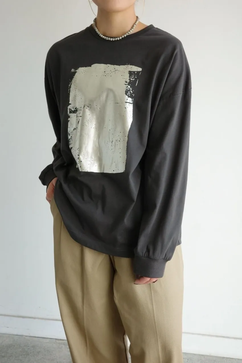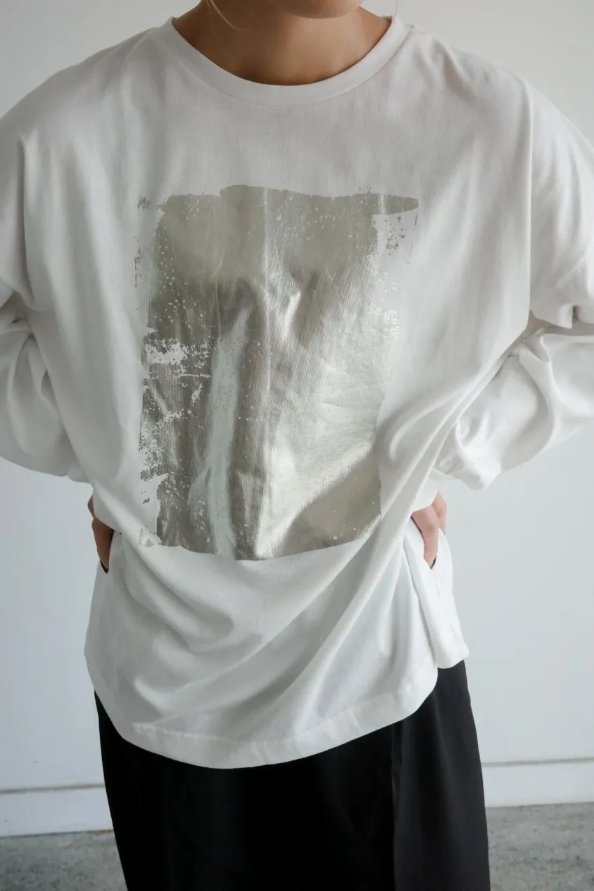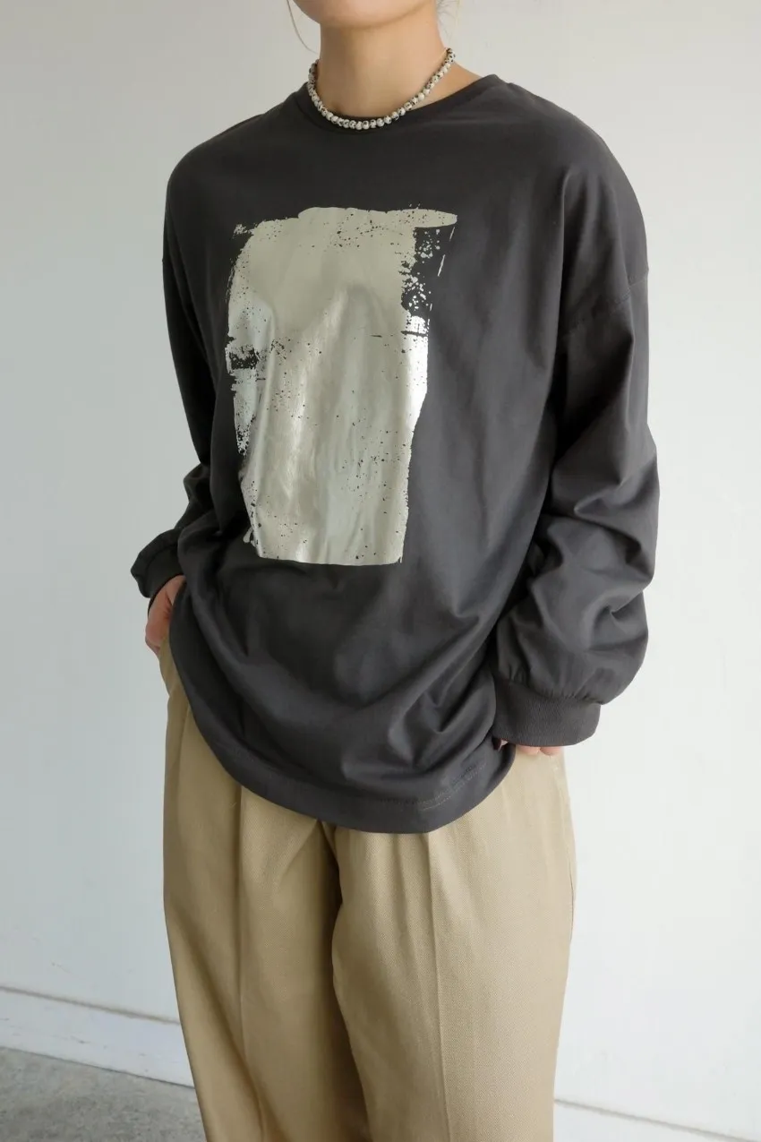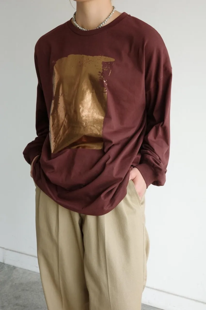 秋新品~長袖款金箔斑駁素感寬鬆版T