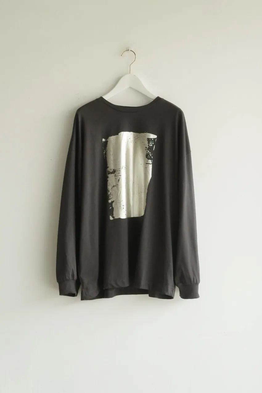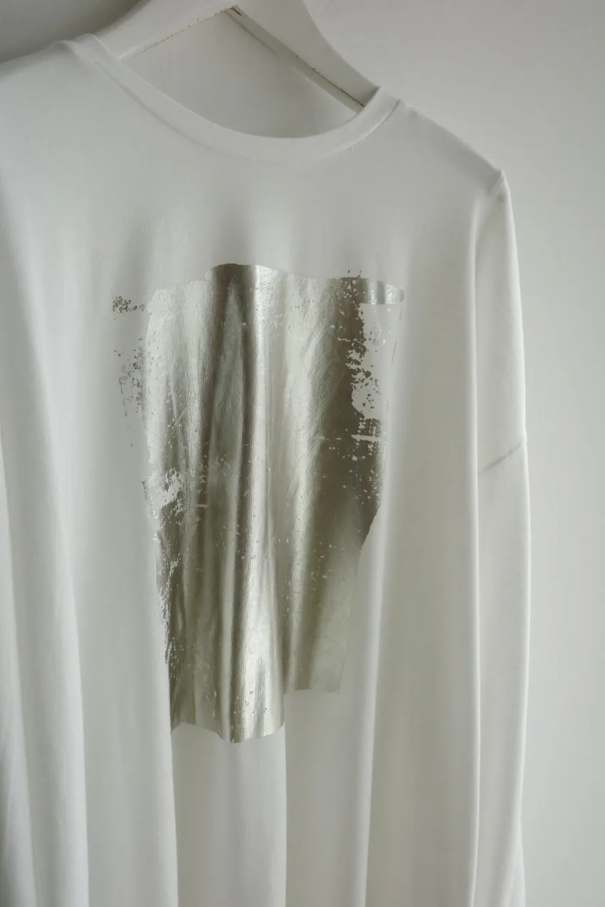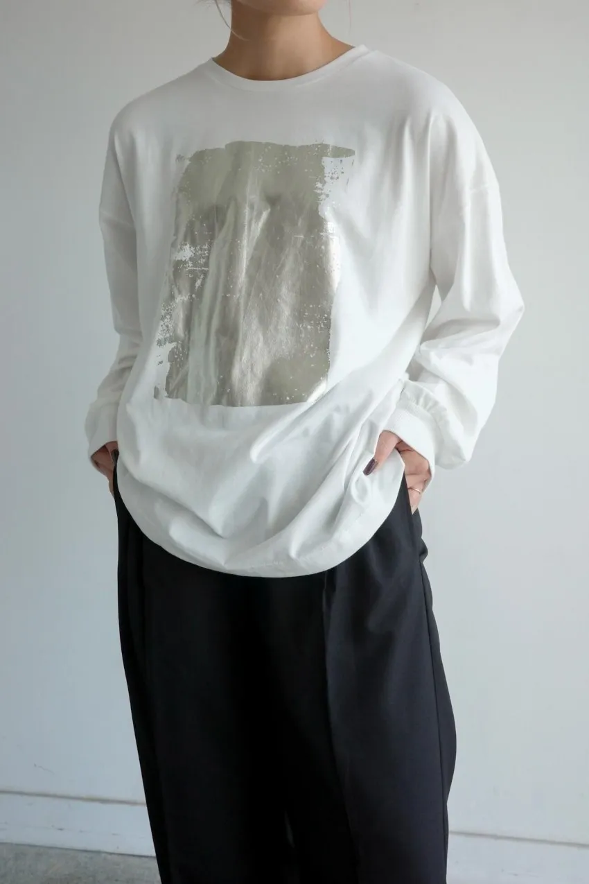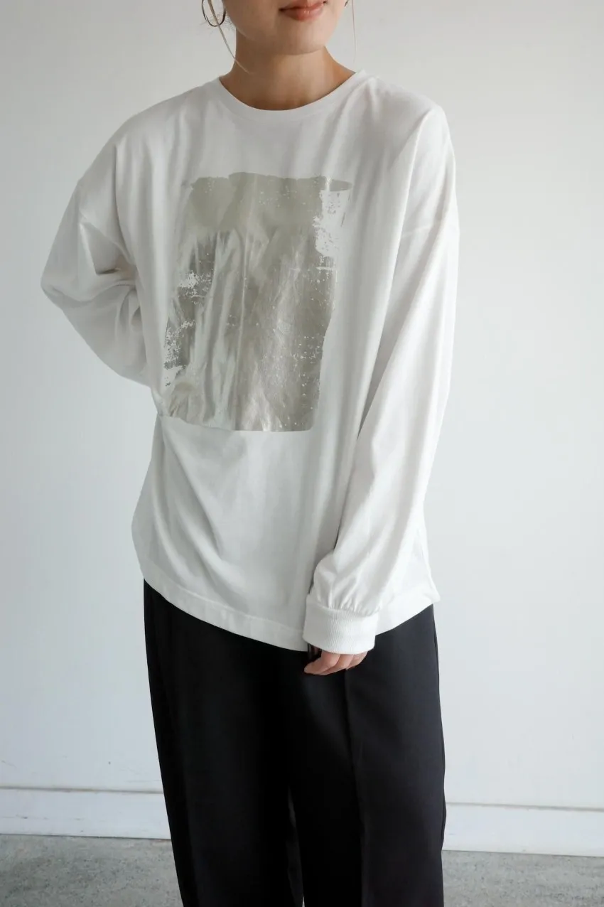 秋新品~長袖款金箔斑駁素感寬鬆版T