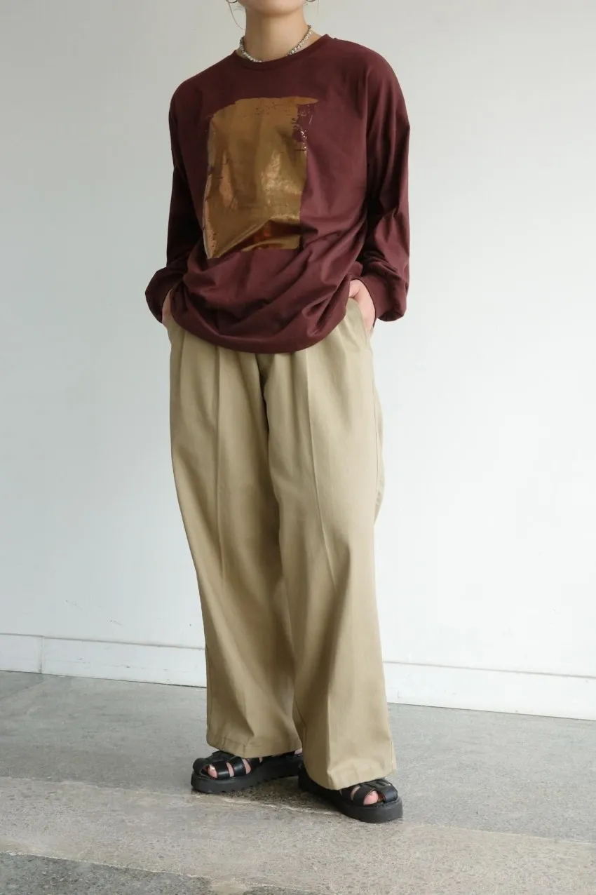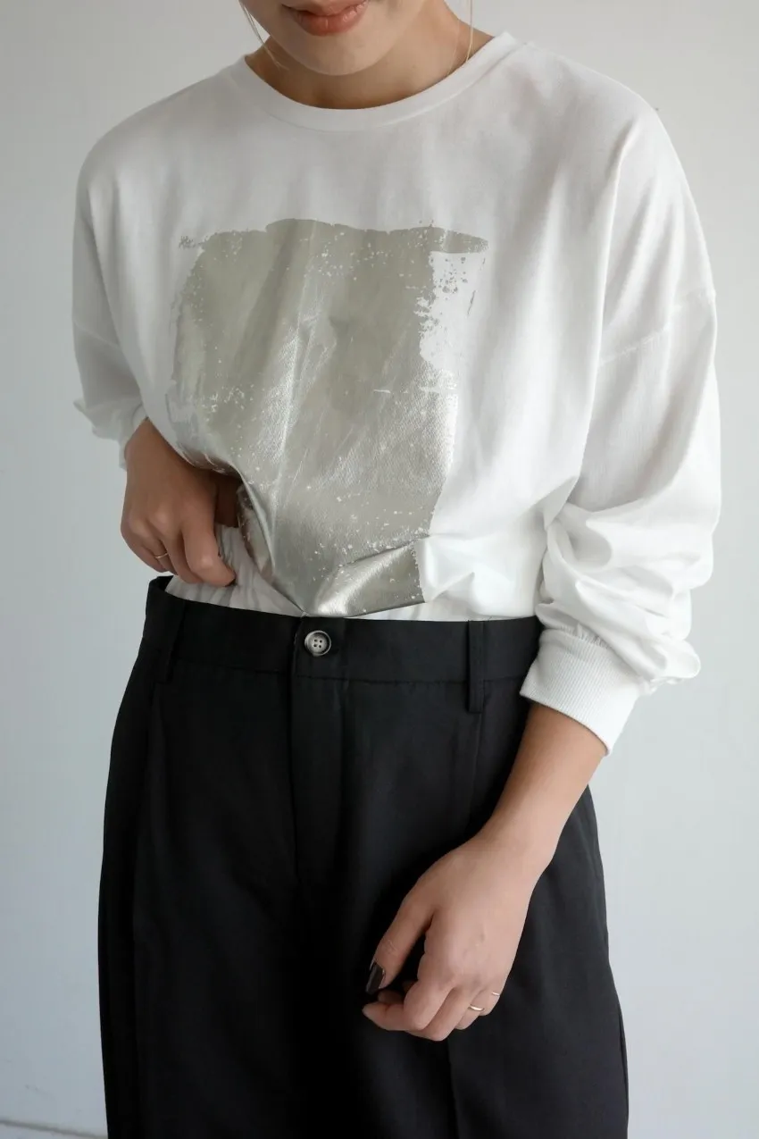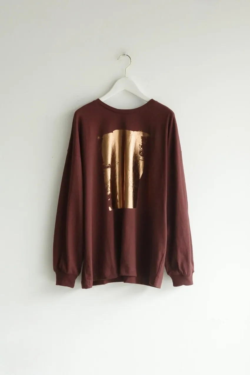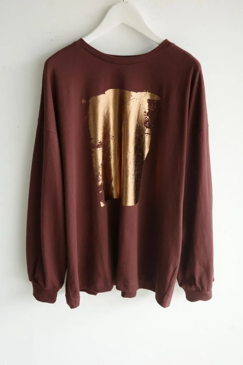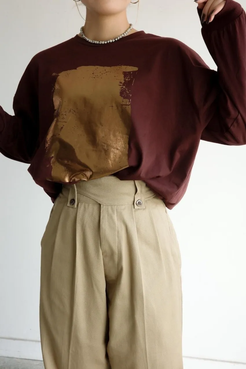 秋新品~長袖款金箔斑駁素感寬鬆版T