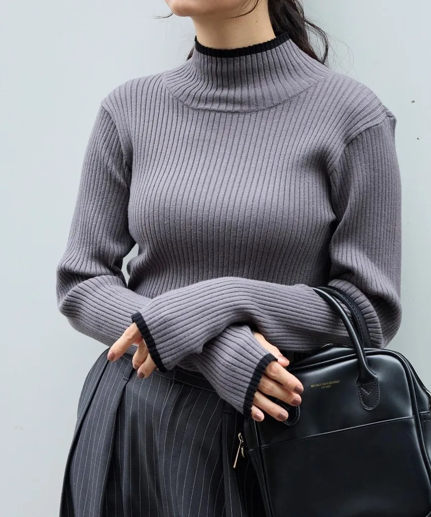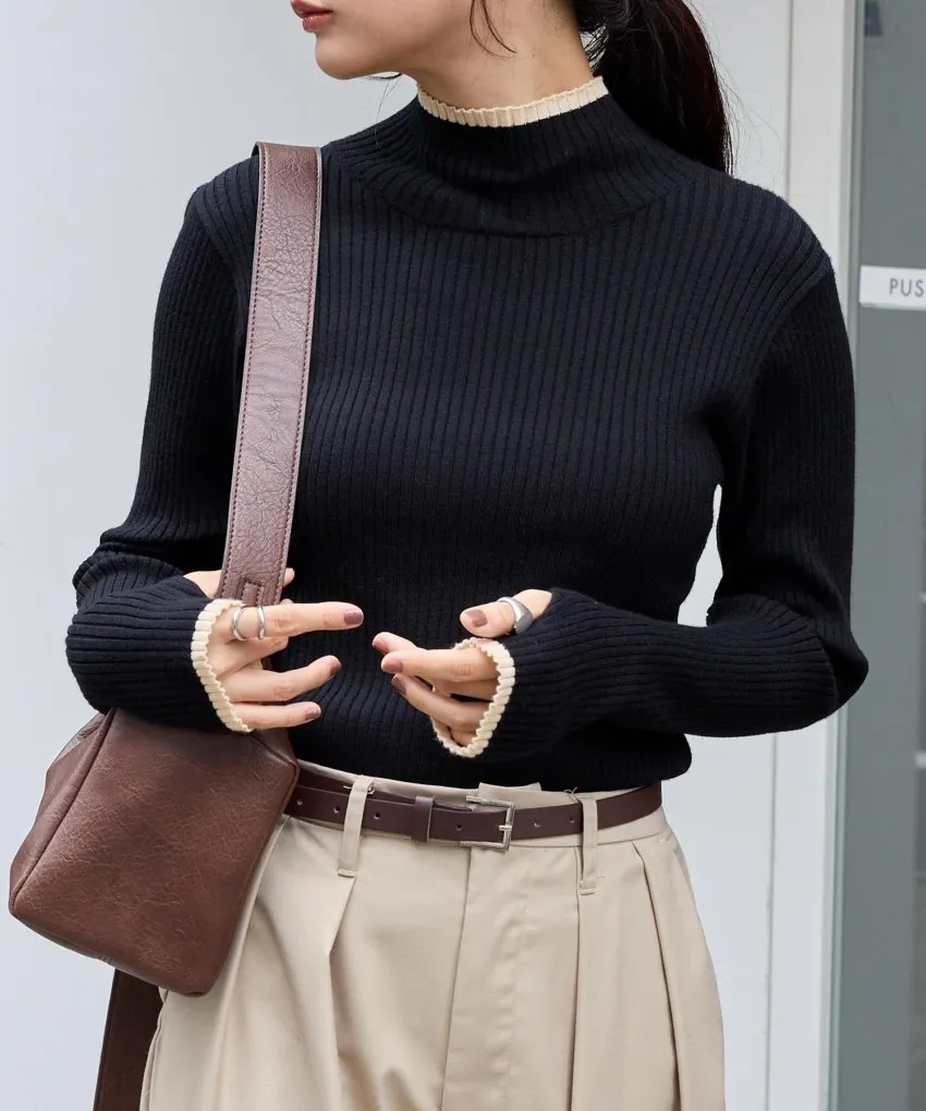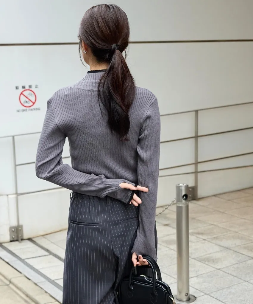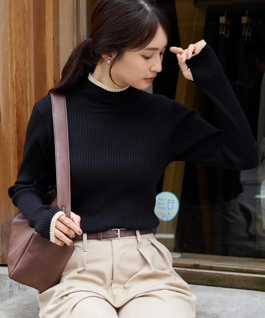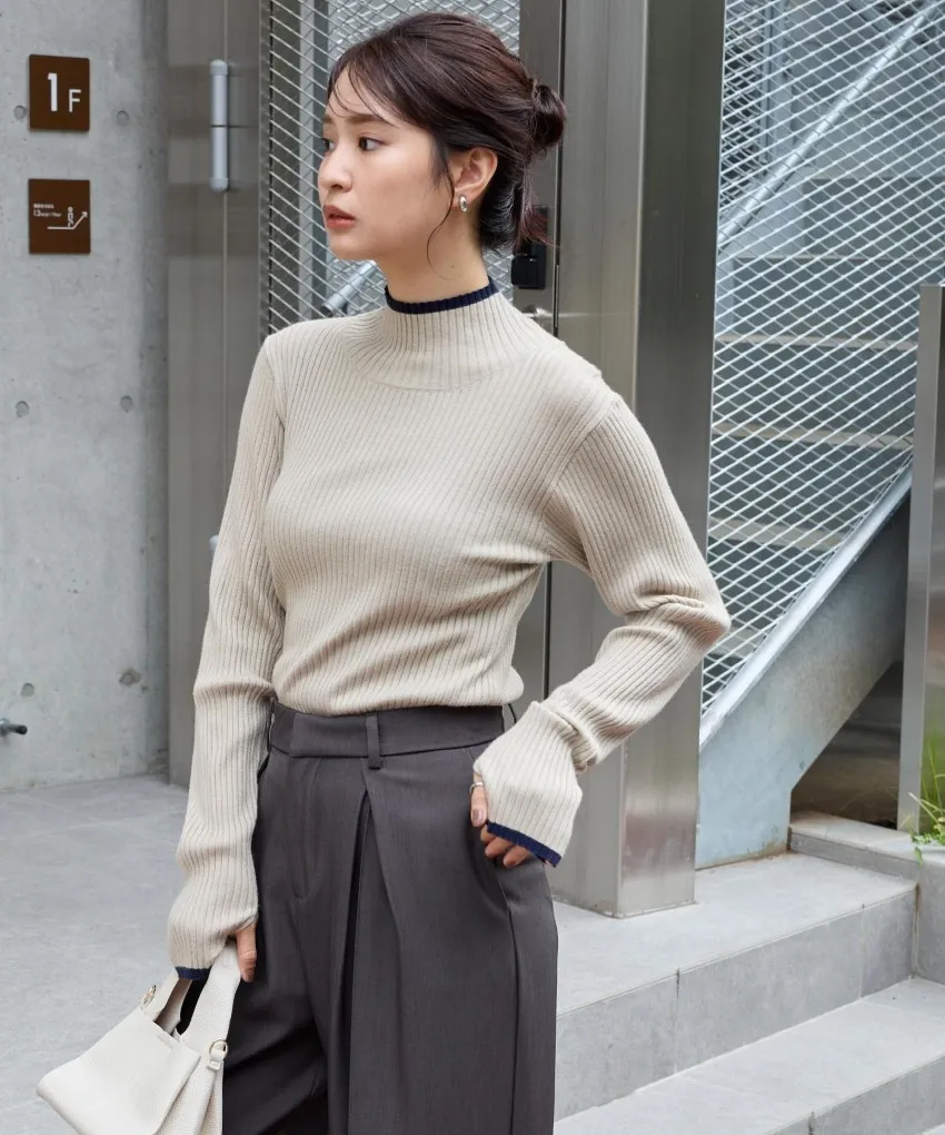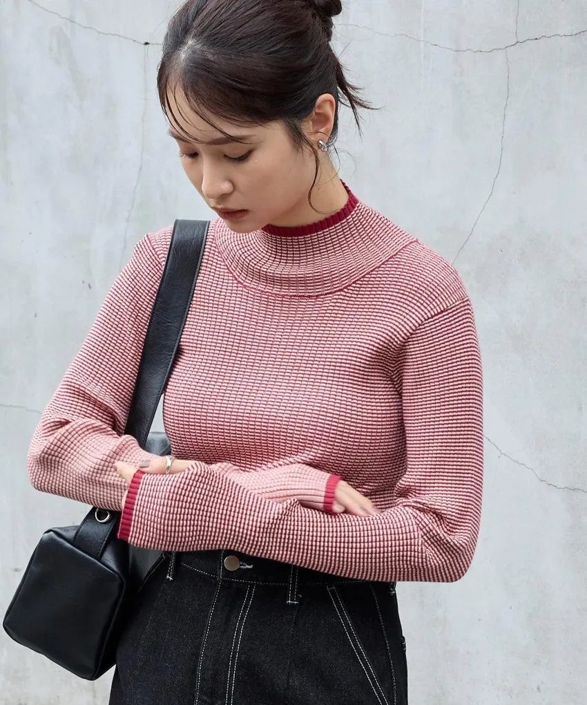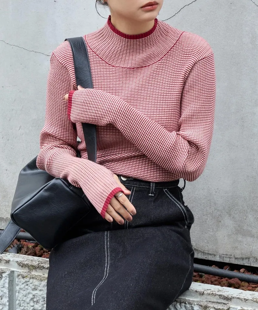 小包領凹凸壓文服貼合身針織上衣