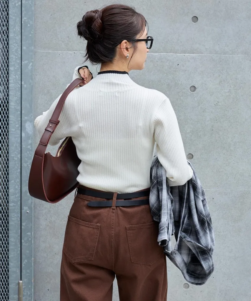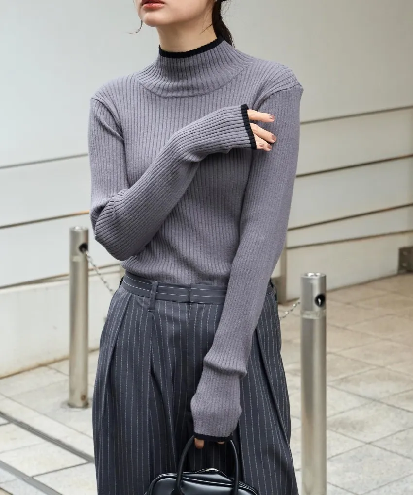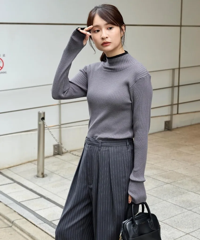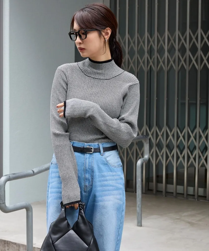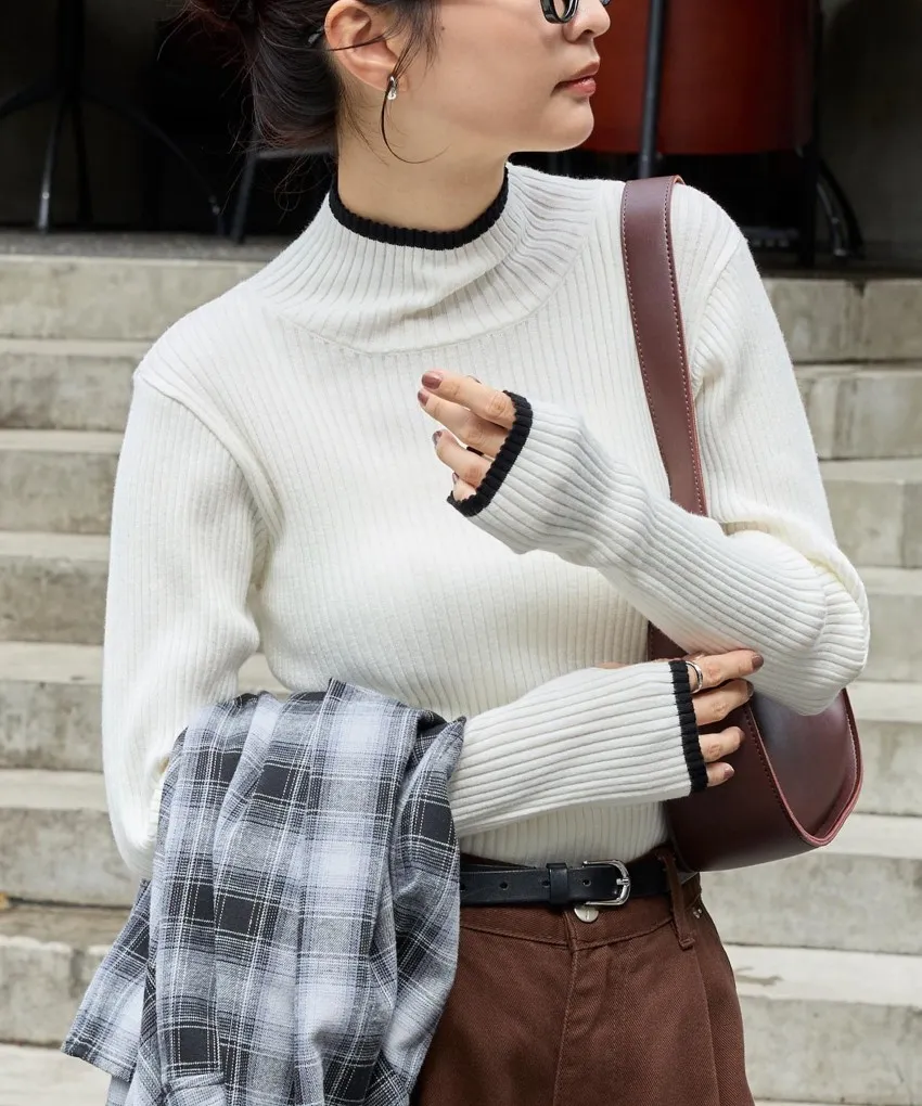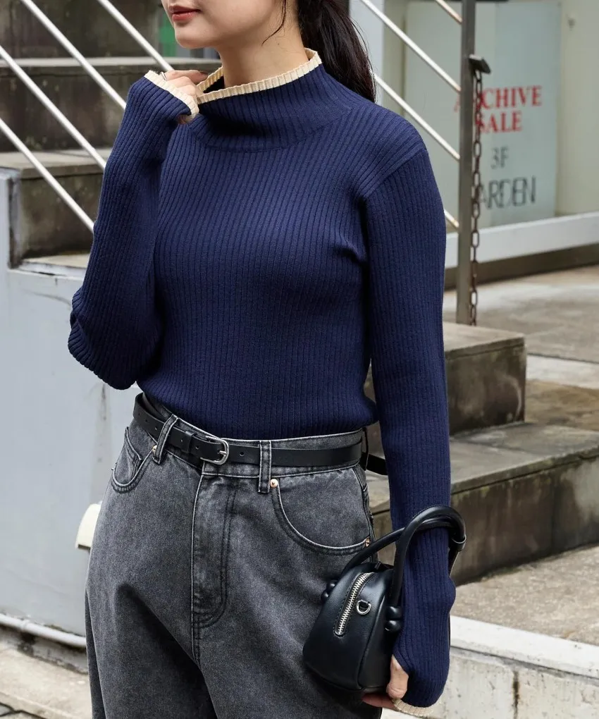 小包領凹凸壓文服貼合身針織上衣