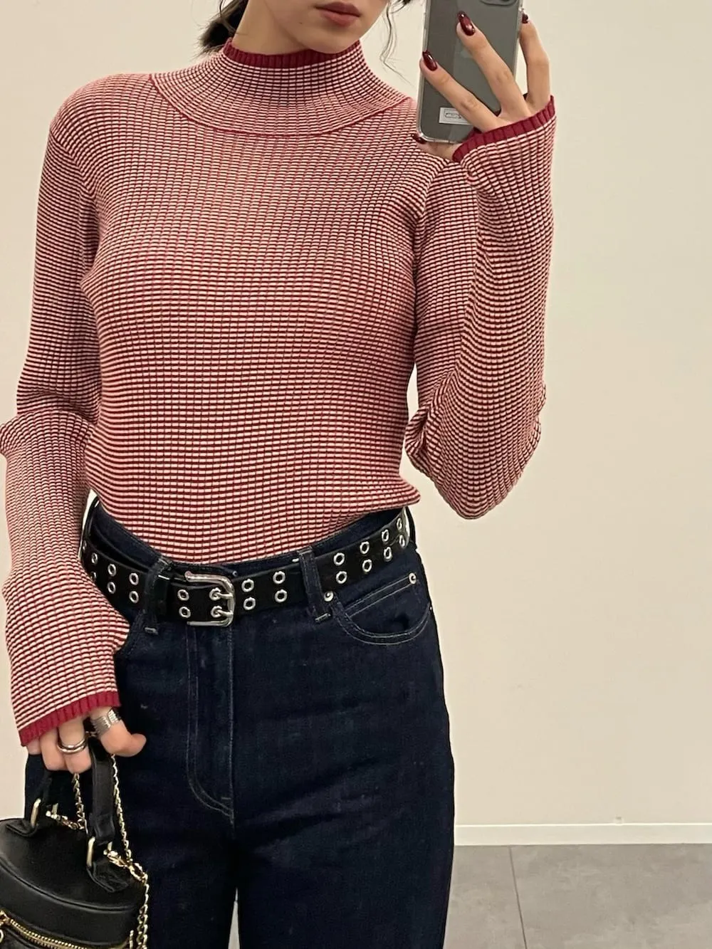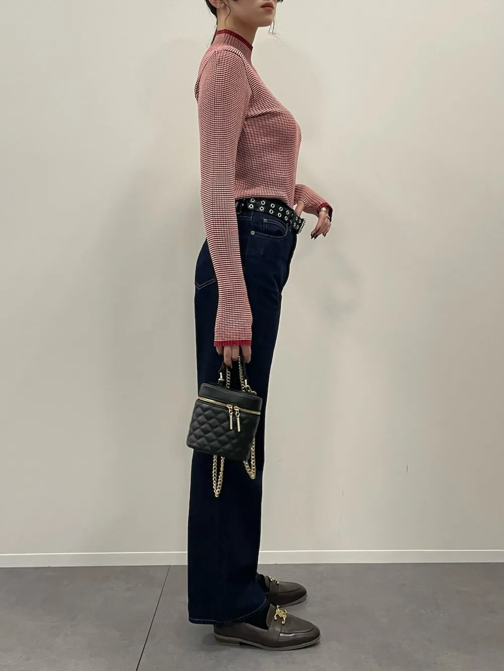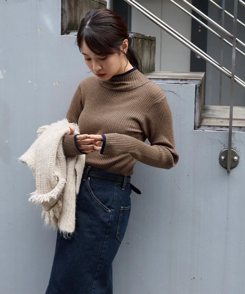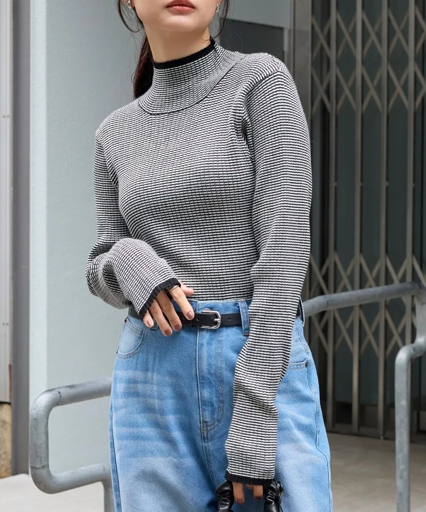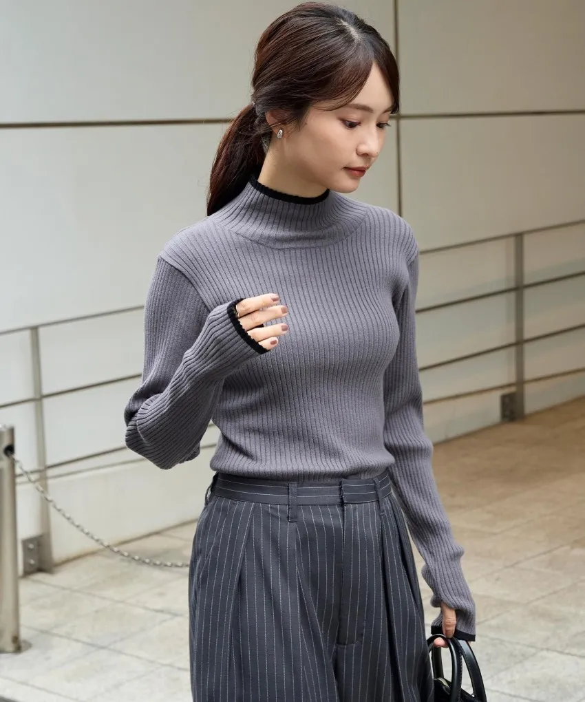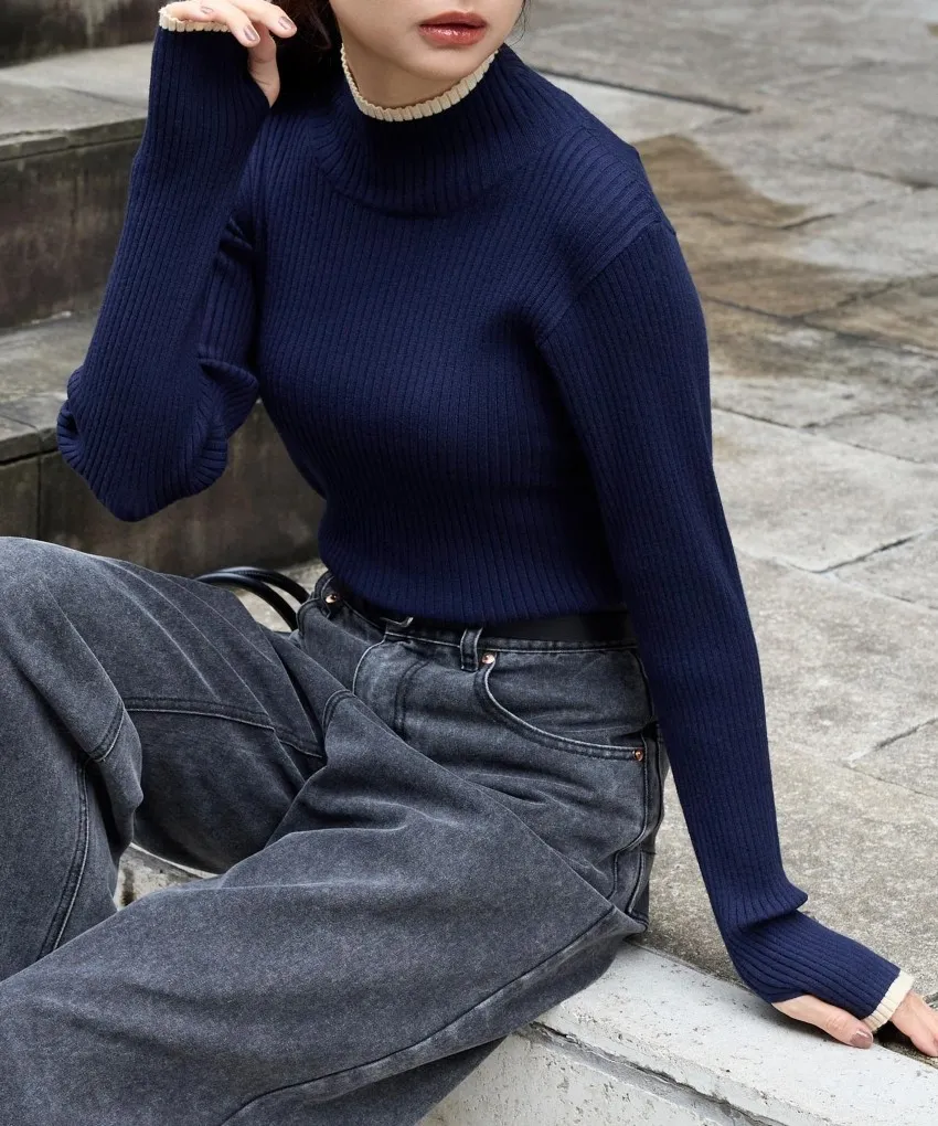 小包領凹凸壓文服貼合身針織上衣