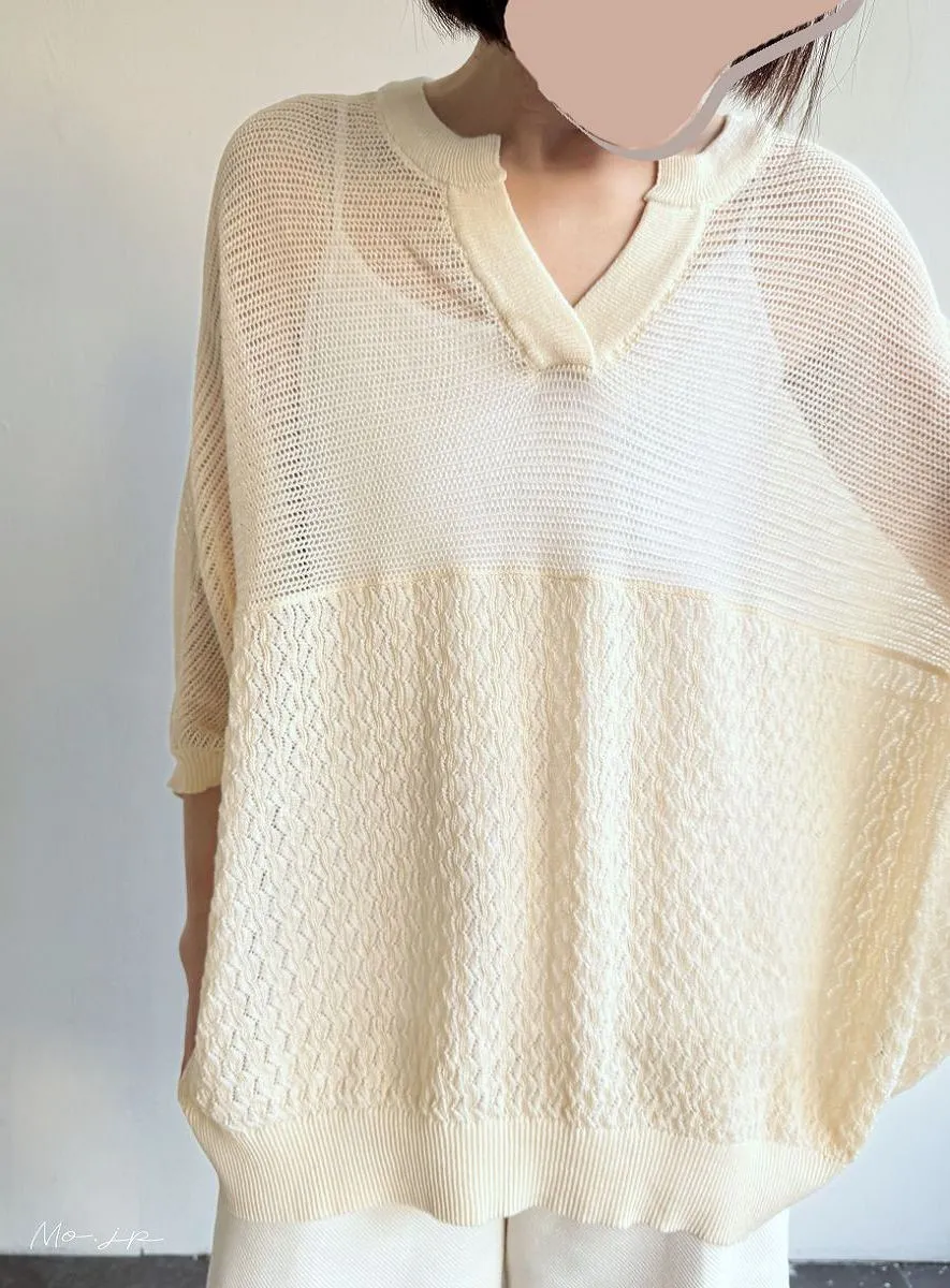 品牌秋季折扣~幾騰編織圖騰弧形針織衫