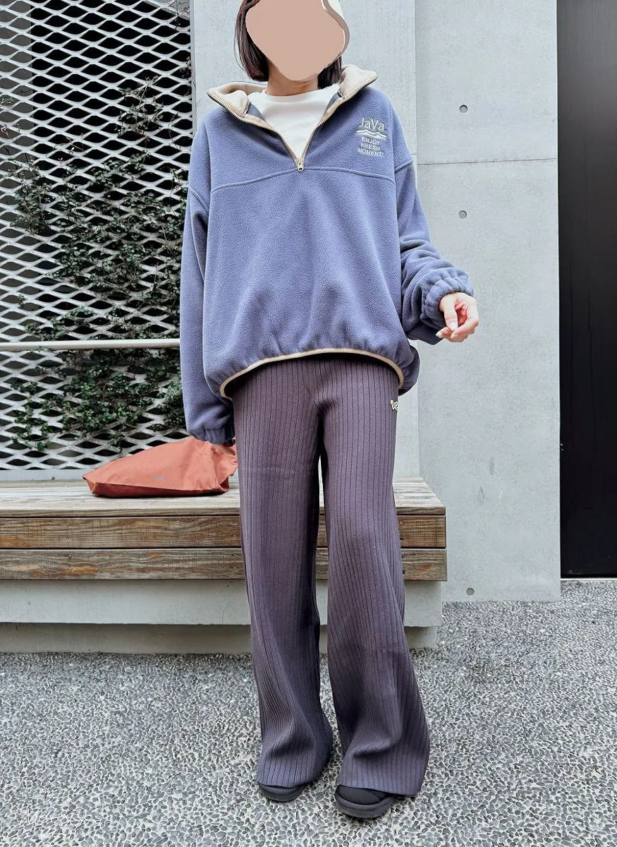 凹凸立體壓紋彈性落地寬褲