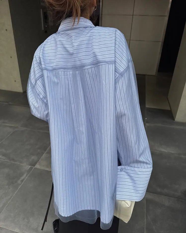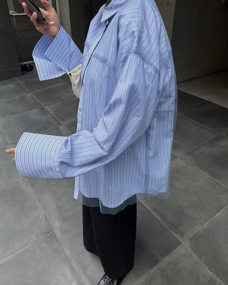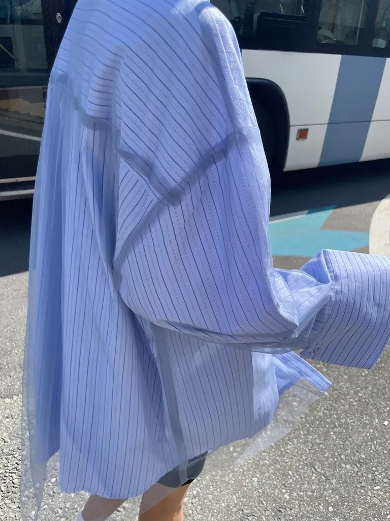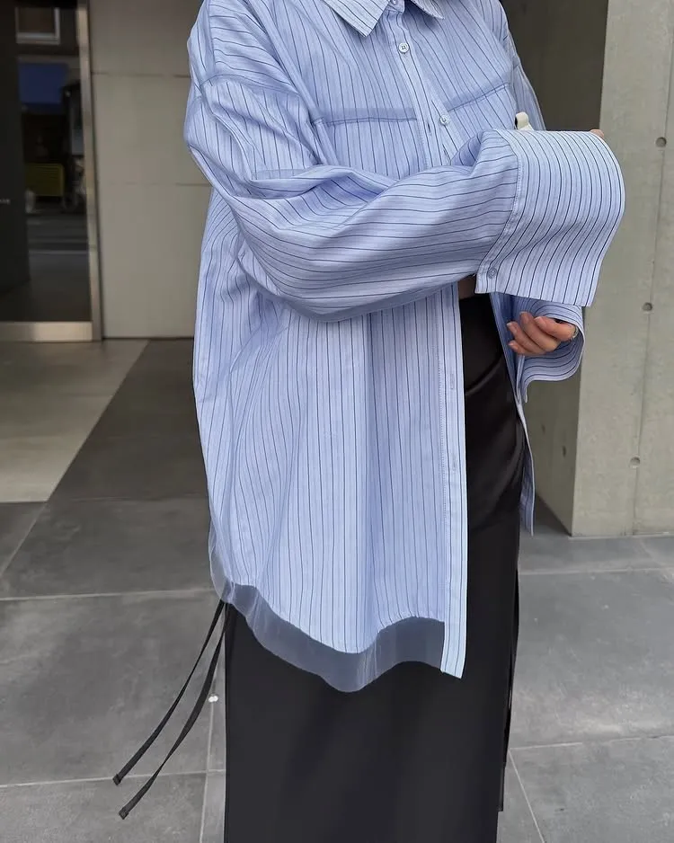 非常多人許願!!店長回饋喔之前有賣過短版的~整個深受大家歡迎今年專櫃推出正常版襯衫更好搭耶!!當外套也好好看太好看了吧!!!價格也好可愛喔~休閒的襯衫版型~加上網紗~好可愛2種款式襯衫面料線條款<這個面料很清爽~搭配起來好看>素面襯衫面料<稍稍比較帥氣>-2色都好看當穿就非常有特色~裡面穿個背心當外套也很OK耶價格超級可愛~