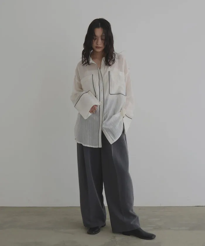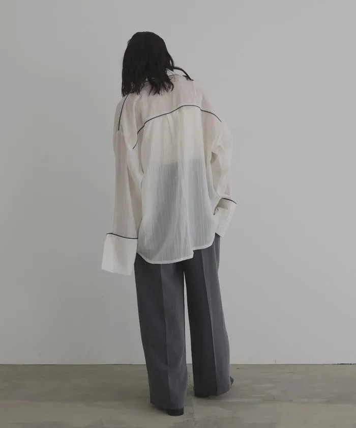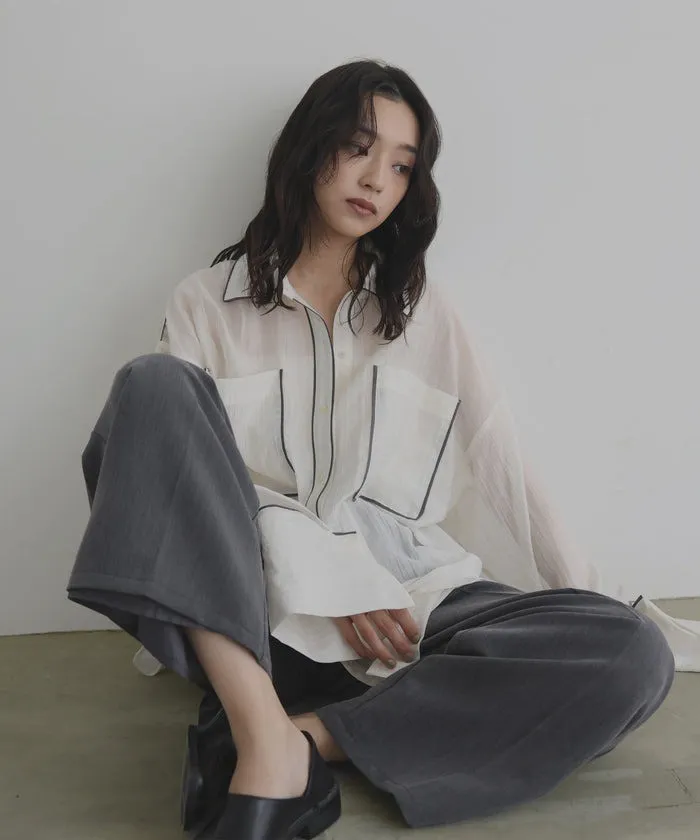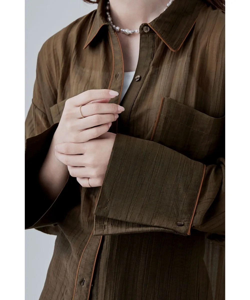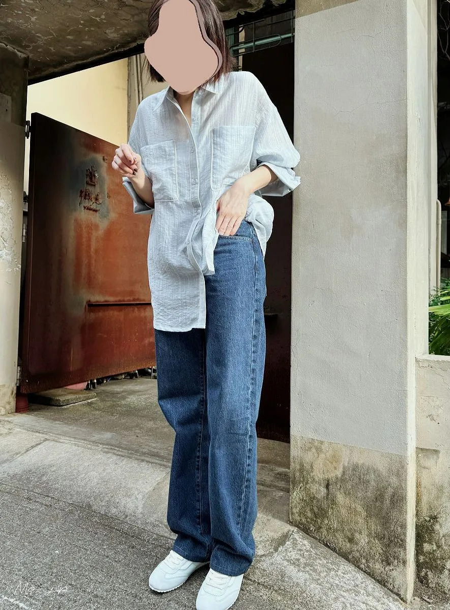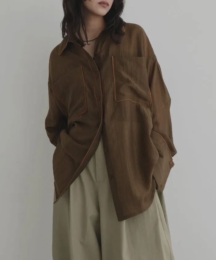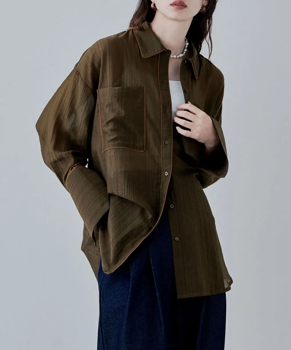 小幫自留水藍/米白光面料就非常有質感它是有立體的紋路~微微的霧面光澤立體紋路~超級美利用線條立體滾邊~好好看中長版~面料軟有墜度~非常舒服喔微透~建議內搭或搭配BRA TOP真心美的一款襯衫~專櫃折扣請入手請注意它的手部設計~超級好看喔手部設計加長~完美設計感如果反折又更美~真的超級推薦