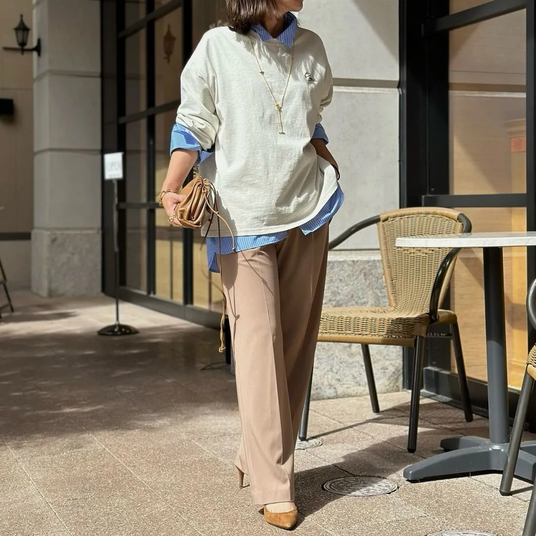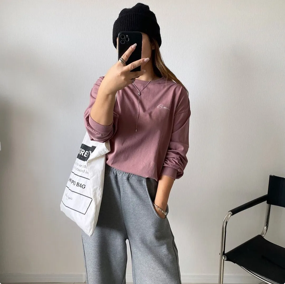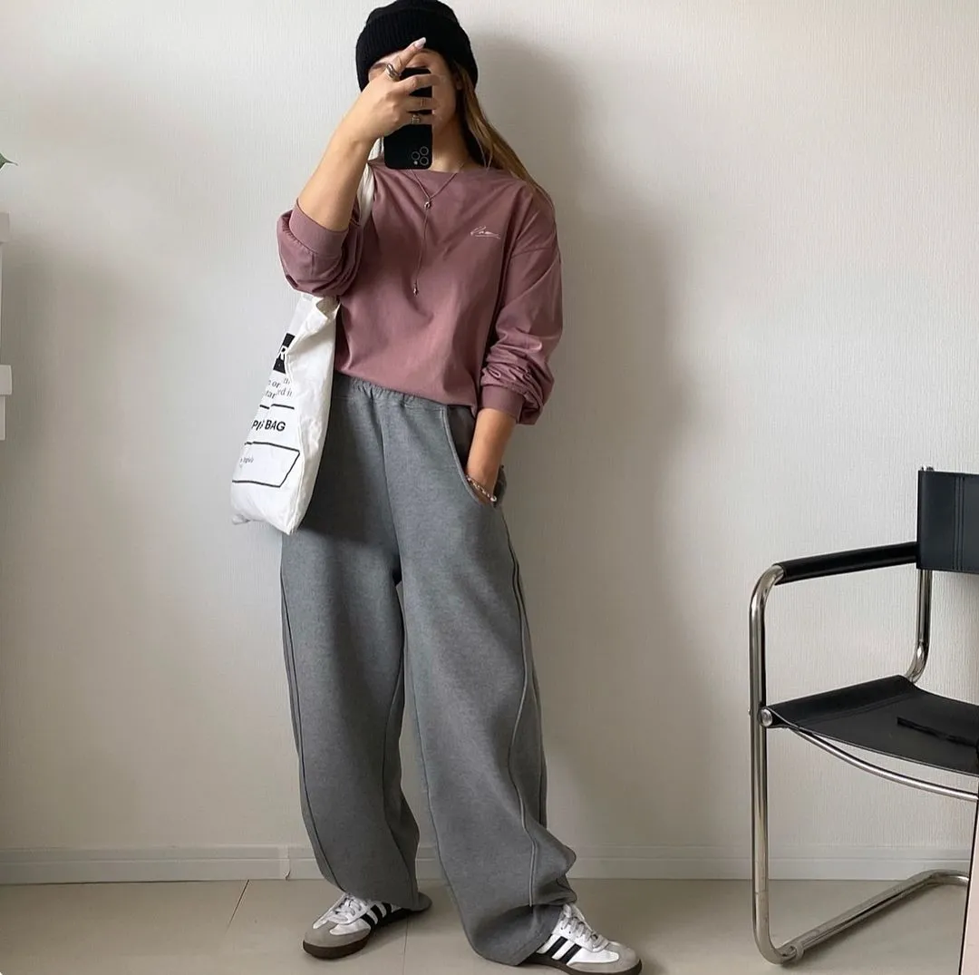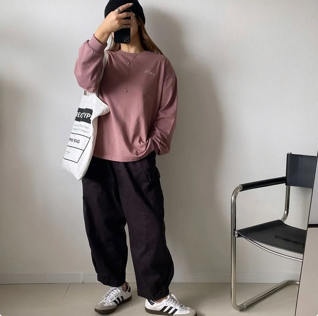 除了搭配丹寧褲~小幫自己也很喜歡搭配寬鬆的棉寬褲~整個舒服到極點<視覺看起來也很慵懶舒服>