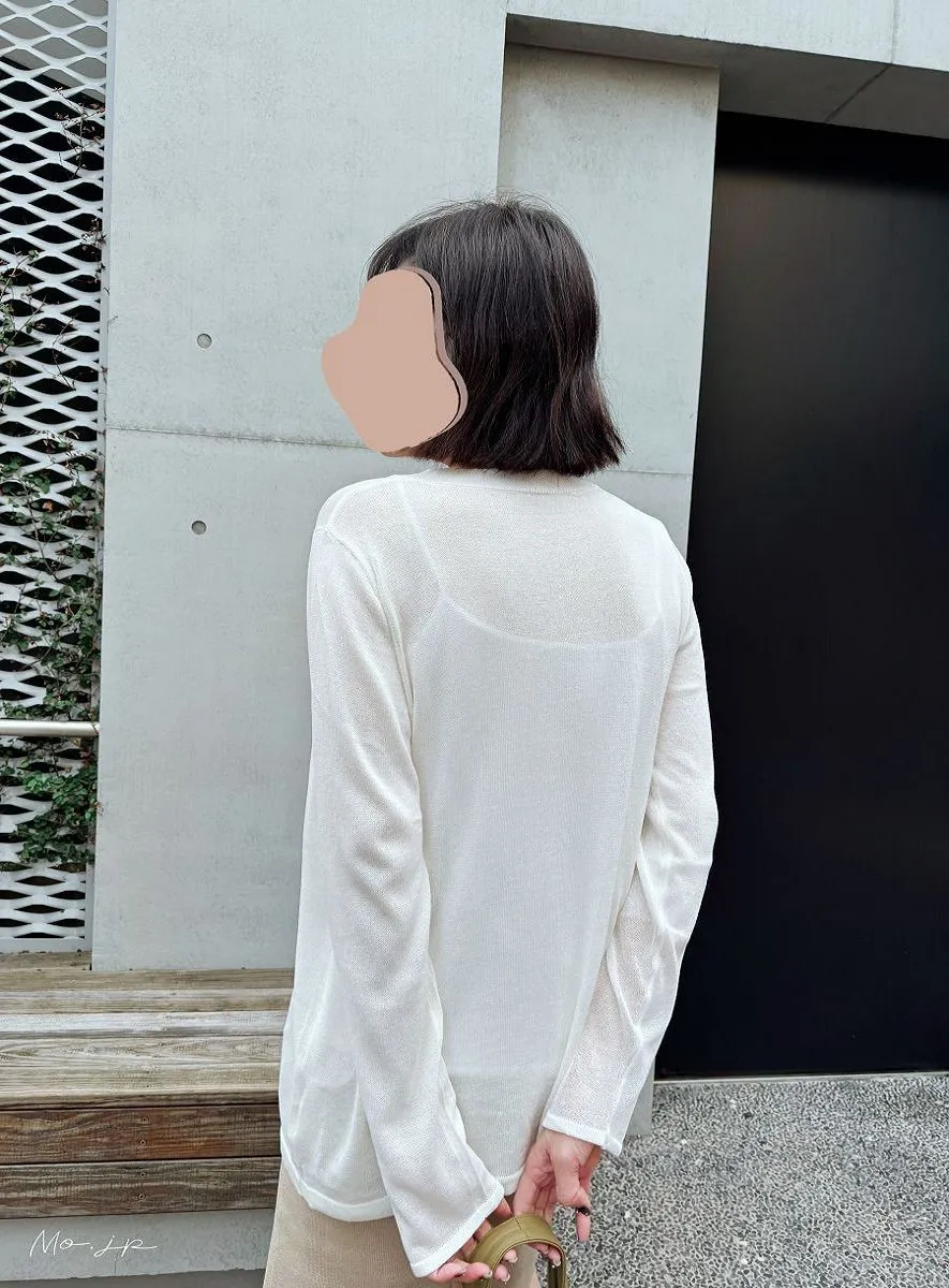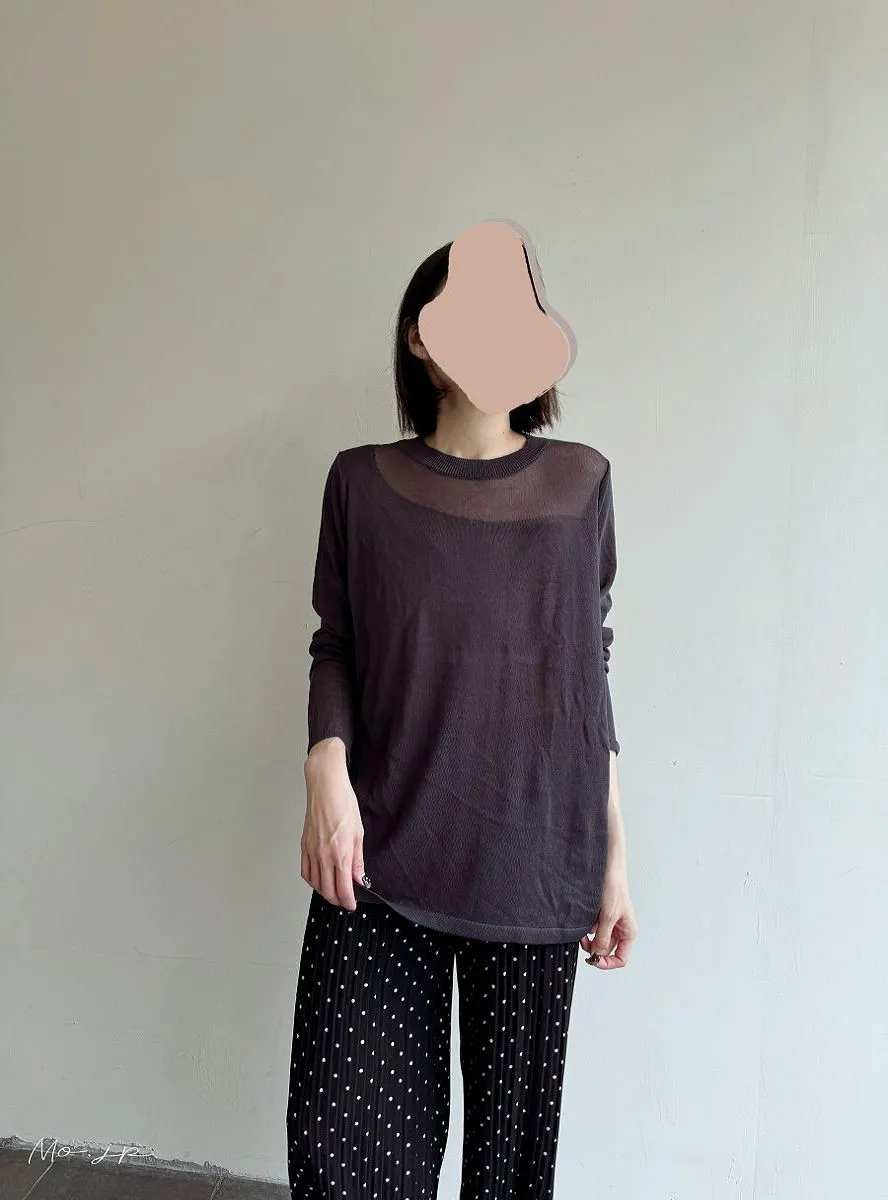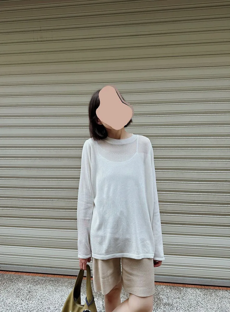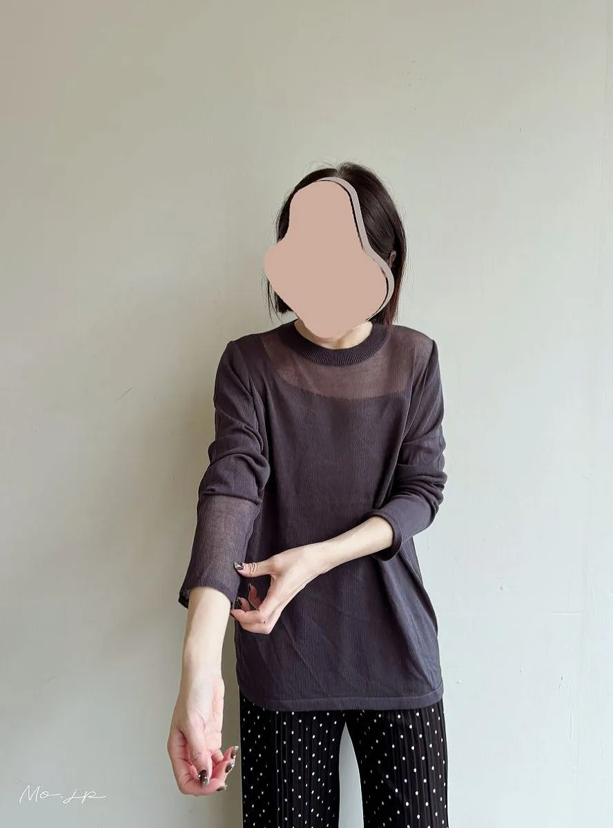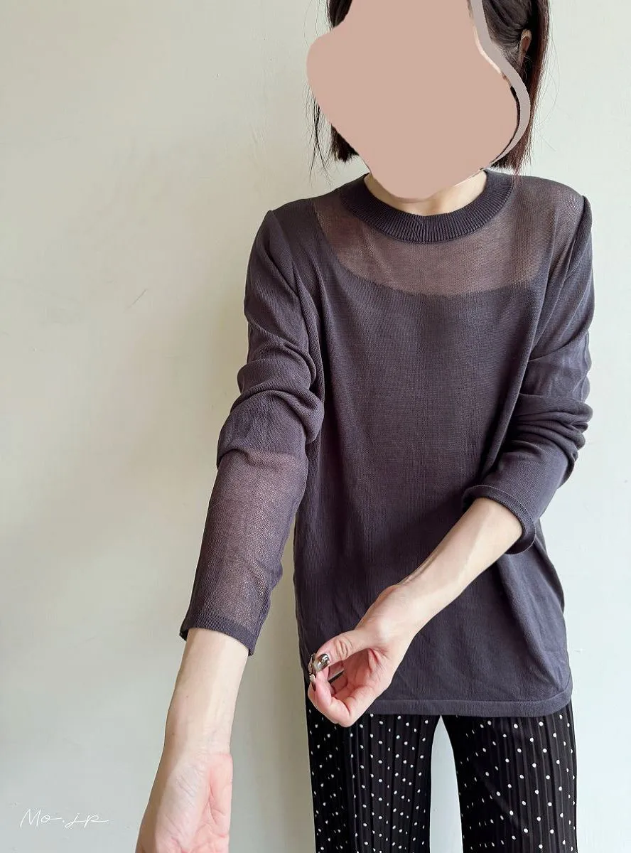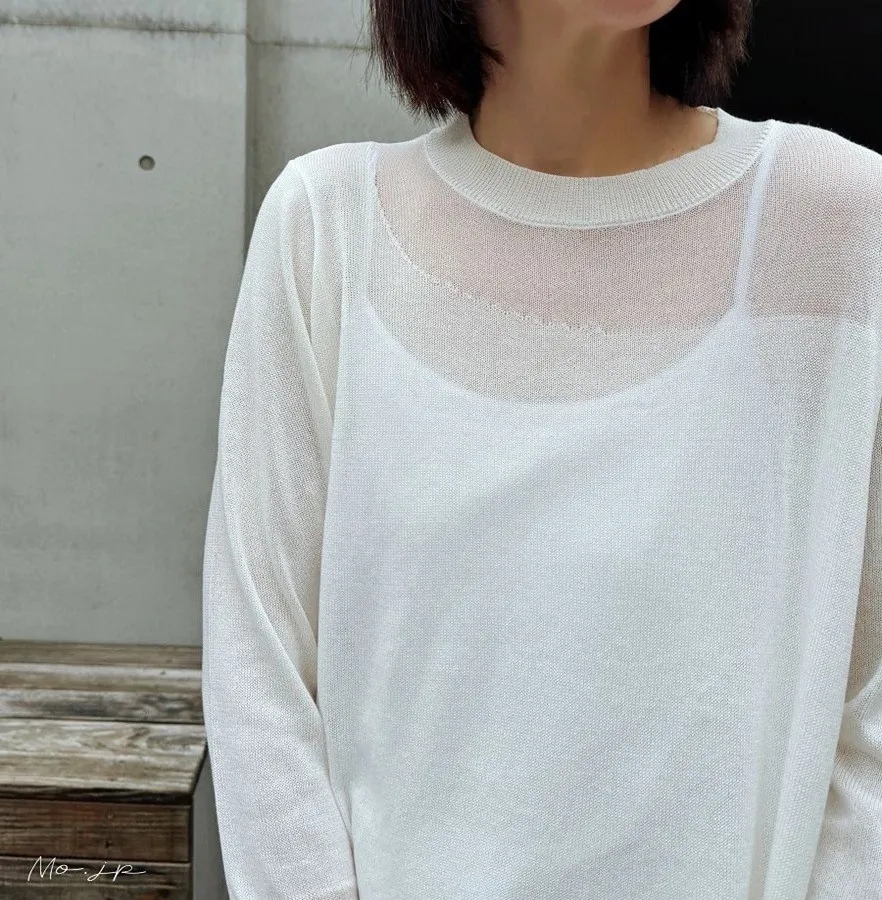 針織垂墜度很美~自然貼合肩線,打造直角肩效果<透感的部分讓鎖骨更美>