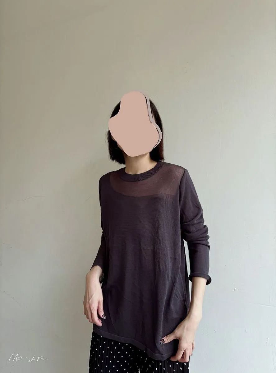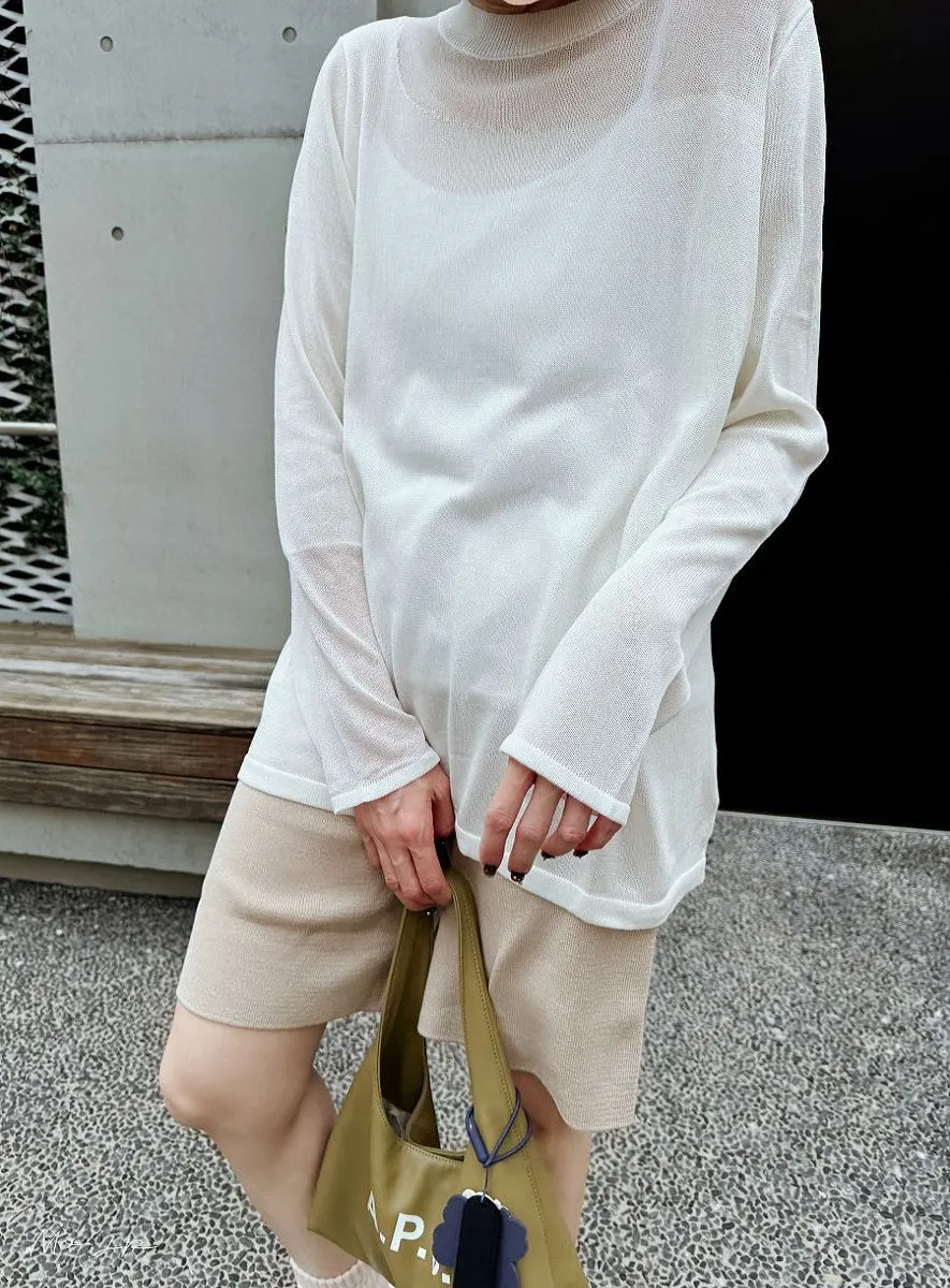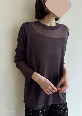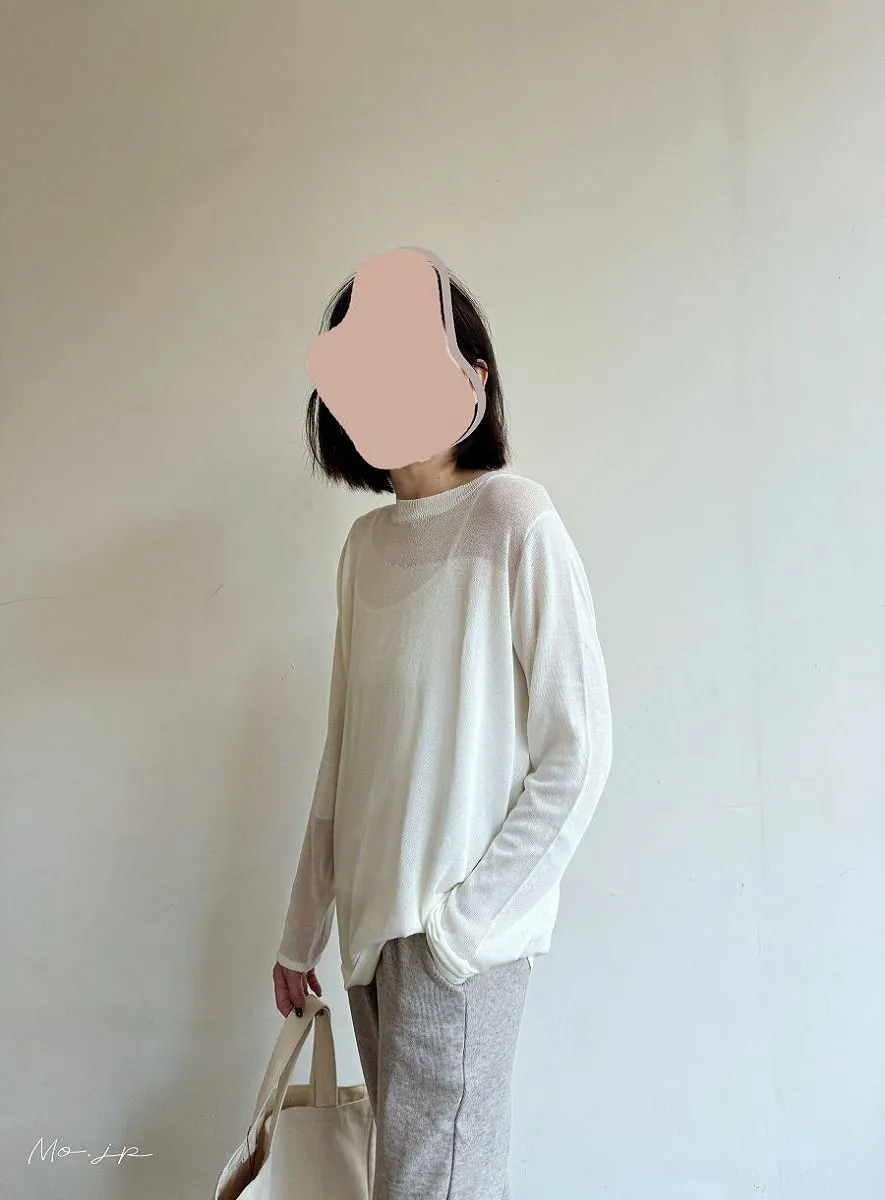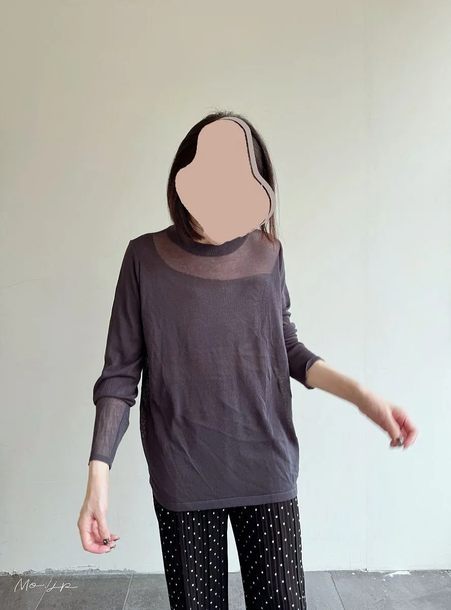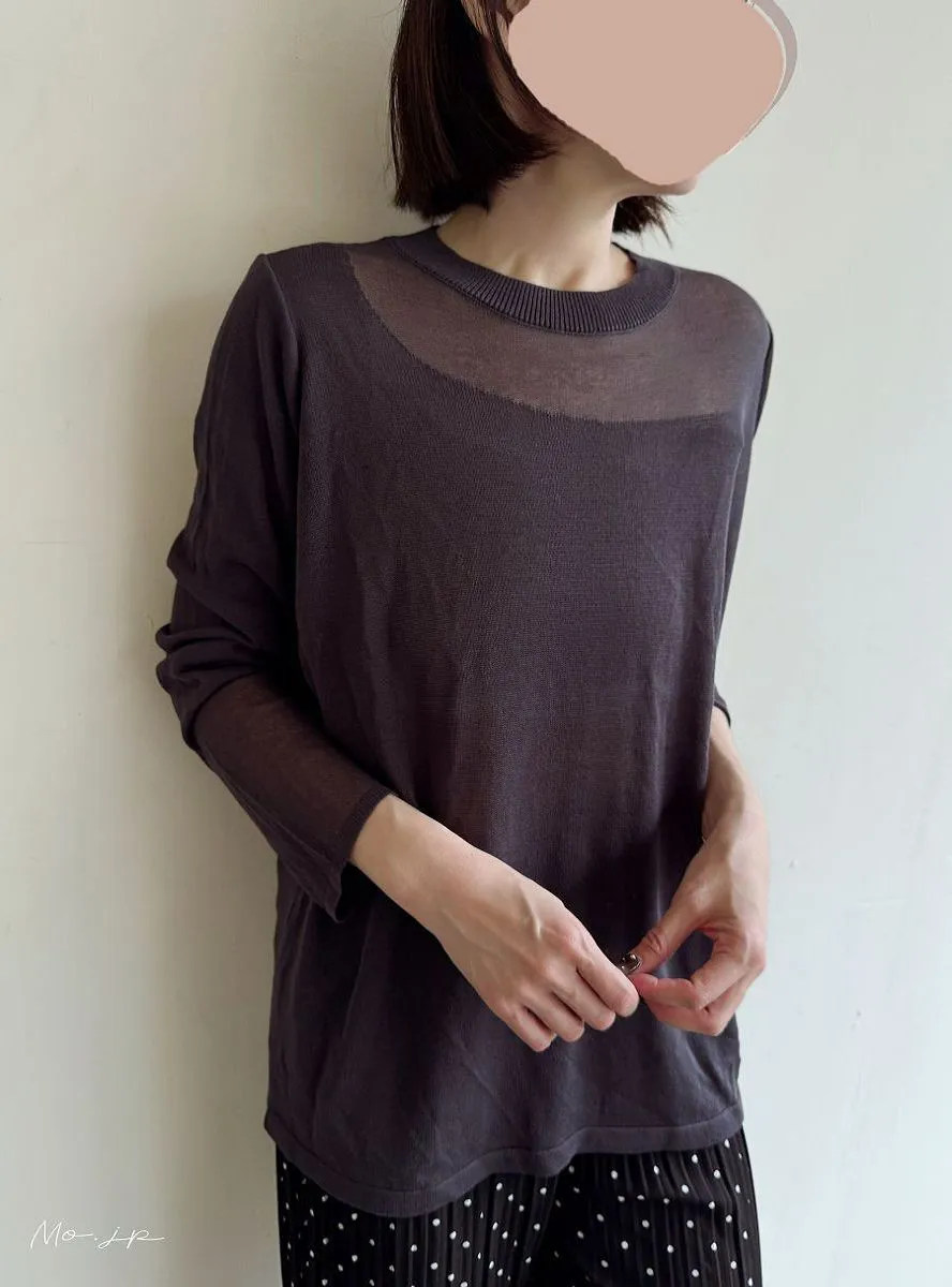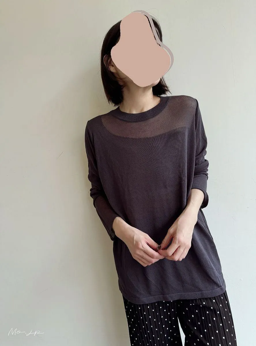 針織垂墜度很美~自然貼合肩線,打造直角肩效果<透感的部分讓鎖骨更美>