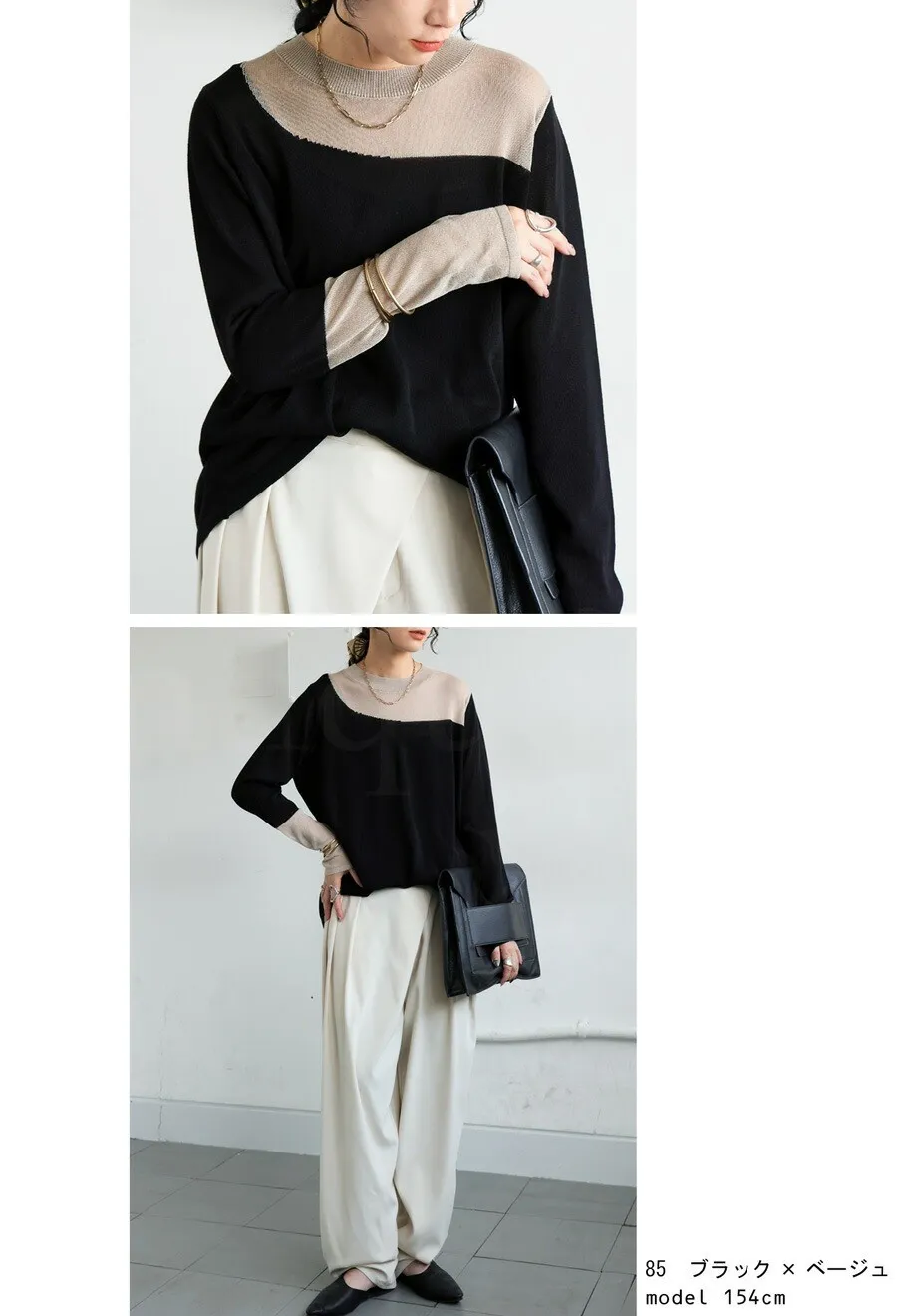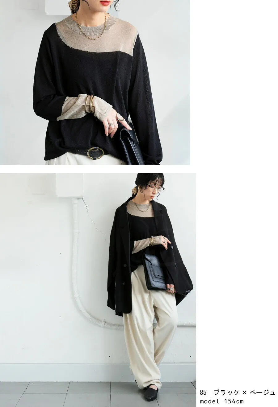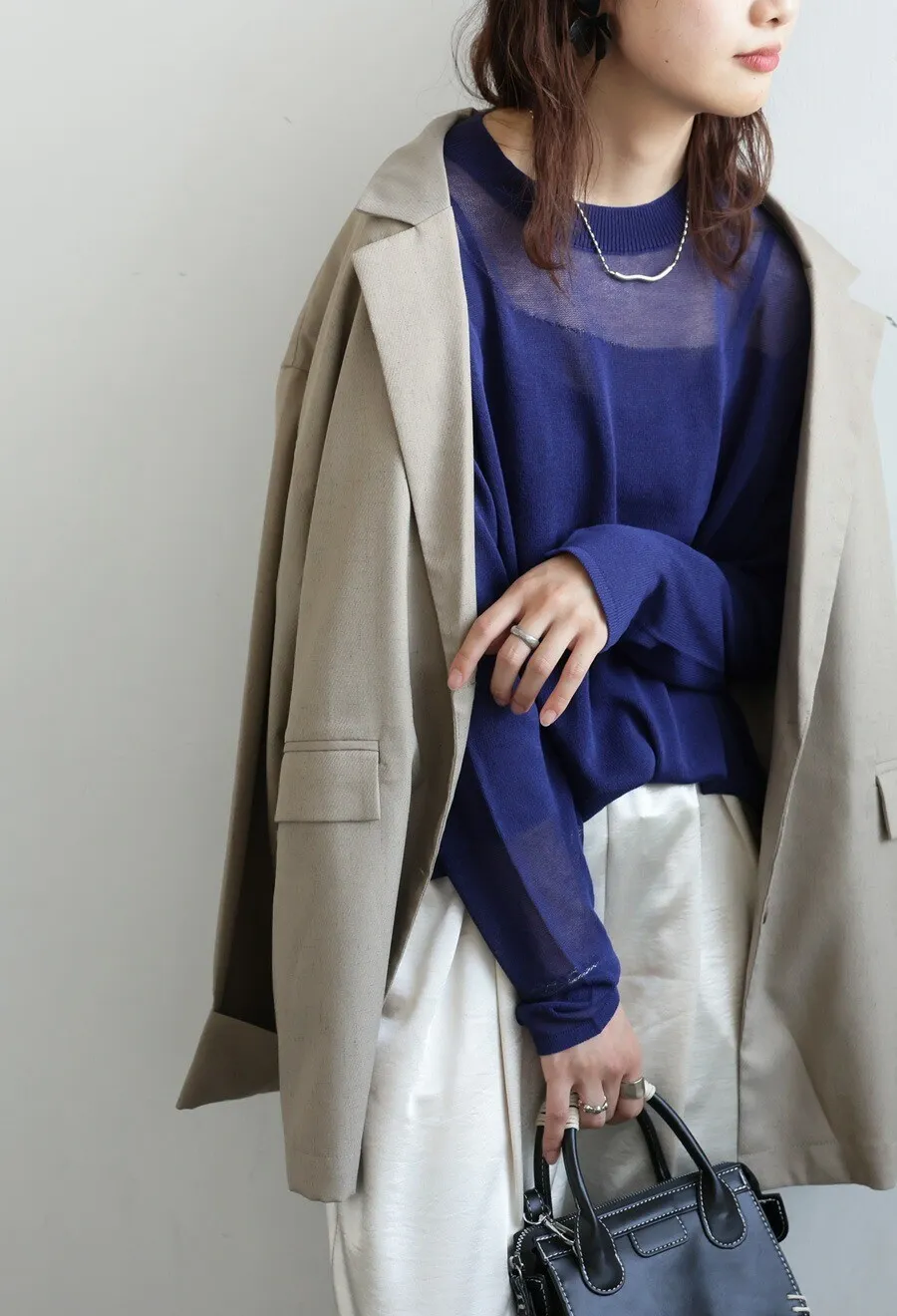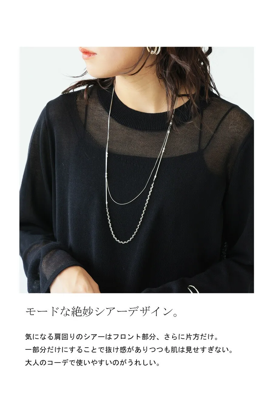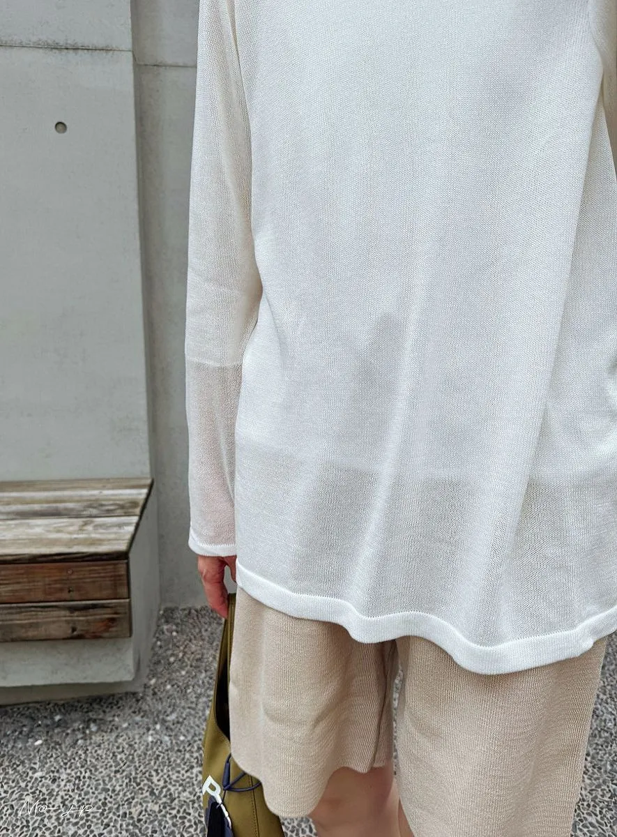 針織垂墜度很美~自然貼合肩線,打造直角肩效果<透感的部分讓鎖骨更美>