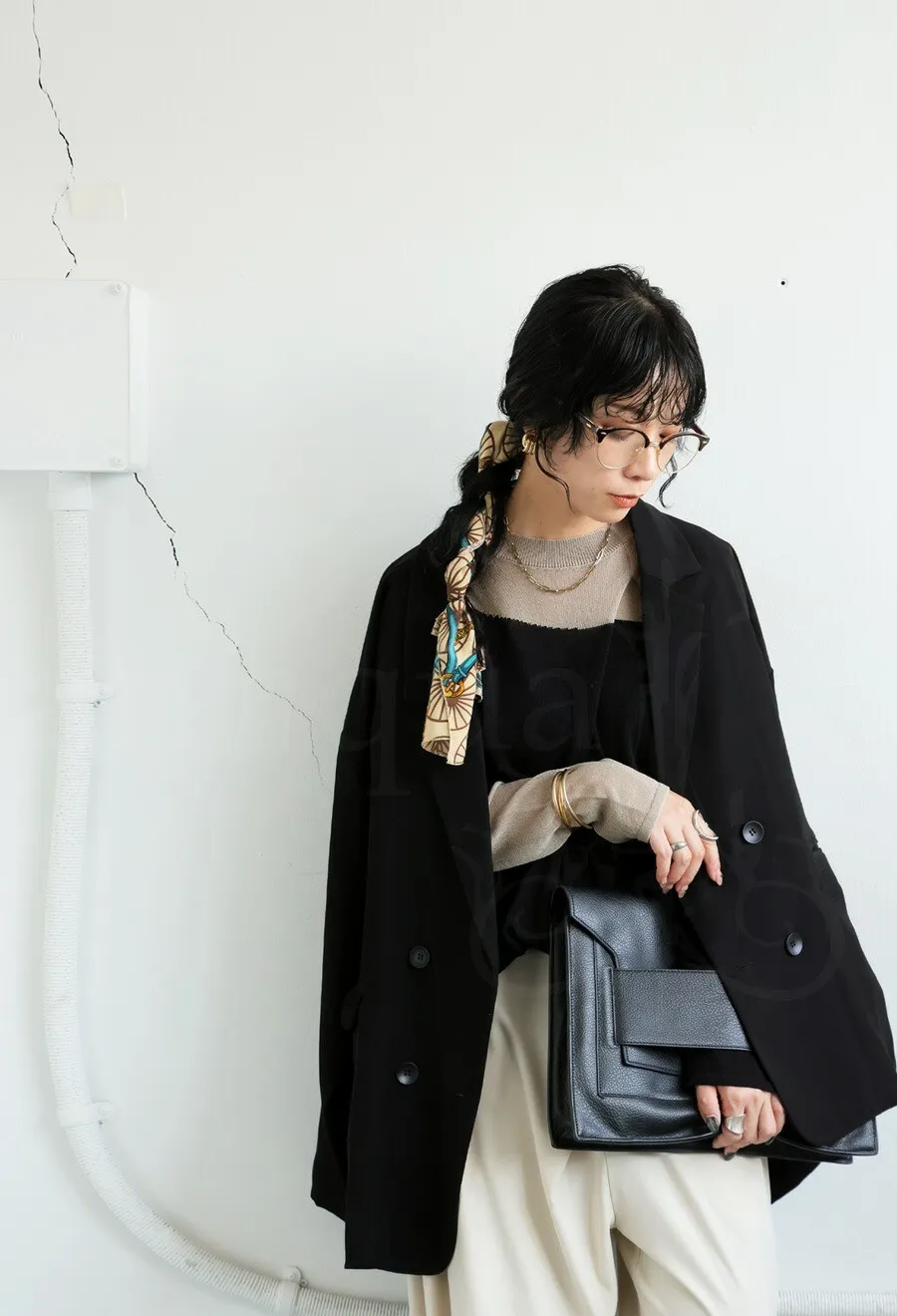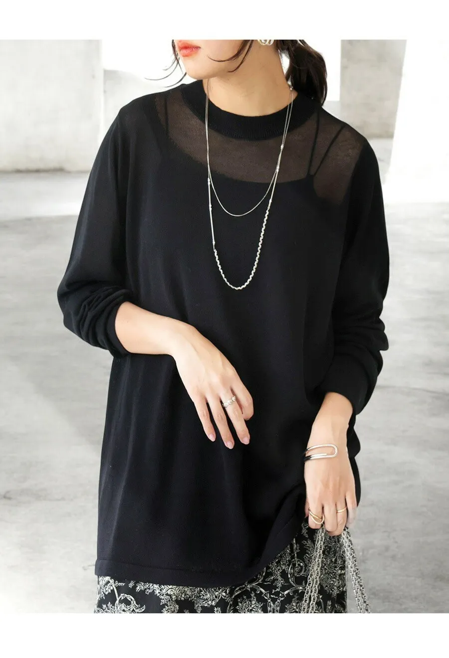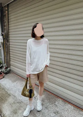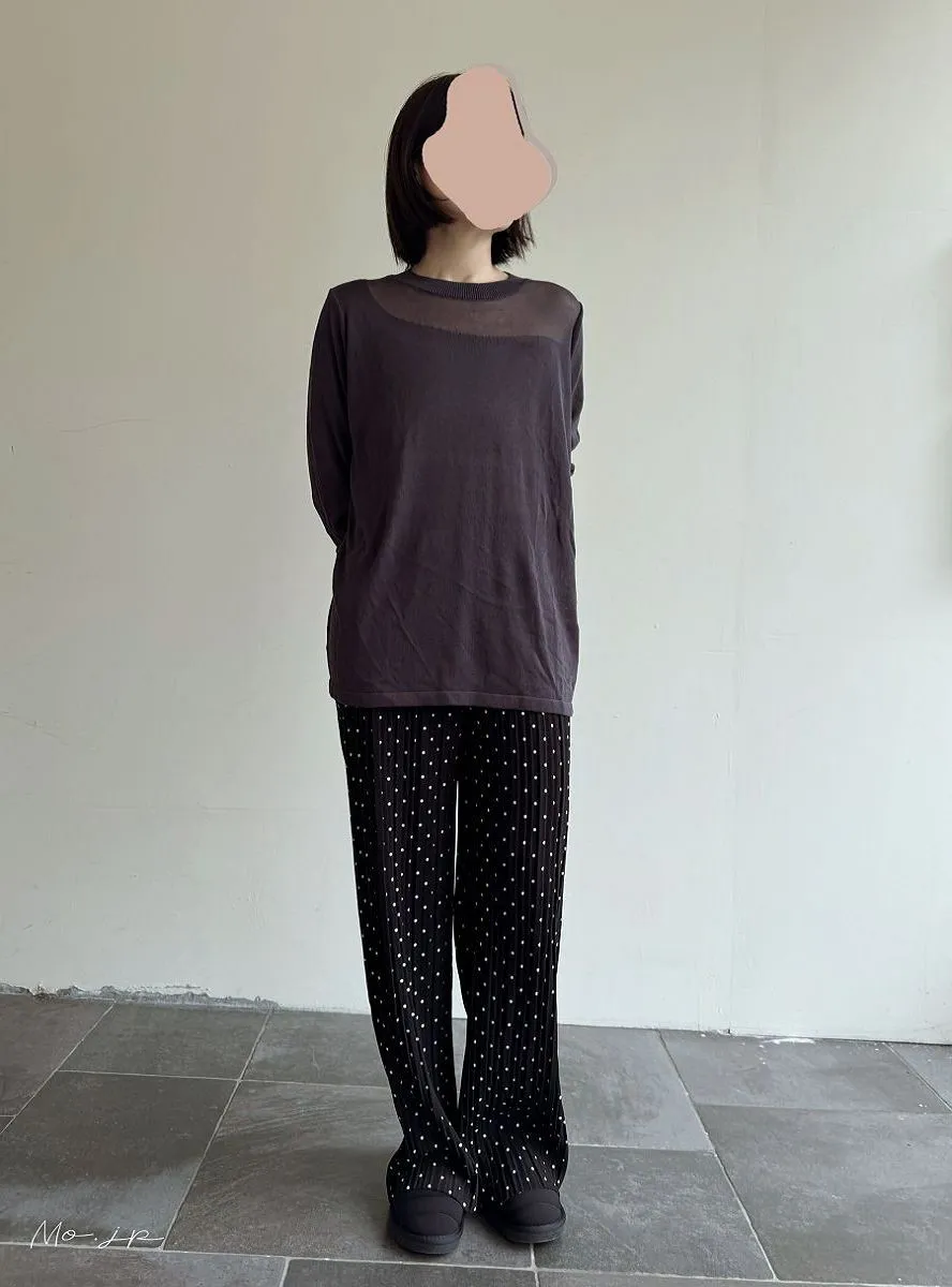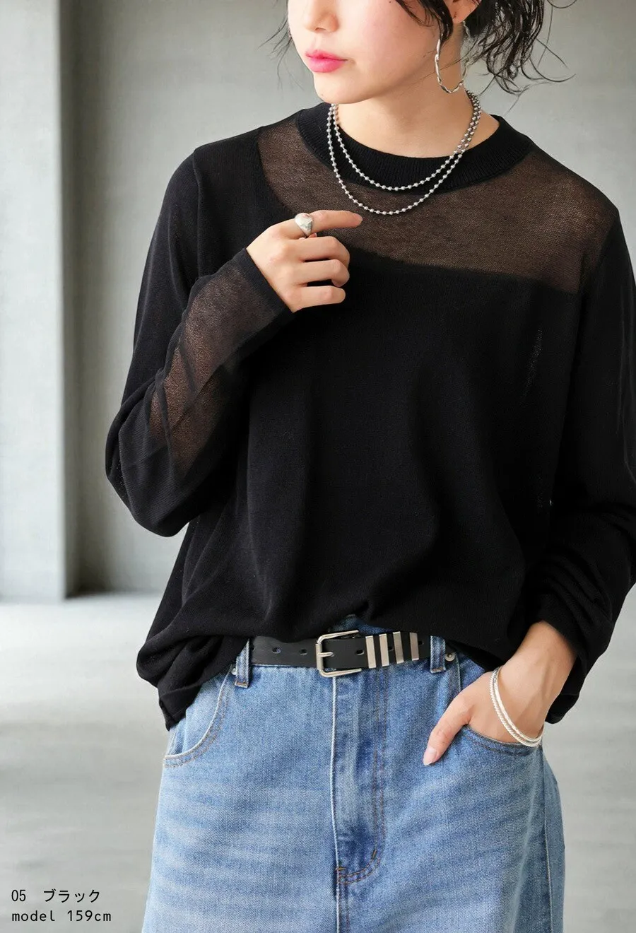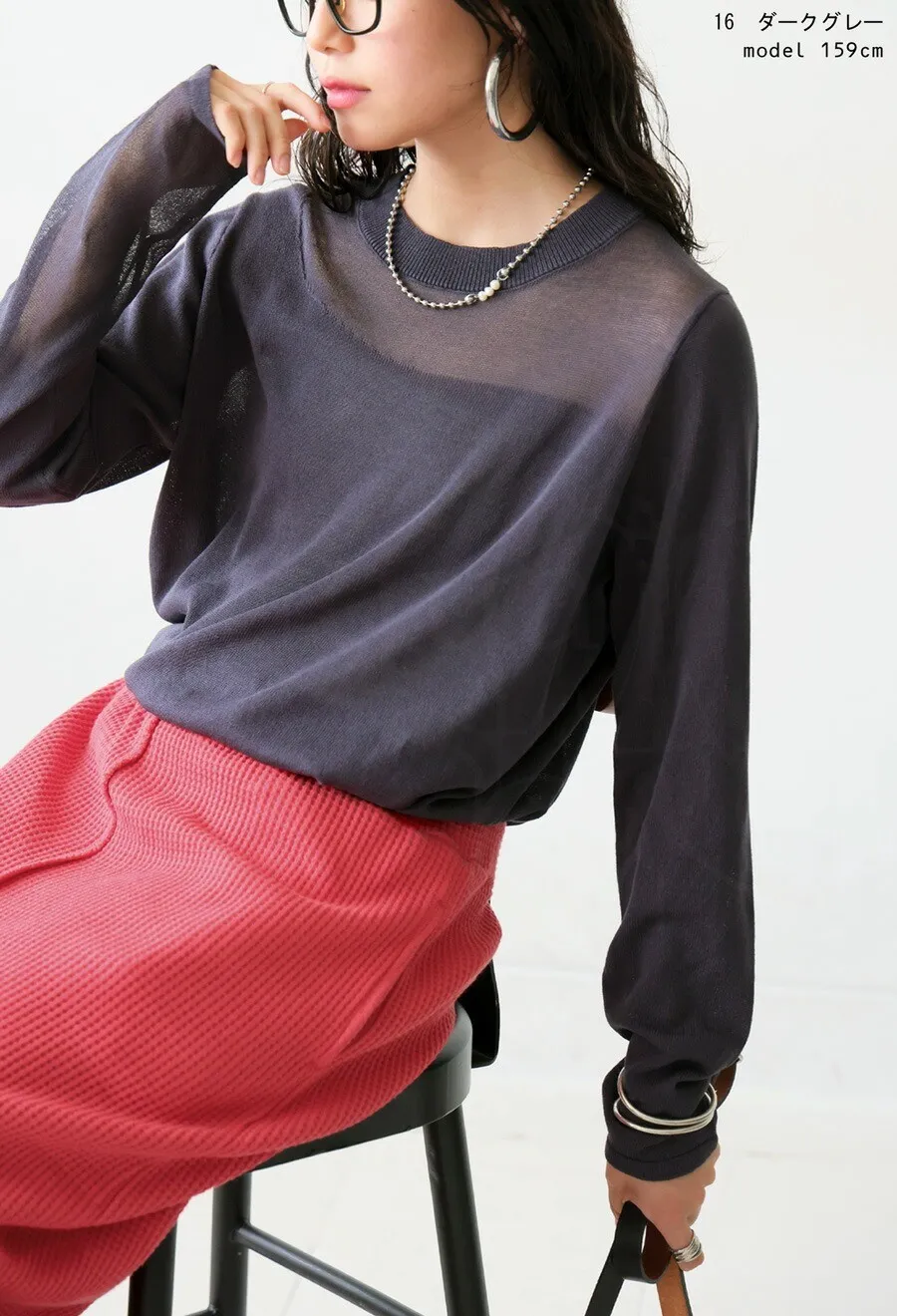 針織垂墜度很美~自然貼合肩線,打造直角肩效果<透感的部分讓鎖骨更美>