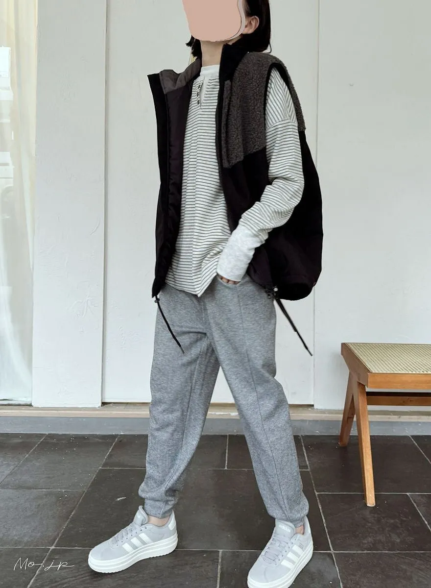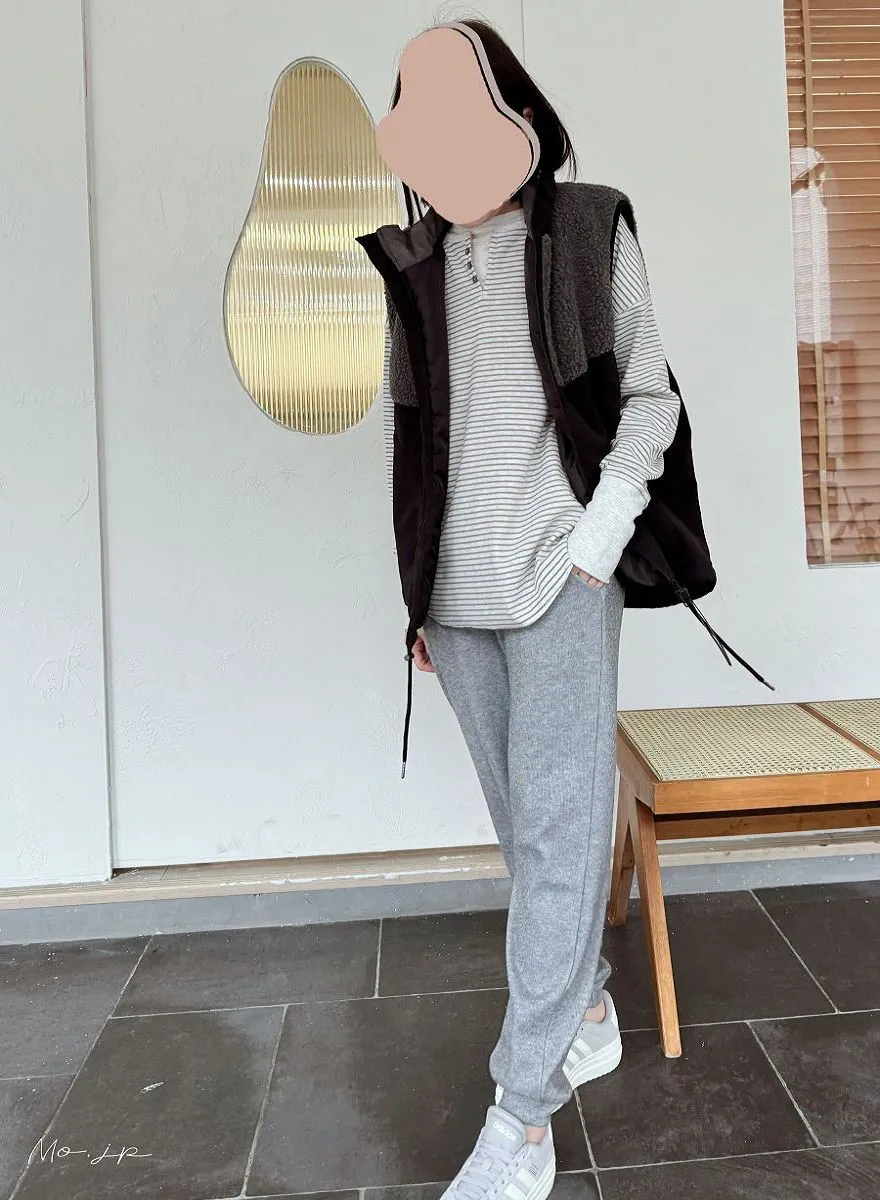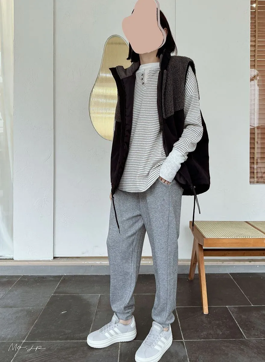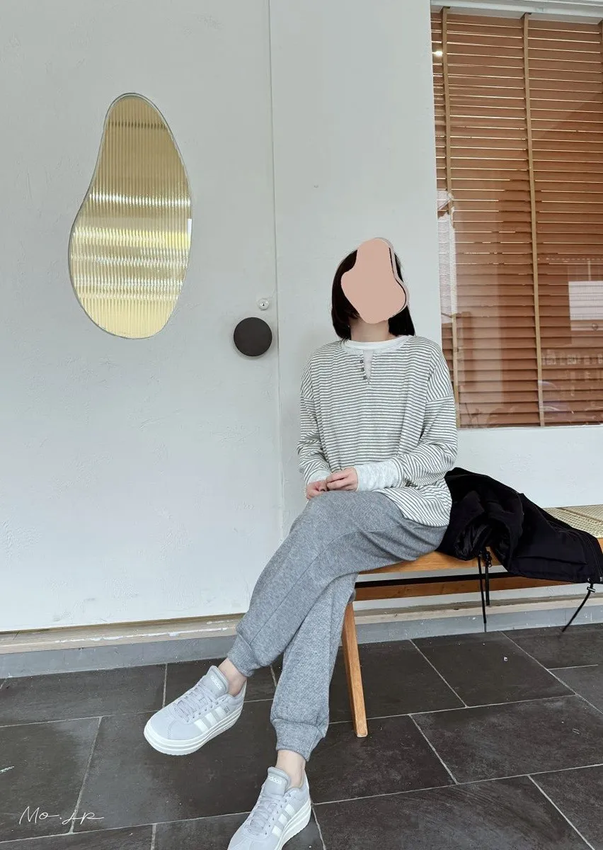另外再選了一個淺灰<我知道淺灰常常都不是熱門色>但自己搭配了條文+大外套~蠻喜歡的