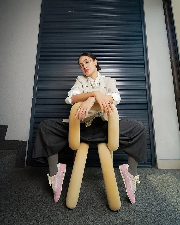 看MODEL穿搭粉紅色+奶油西外也爆炸好看