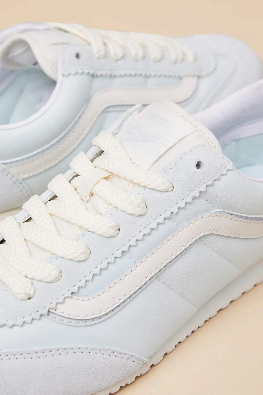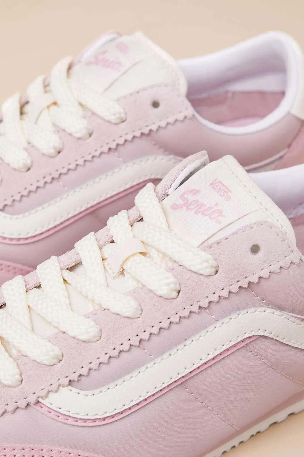 復古細節無所不在,包括 Zig Zag 鞋眼、T-Toe 結構、傳統穿孔設計以及鞋舌上的「Vans Serio」標識,