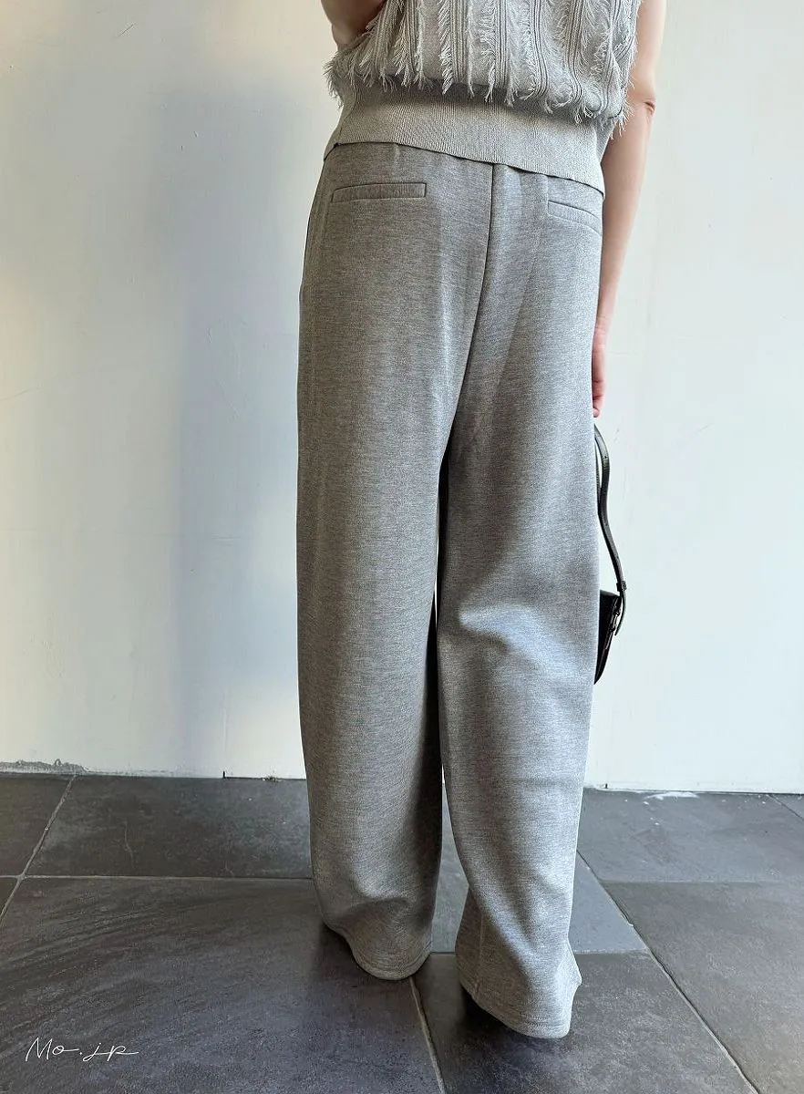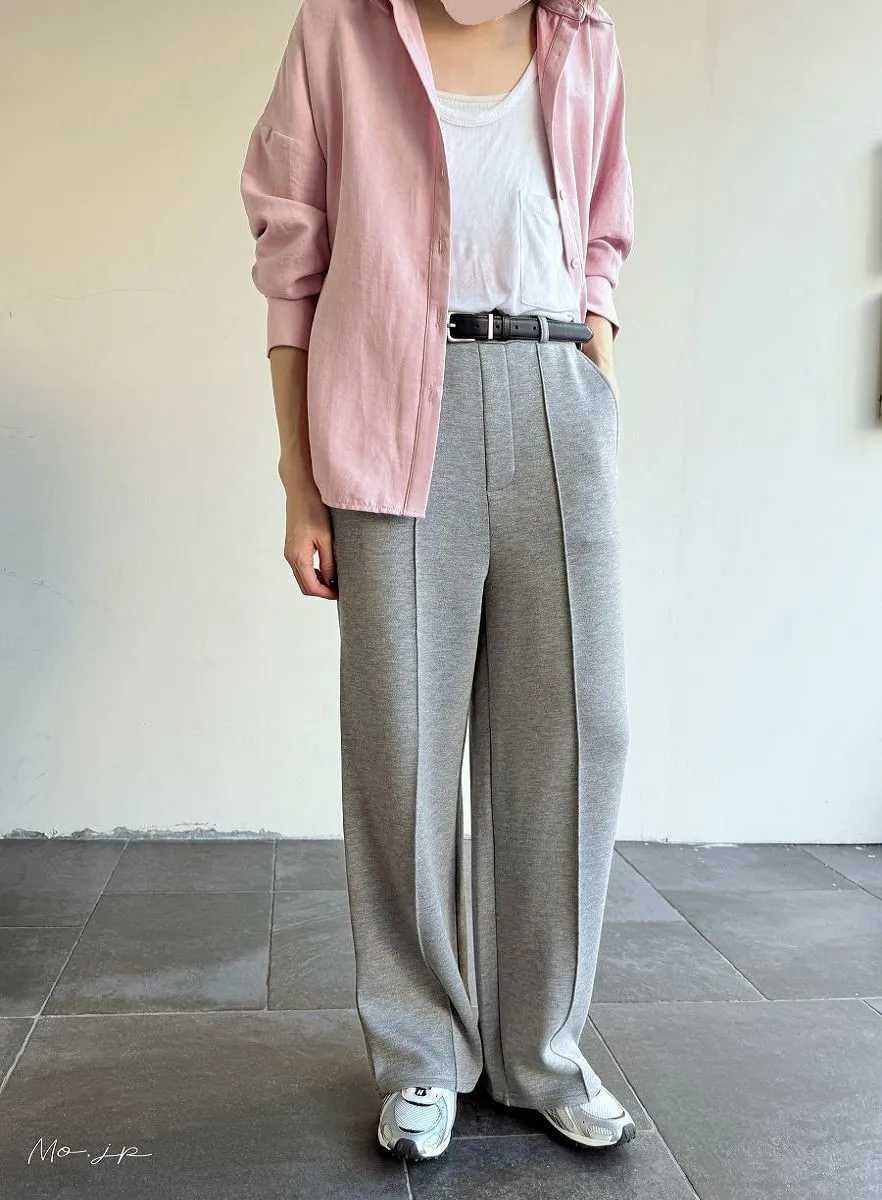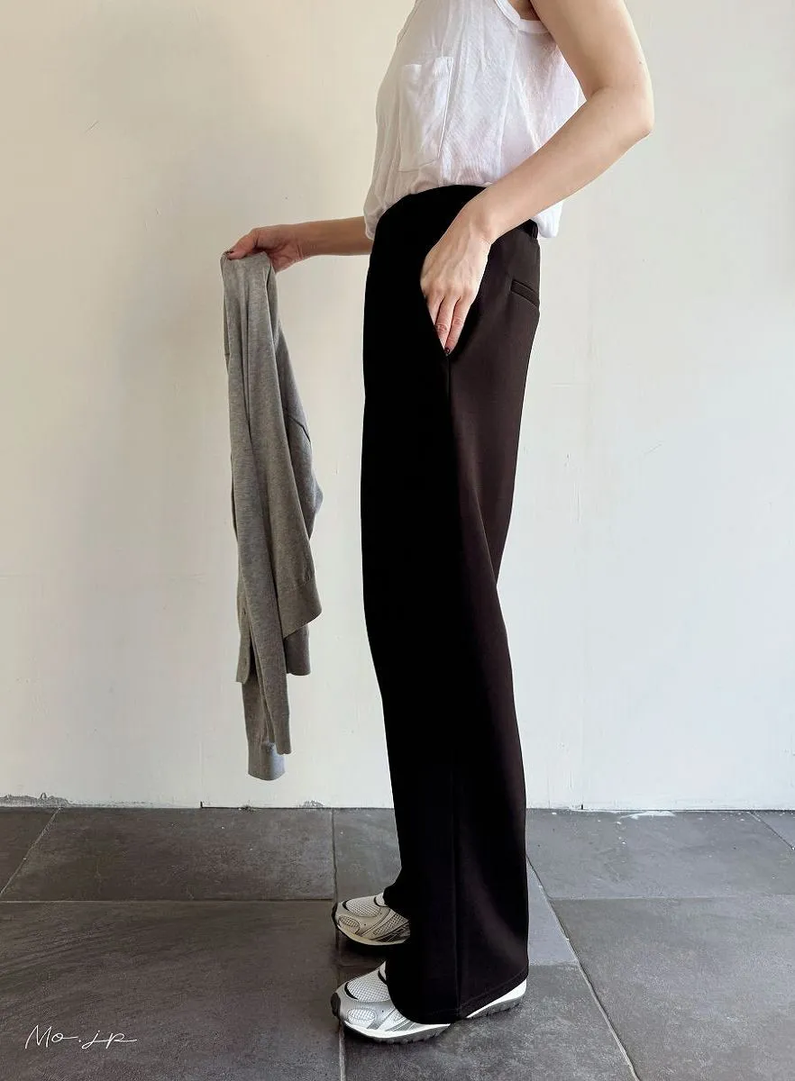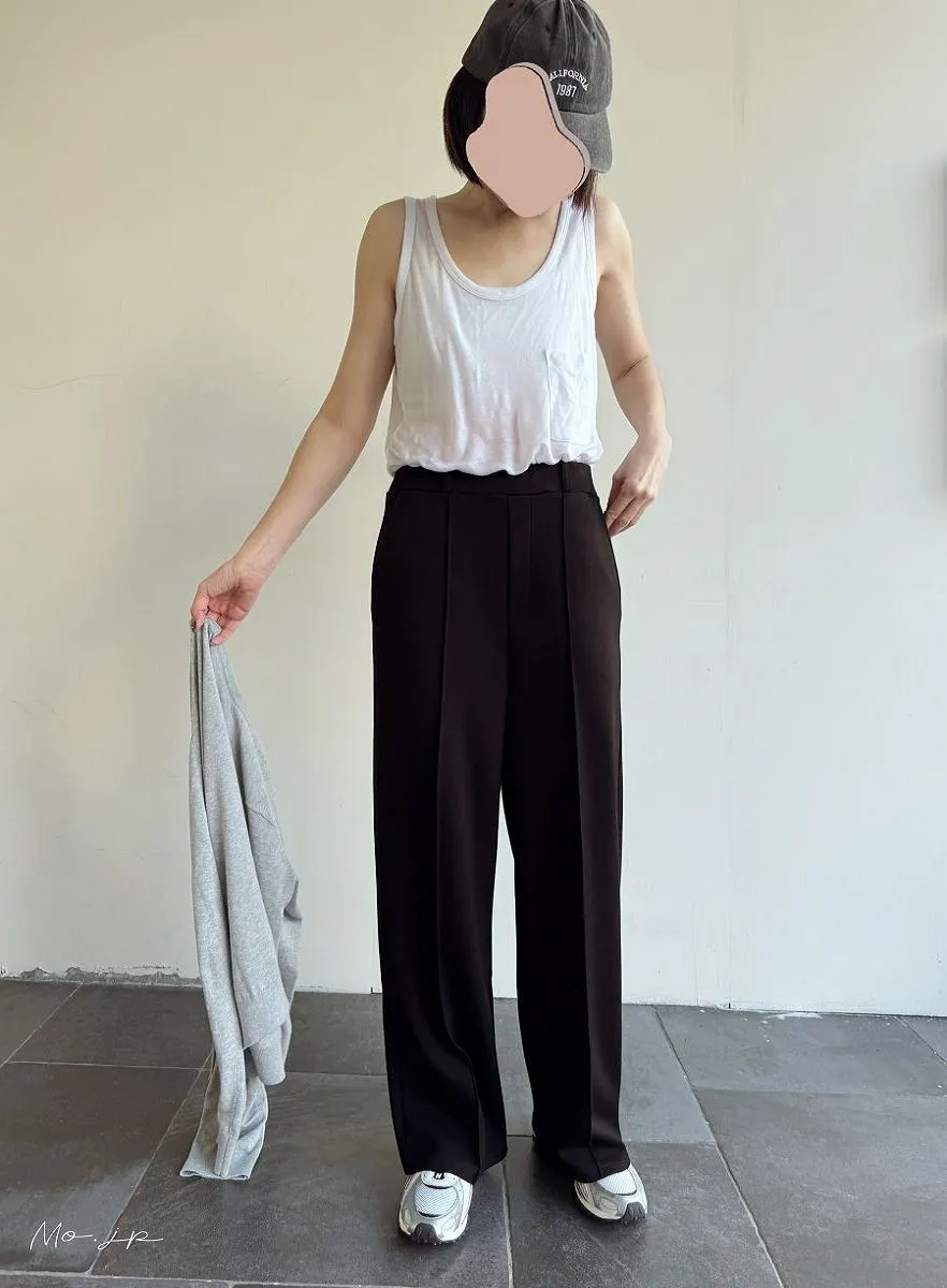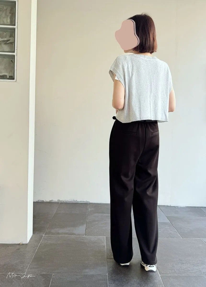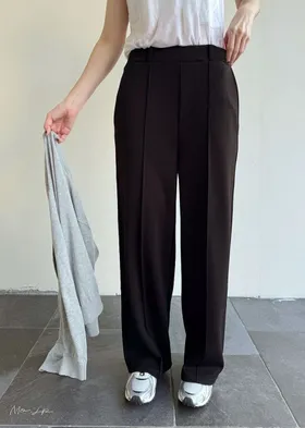 微寬直筒西褲版型+後鬆緊腰頭設計--身形好駕馭