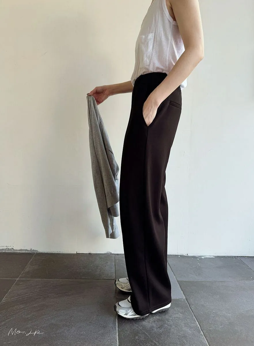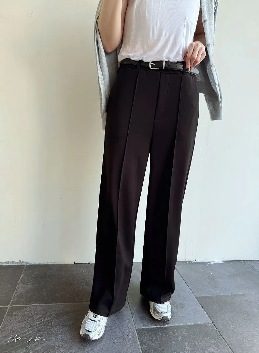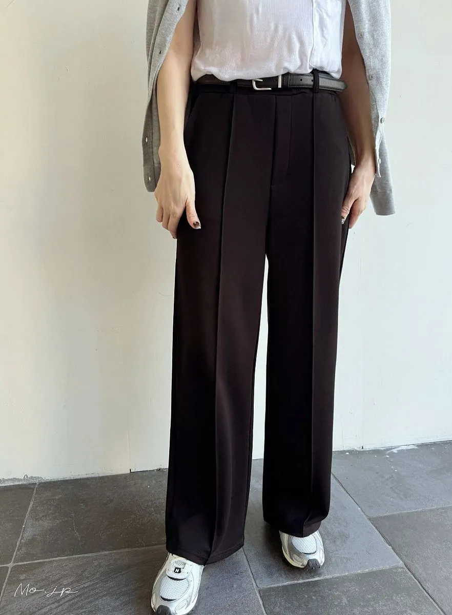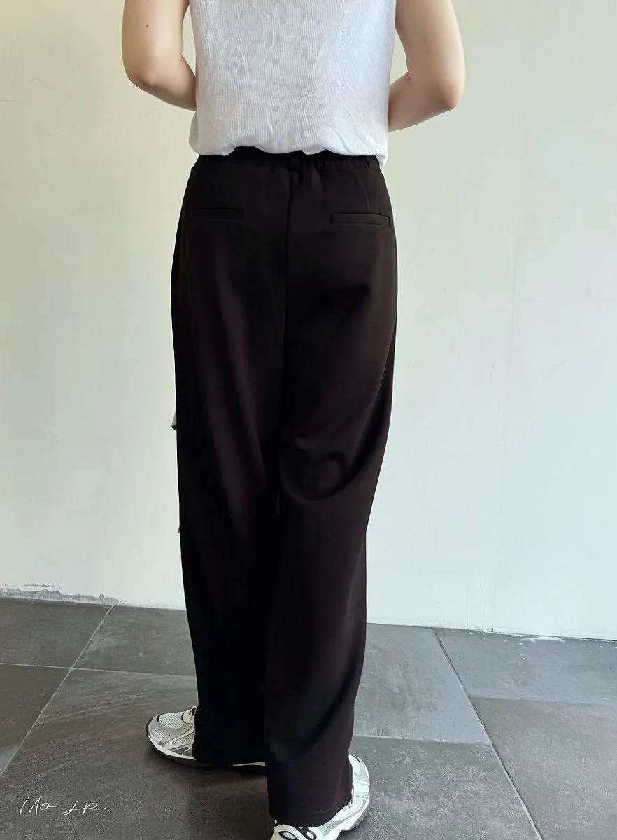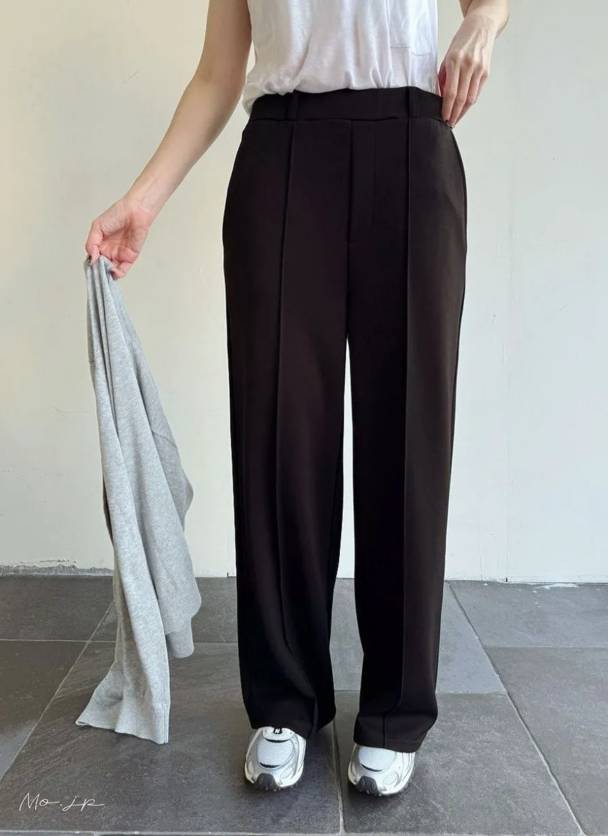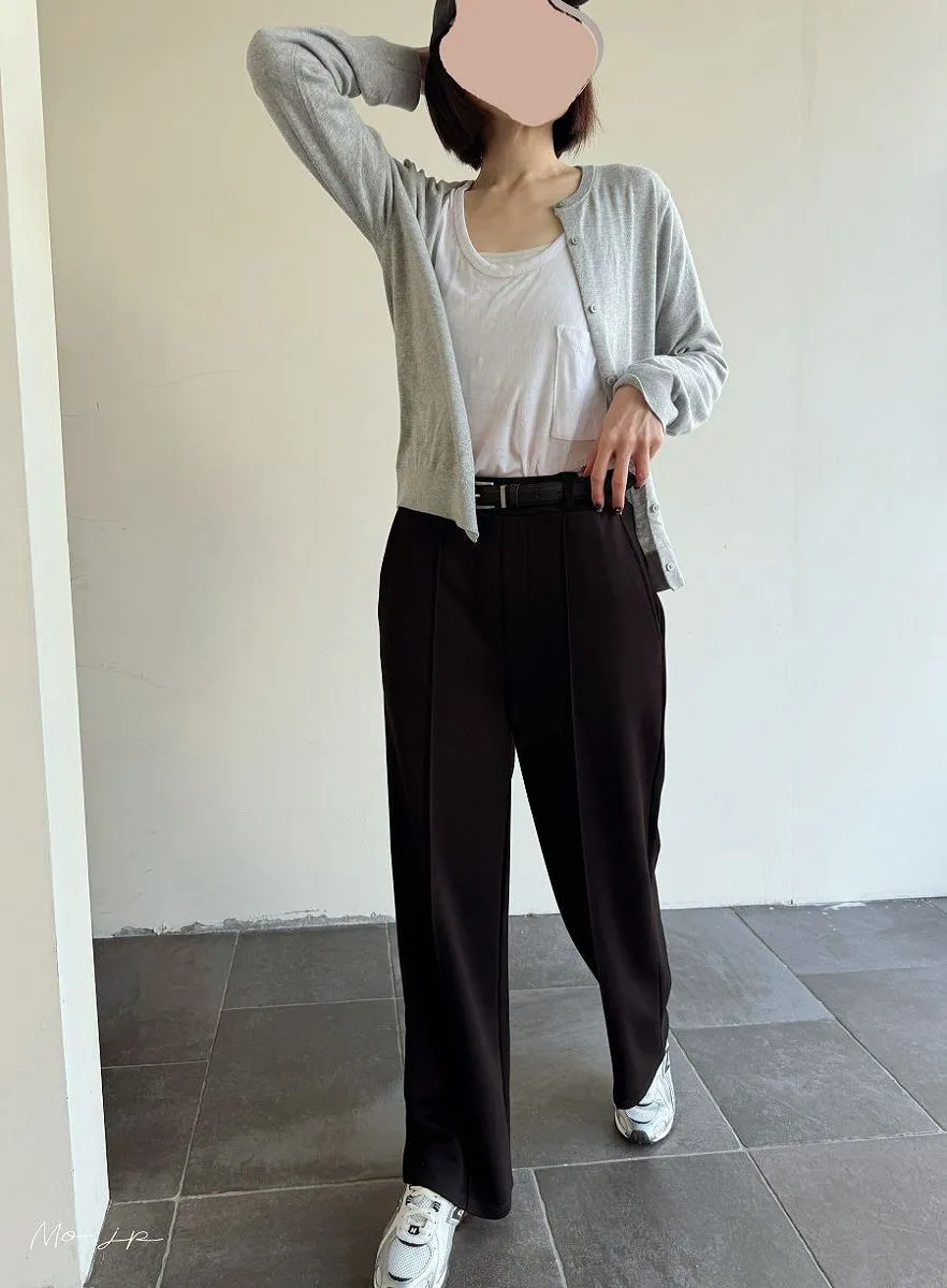 微寬直筒西褲版型+後鬆緊腰頭設計--身形好駕馭