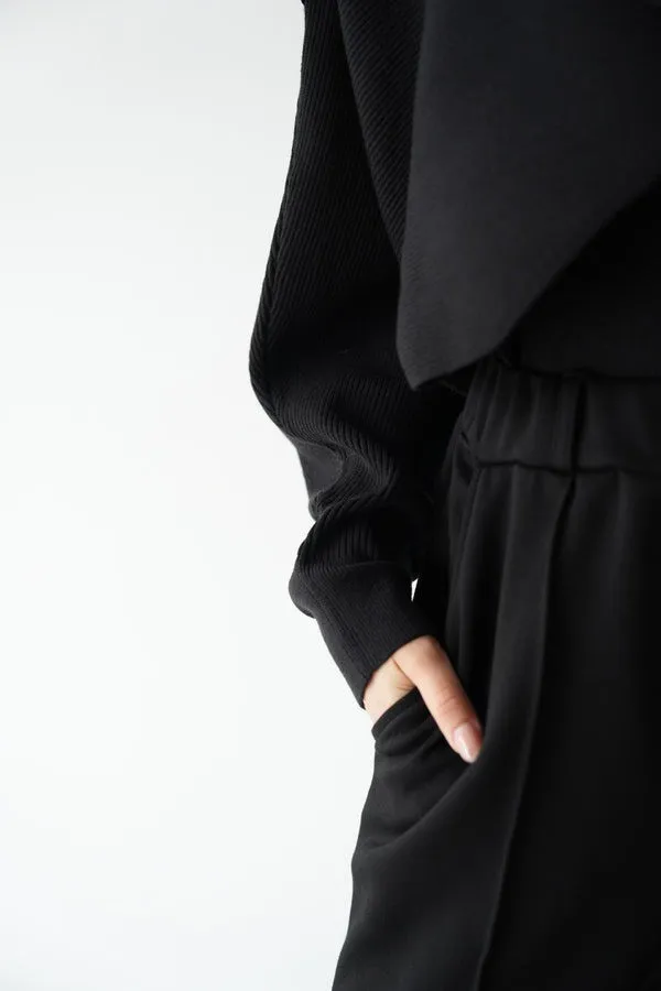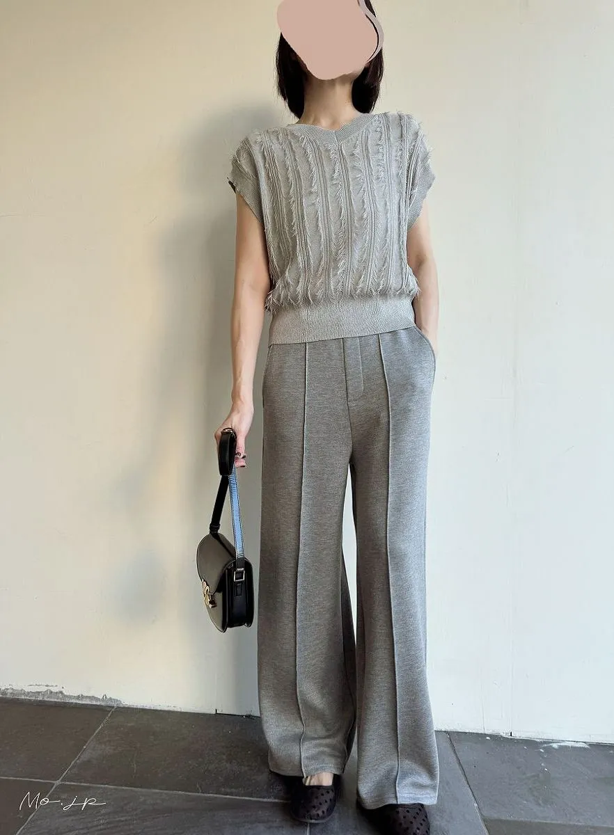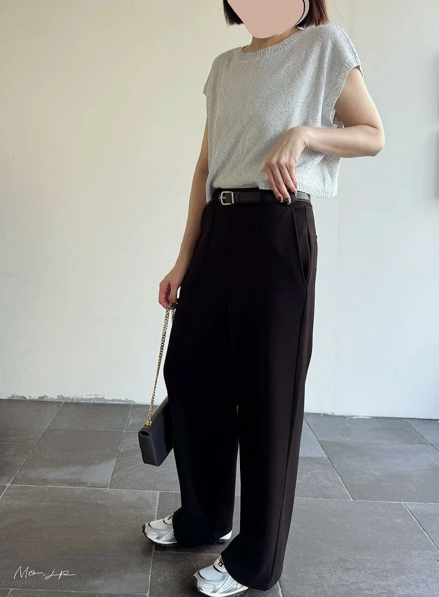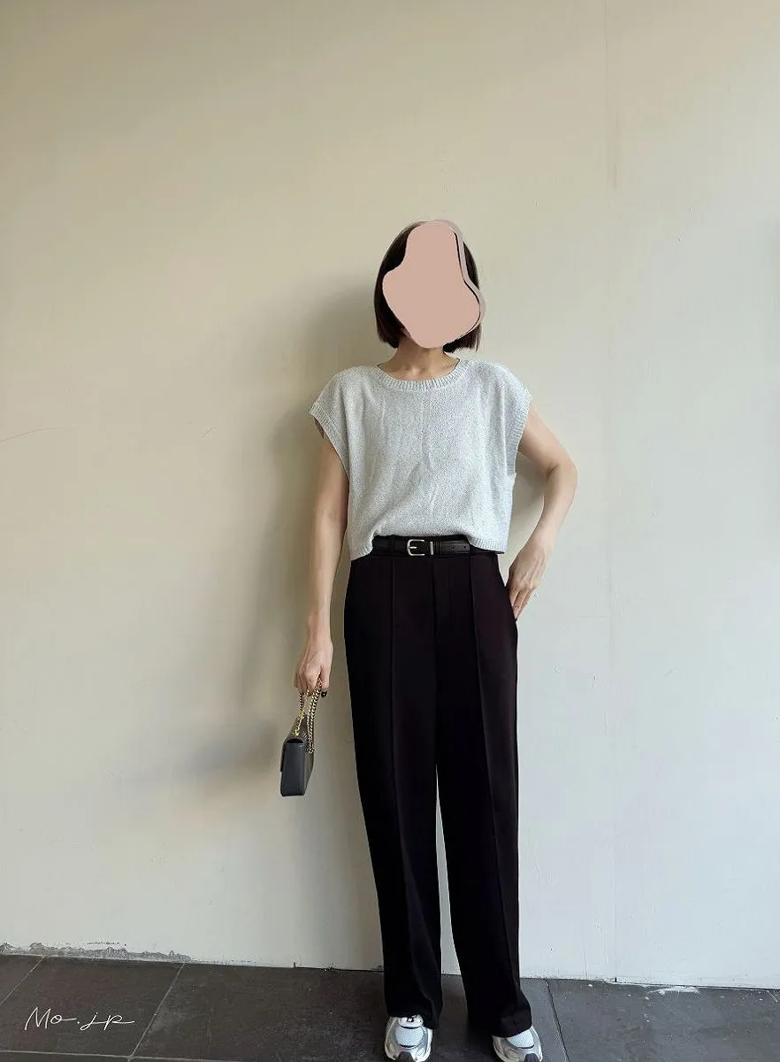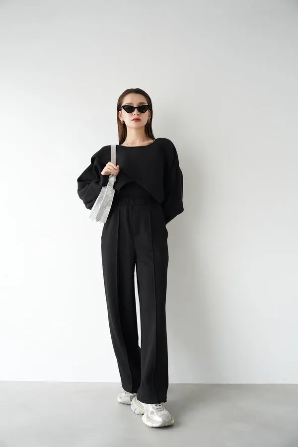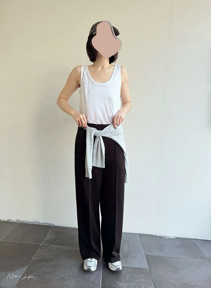 微寬直筒西褲版型+後鬆緊腰頭設計--身形好駕馭