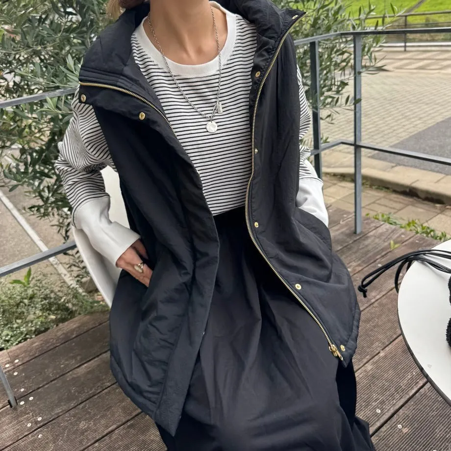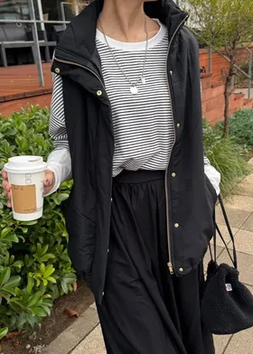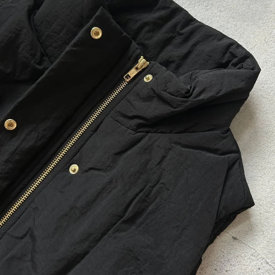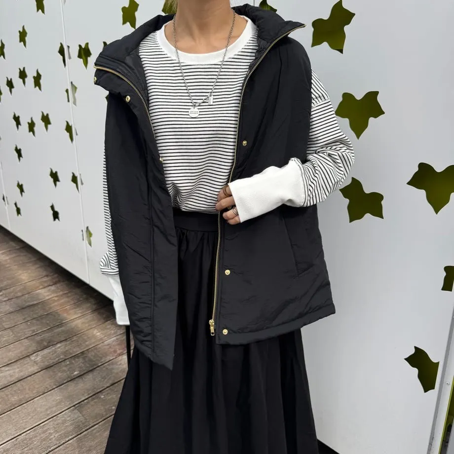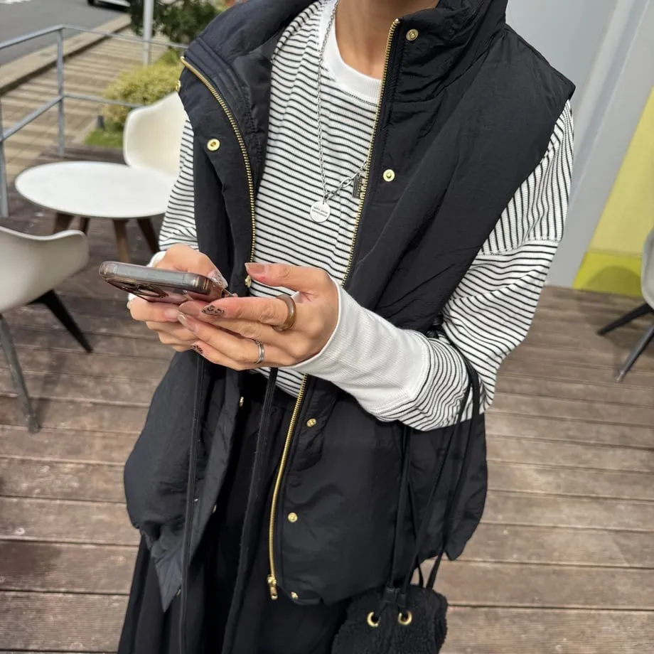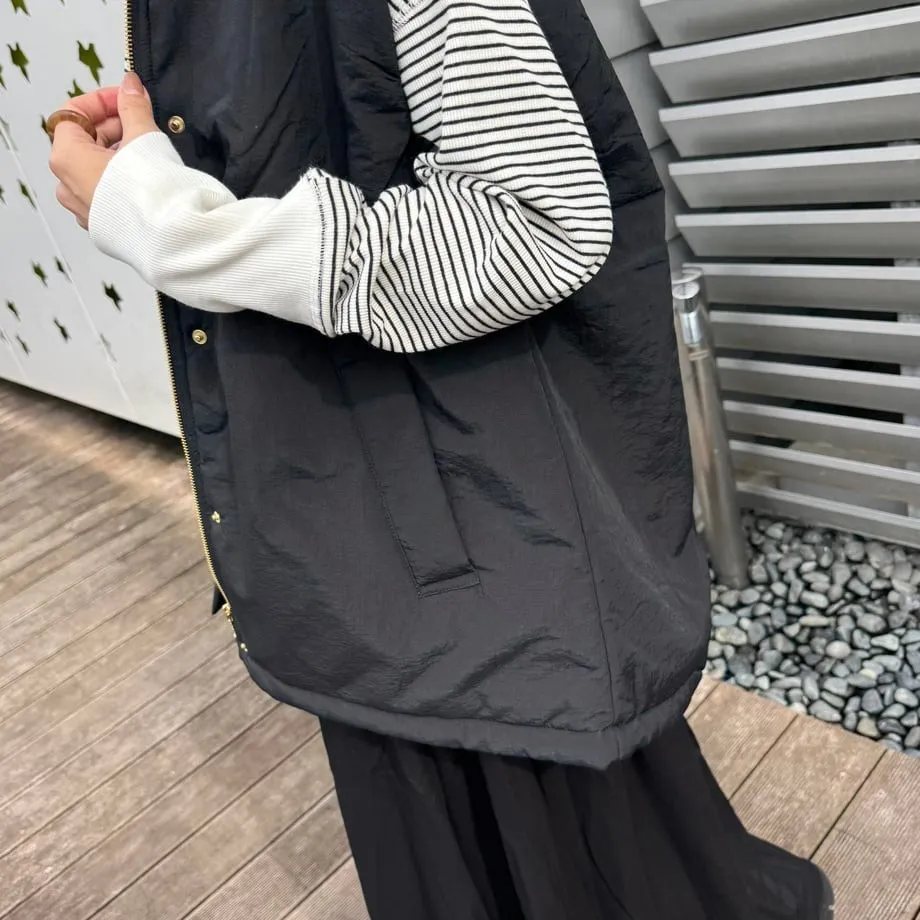 壓釦+拉鍊雙設計~一件很休閒又有質感的背心喔