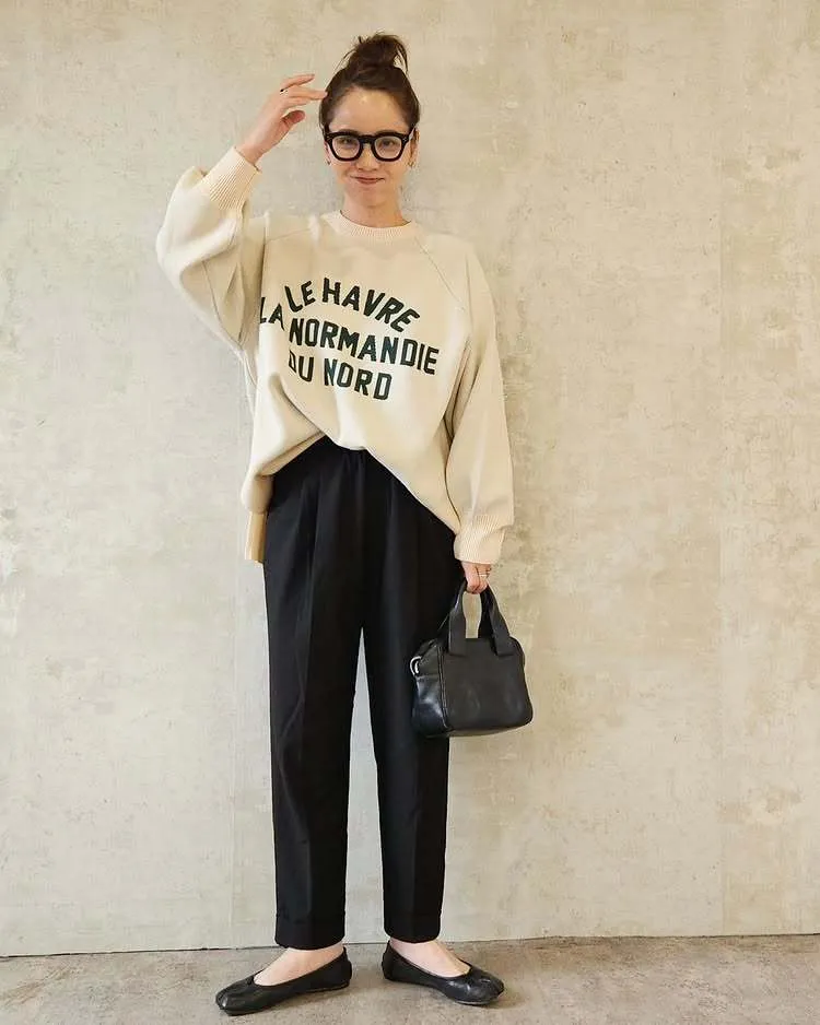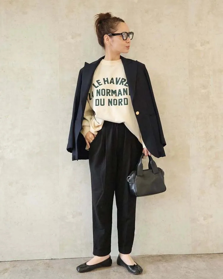 穿搭的話,搭配黑色寬褲+小白鞋就很有法式休閒感,