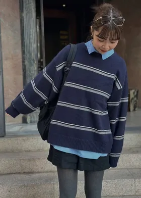 剛剛販售~好可愛的男孩風休閒款條文軟Q毛衣