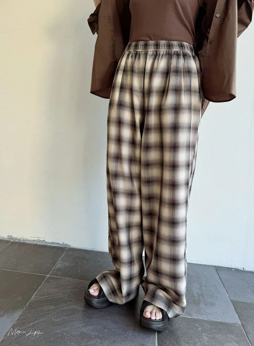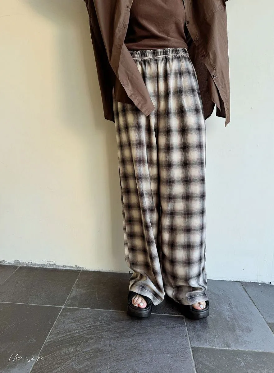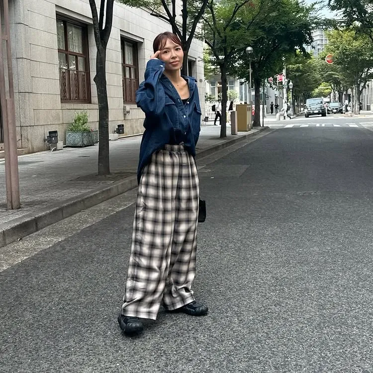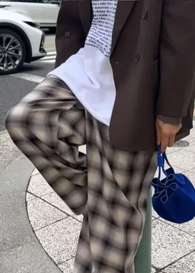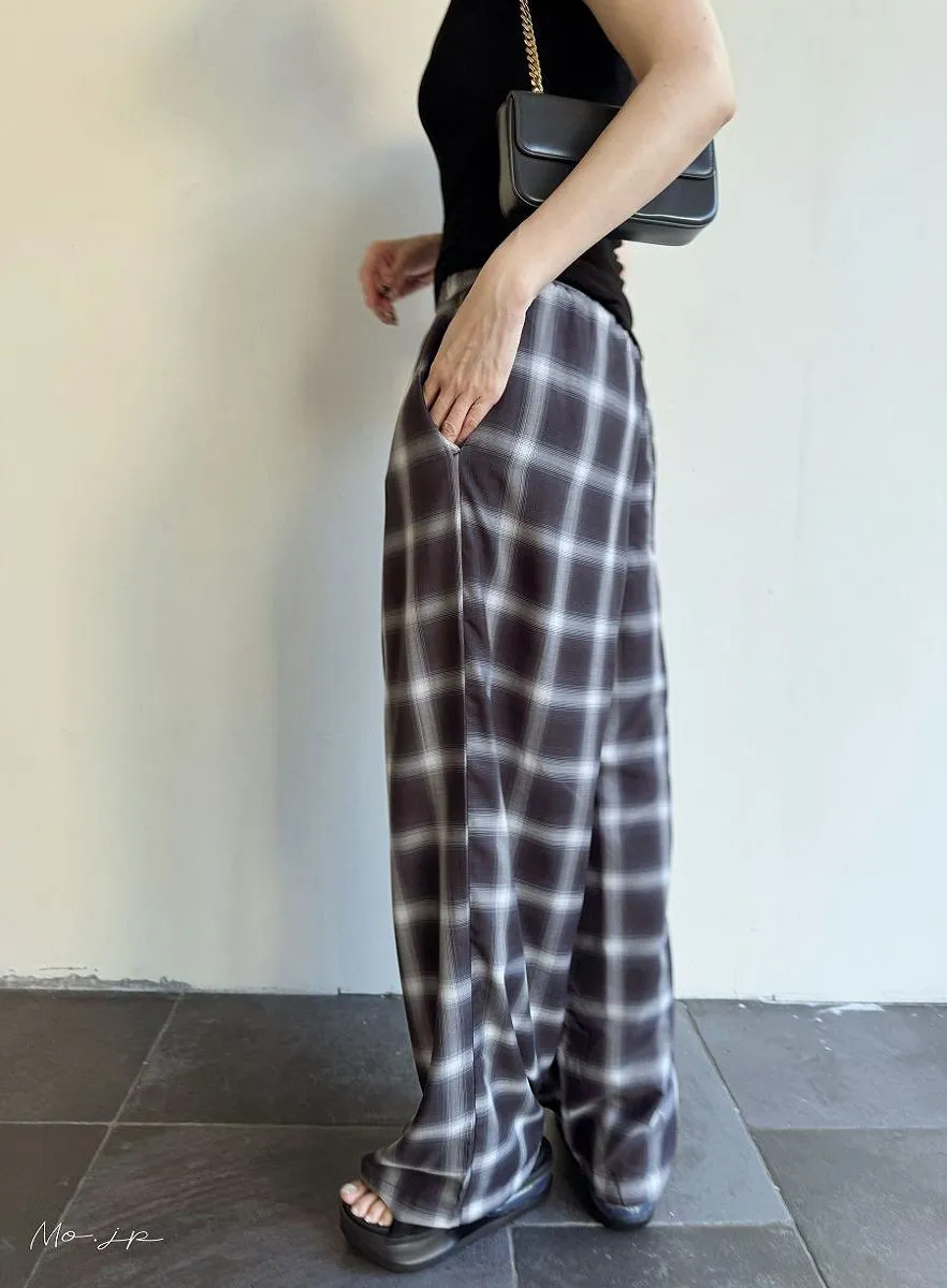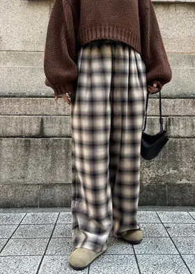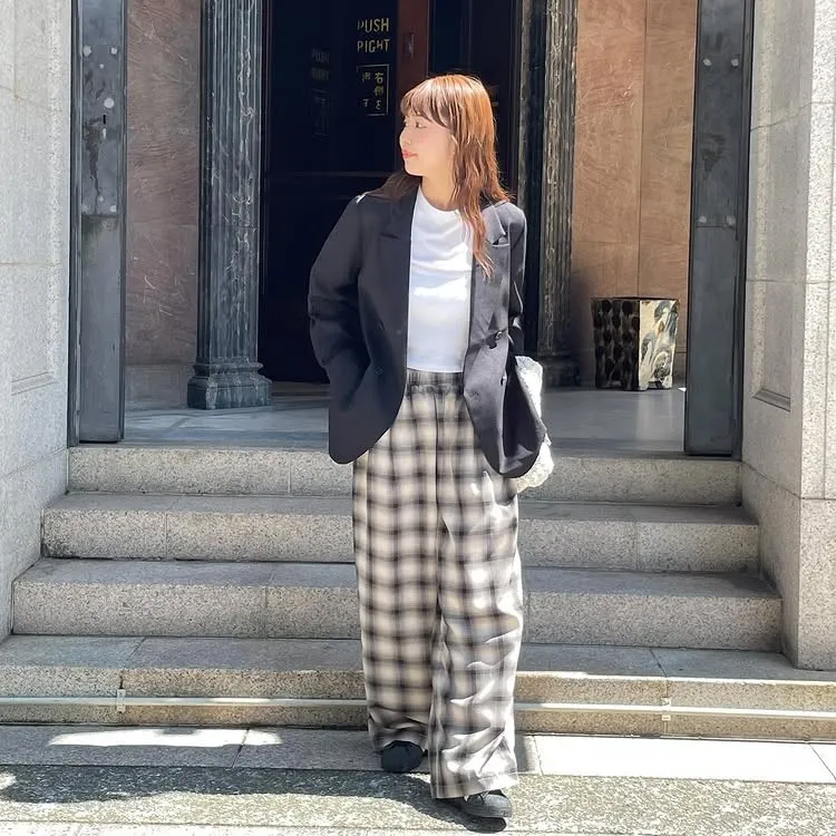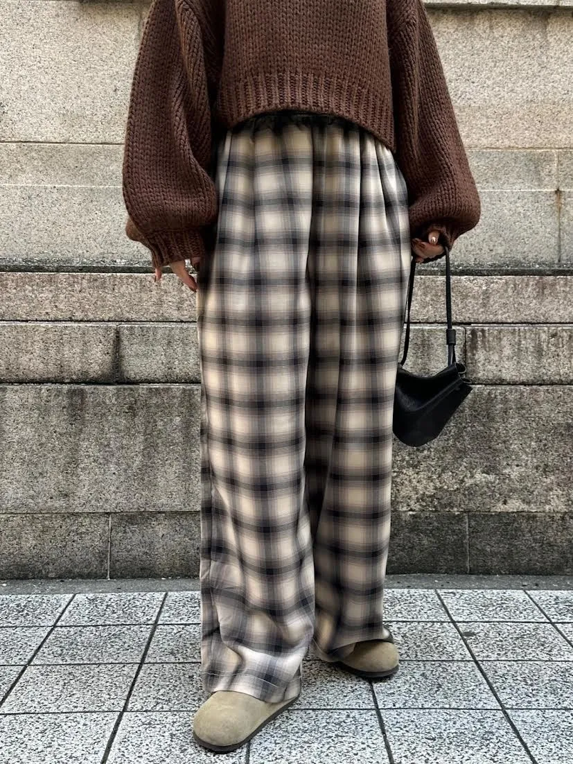 四季都可以穿搭的格紋寬褲喔來囉^^