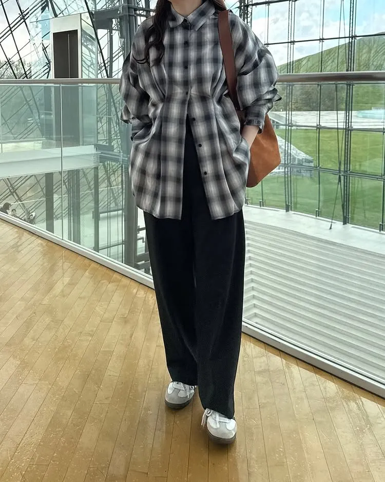 素面的白色/小小暈染格紋也都非常好看喔