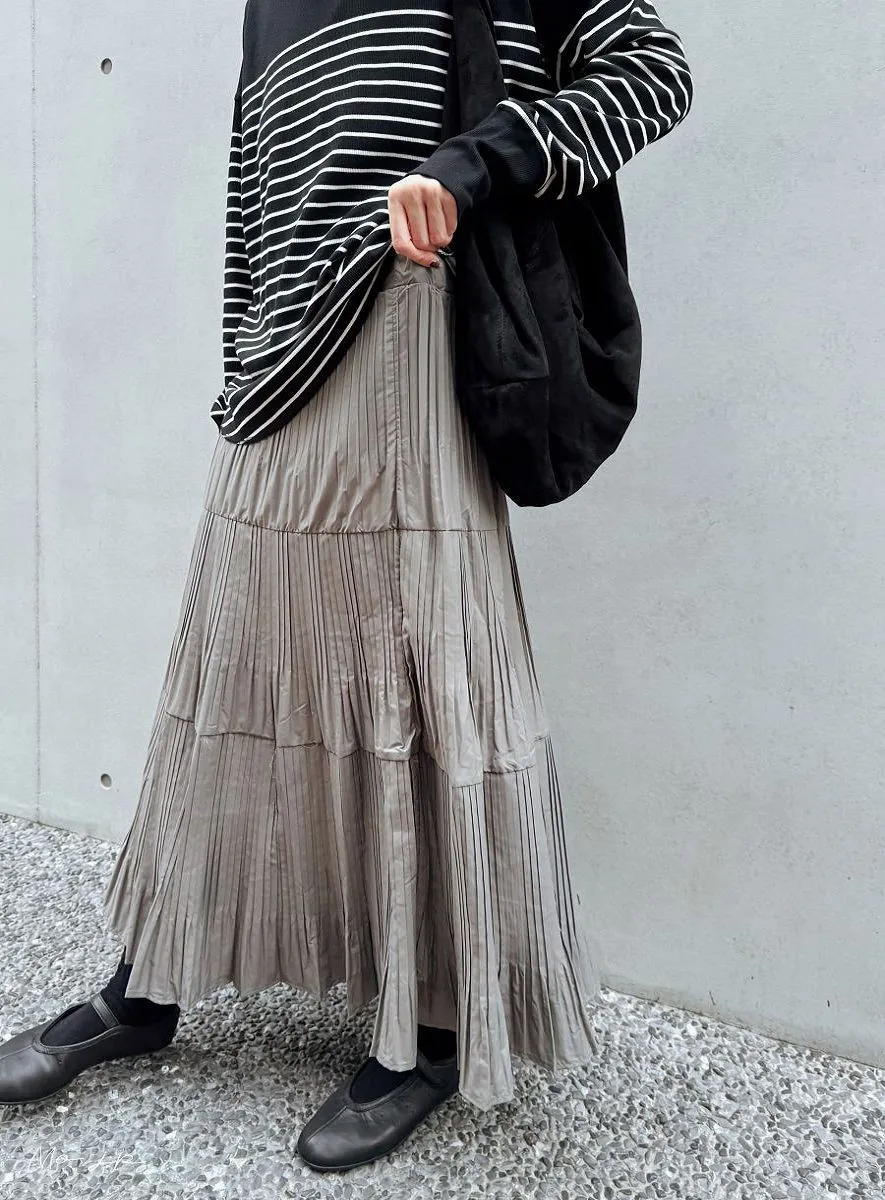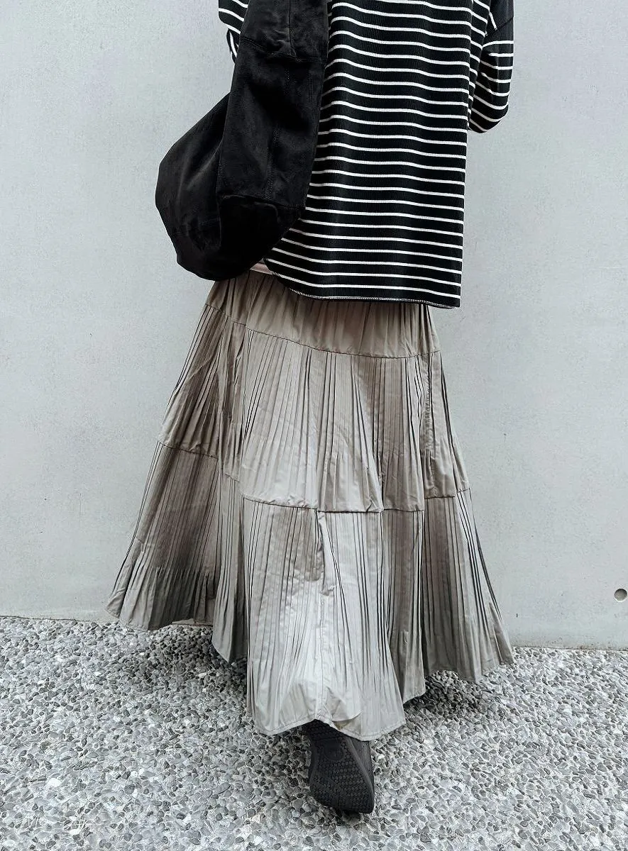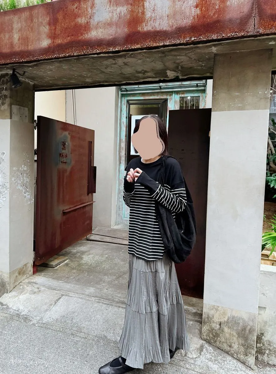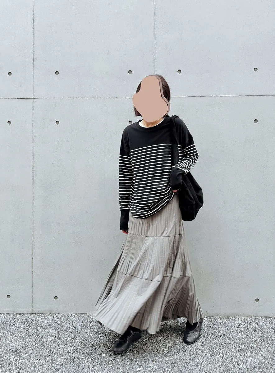 這款是品牌推出的壓紋百折款它的百褶是直接服貼在裙子上面的腰部鬆緊~好穿裙襬的弧度也很順身自然顏色是低調的灰軍綠喔~秋天非常適合面料不會過厚重4季都可以穿搭的面料有內裡可以單穿.無口袋小幫<164CM>穿搭心得嬌小女孩推薦這款喔小幫自己穿搭的時候覺得還可以在長一點點搭配時穿在比較低腰的位置喔舒服順身