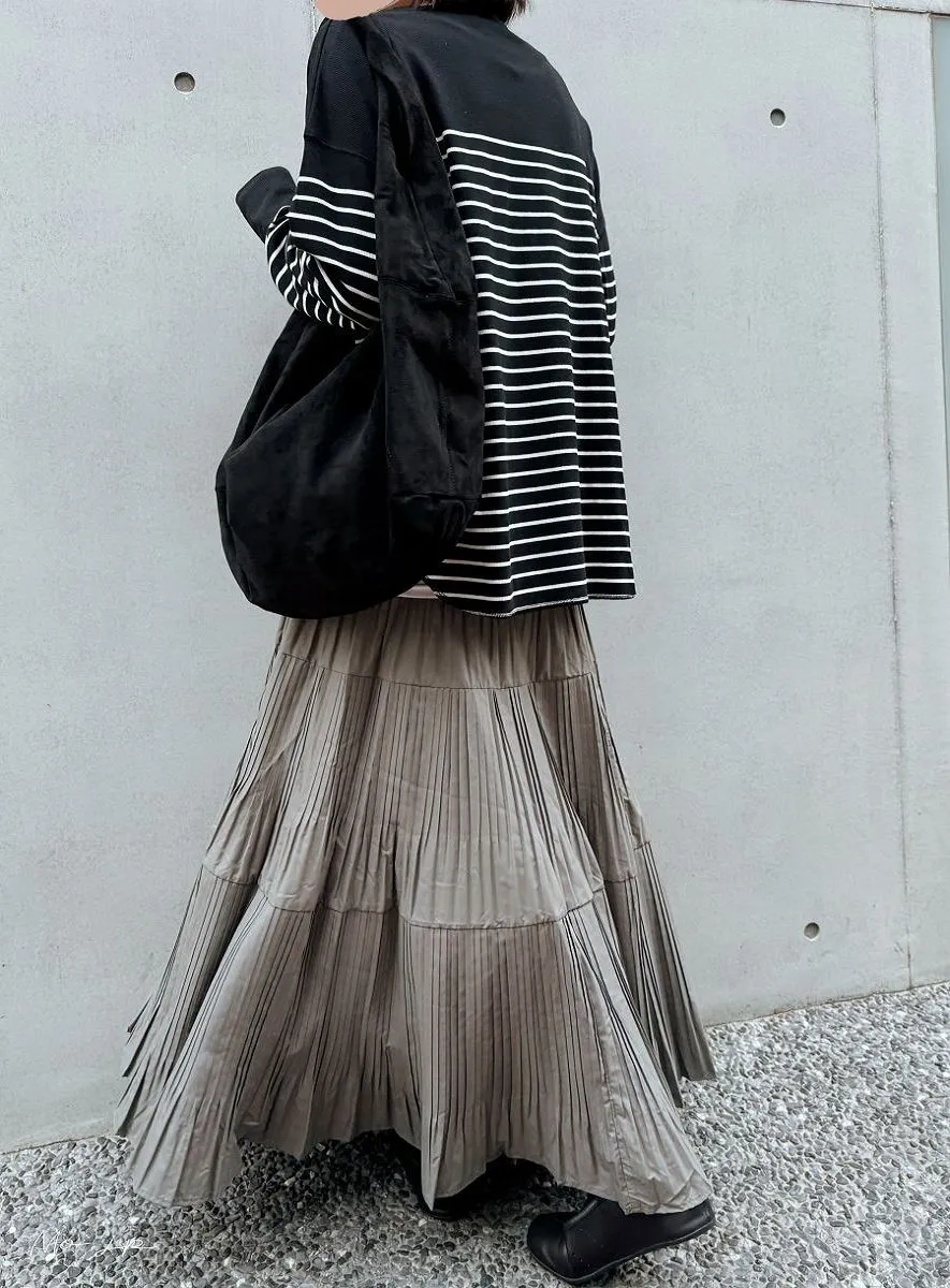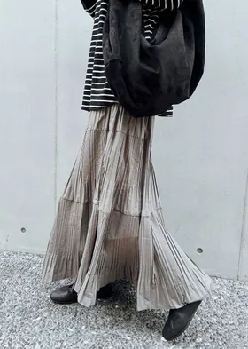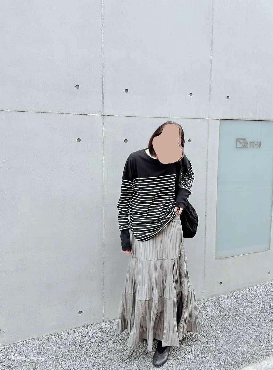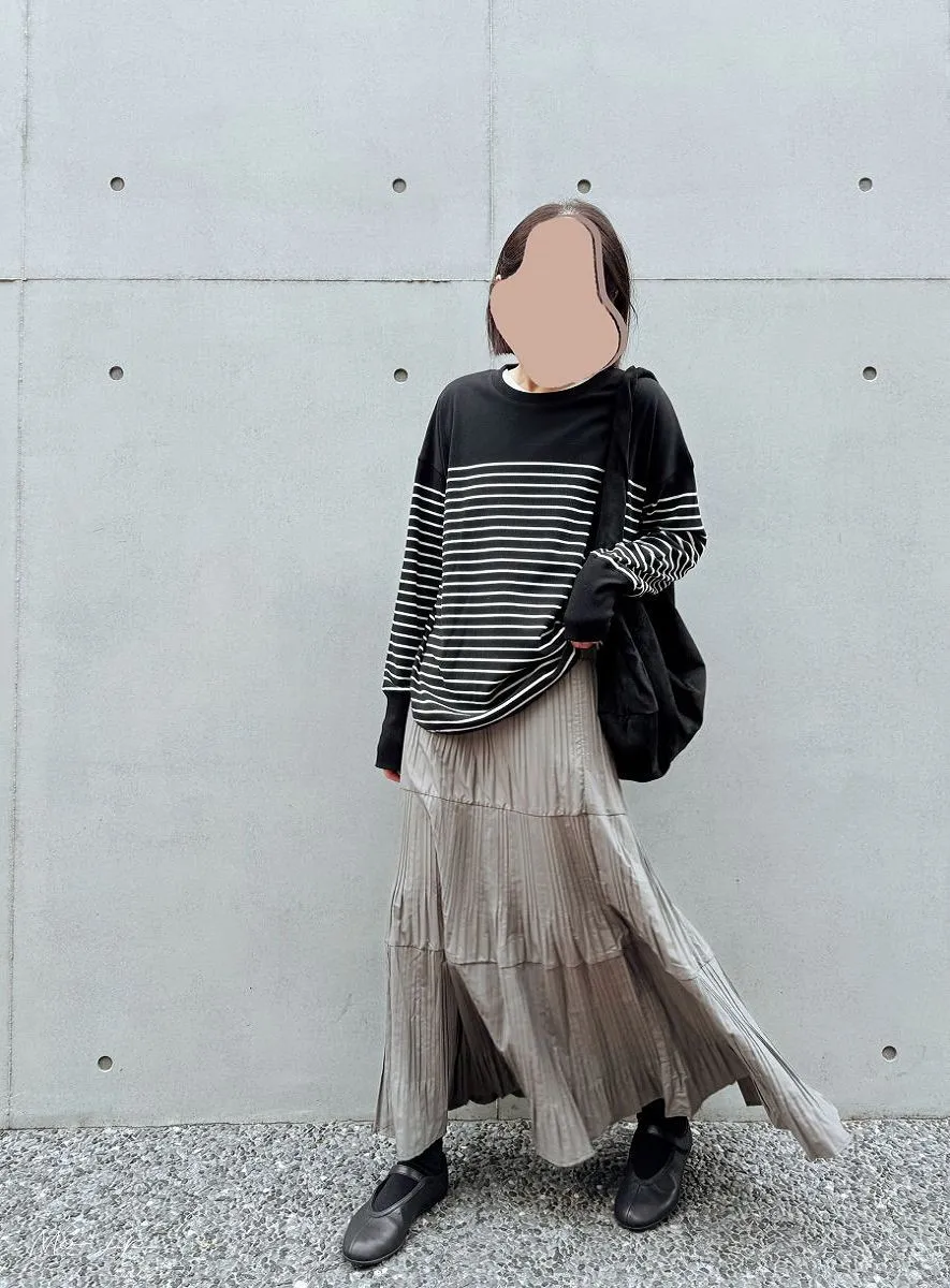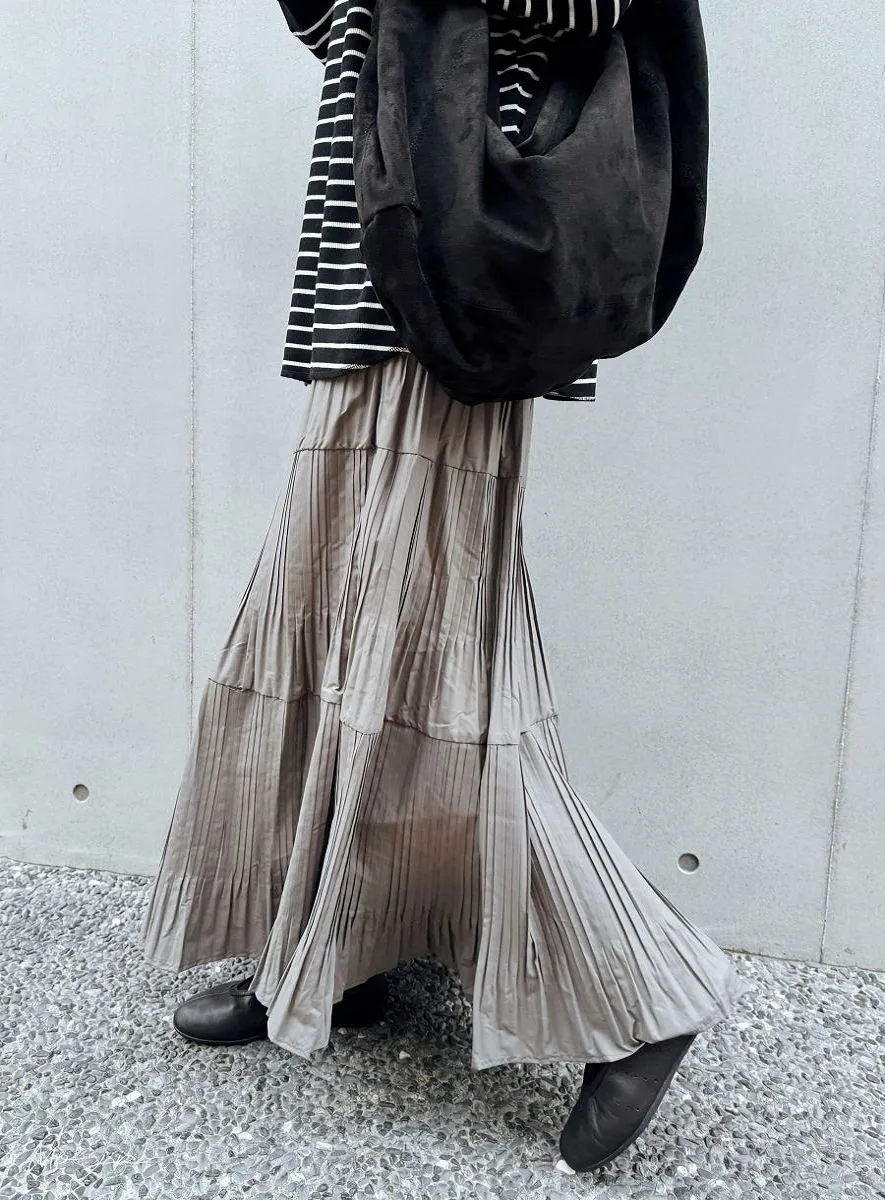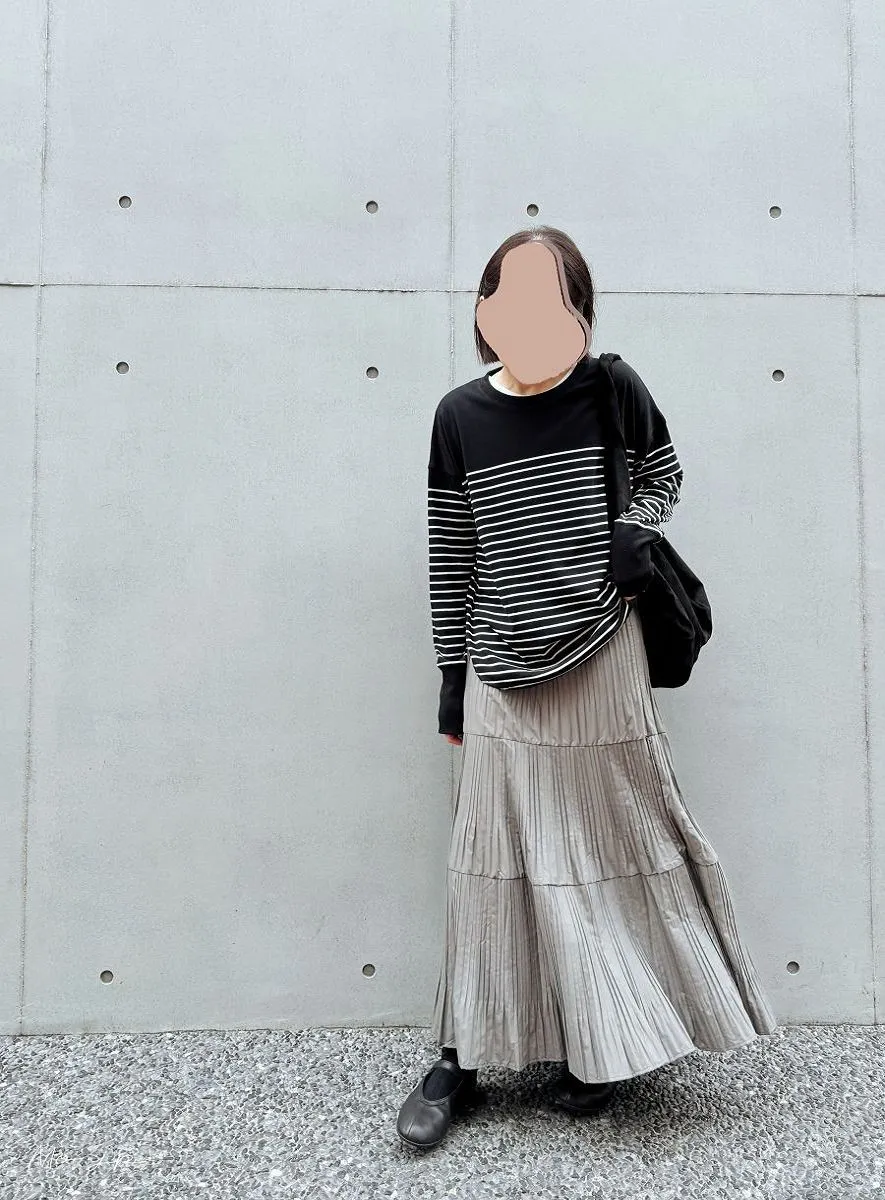 這款是品牌推出的壓紋百折款它的百褶是直接服貼在裙子上面的腰部鬆緊~好穿裙襬的弧度也很順身自然顏色是低調的灰軍綠喔~秋天非常適合面料不會過厚重4季都可以穿搭的面料有內裡可以單穿.無口袋小幫<164CM>穿搭心得嬌小女孩推薦這款喔小幫自己穿搭的時候覺得還可以在長一點點搭配時穿在比較低腰的位置喔舒服順身