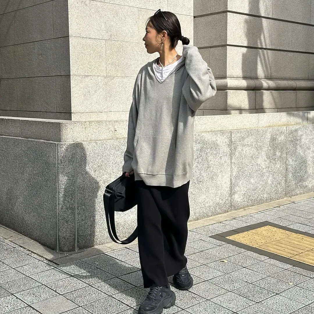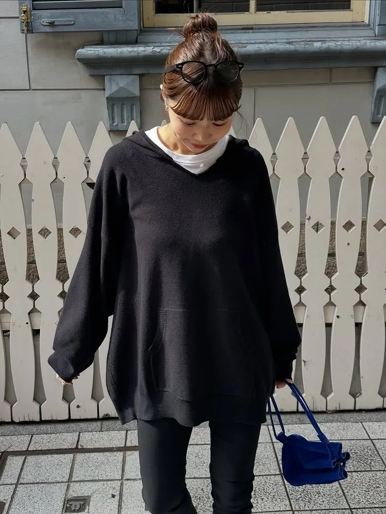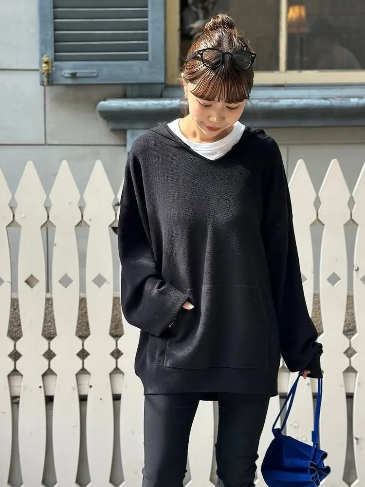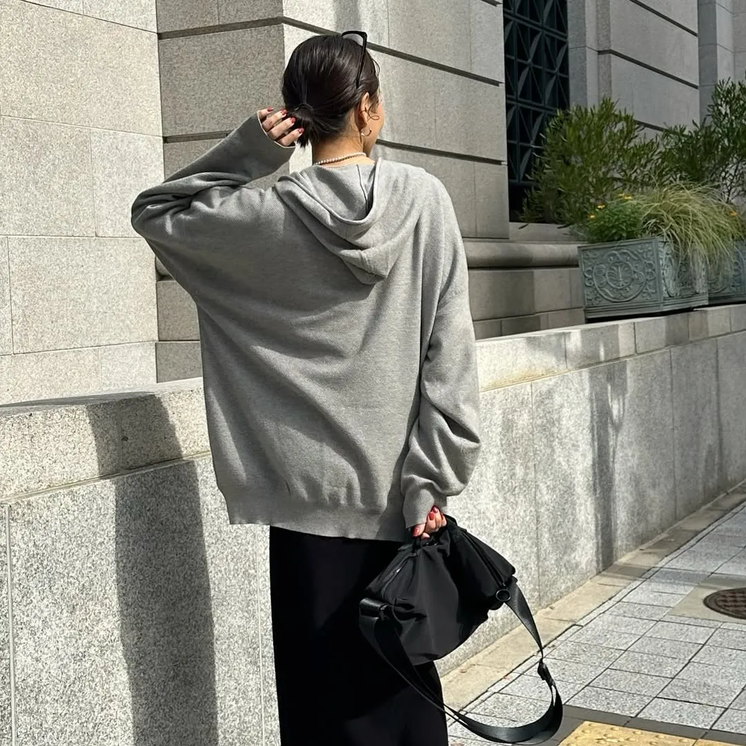 這款針織連帽衫舒適休閒,提升了整體造型的魅力。