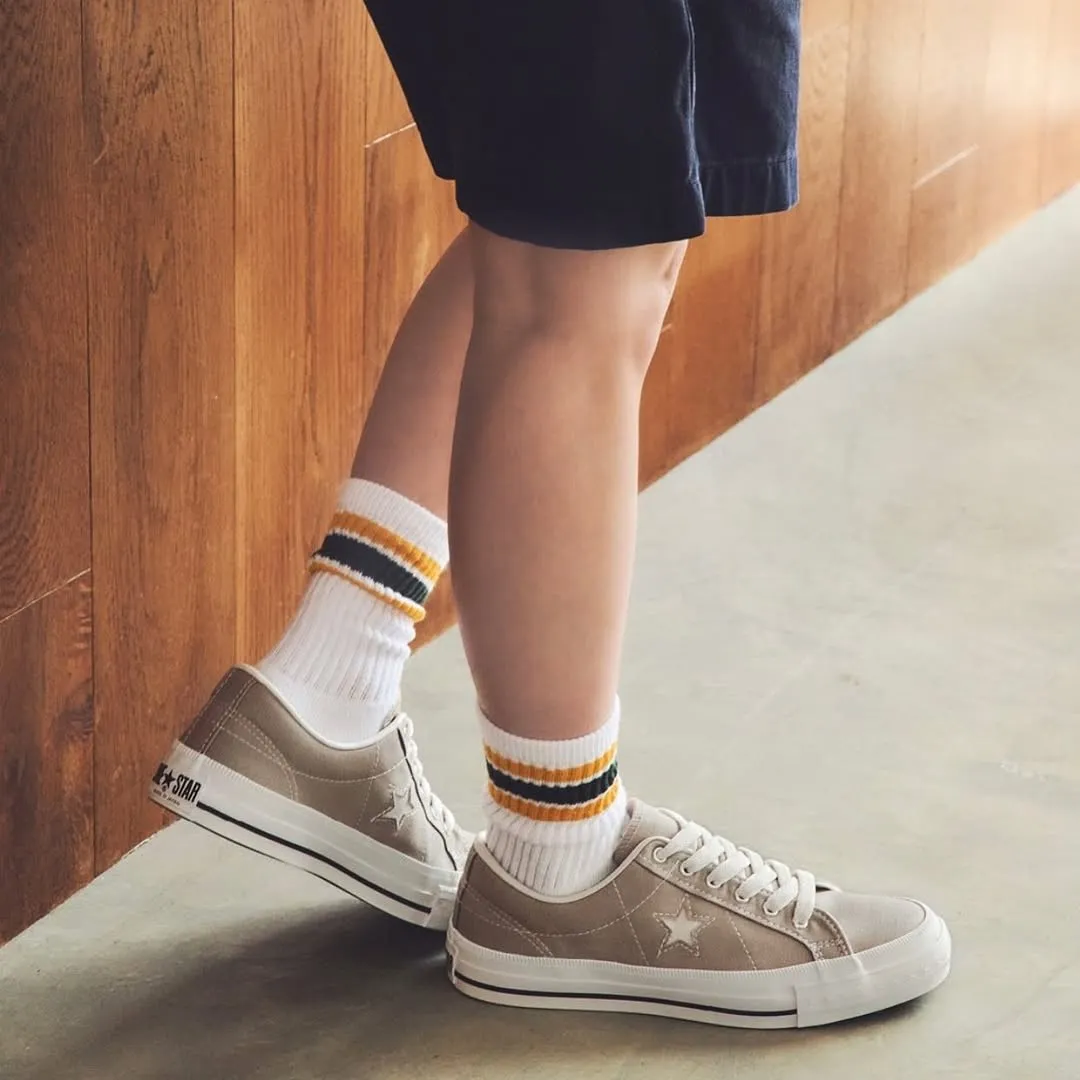 帶有“ONE STAR”符號的大厚鞋跟標籤,與鞋面顏色相同的孔眼作為,忠實地再現細節。